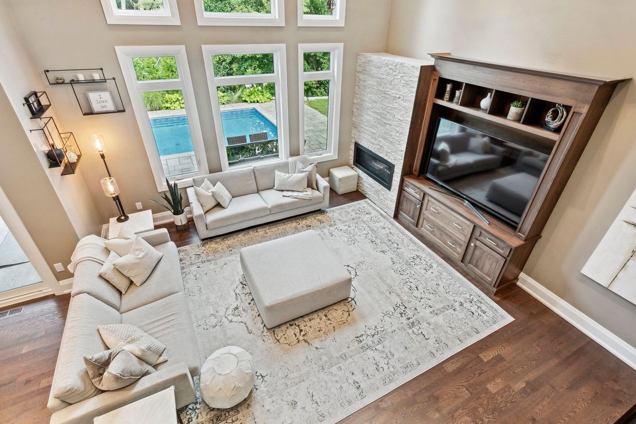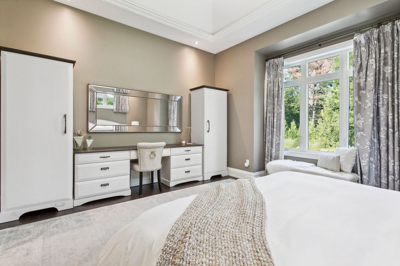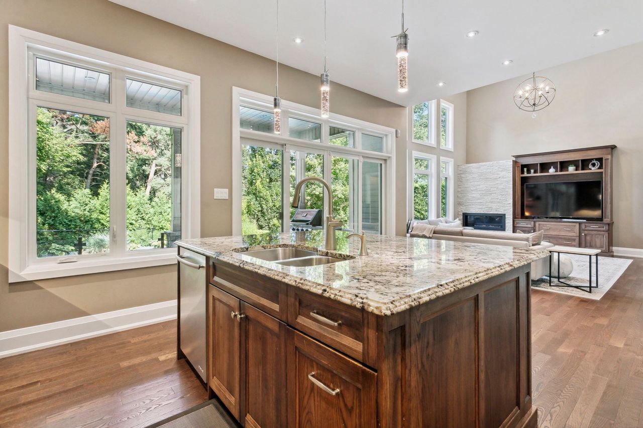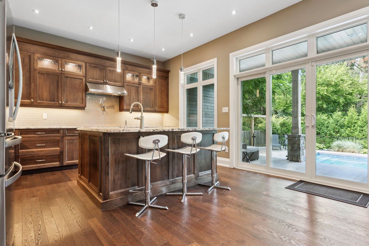 Welcome to Aldershot Village. An exclusive pocket of the beautiful Burlington waterfront. This spectacular scenic oasis is full of tree lined streets, trails, water and gorgeous custom homes. This customer designed and exclusively built home boasts over 4000 square feet of functional living space and includes a main floor primary bedroom, cathedral ceilings, a second floor loft iving room, a main floor office, beautiful mud room, a Master Chef's kitchen and a private backyard. The covered porch and salt water pool provide the perfect backyard summer setting. This home features many upgrades including a newly renovated basement with surround sound speakers throughout, a custom gym, a premium bar for entertainment, and an additional bedroom perfect as an in-law suite and so much more. One of the bedroom in the basement is converted into exercise room.Custom design entertainment centre