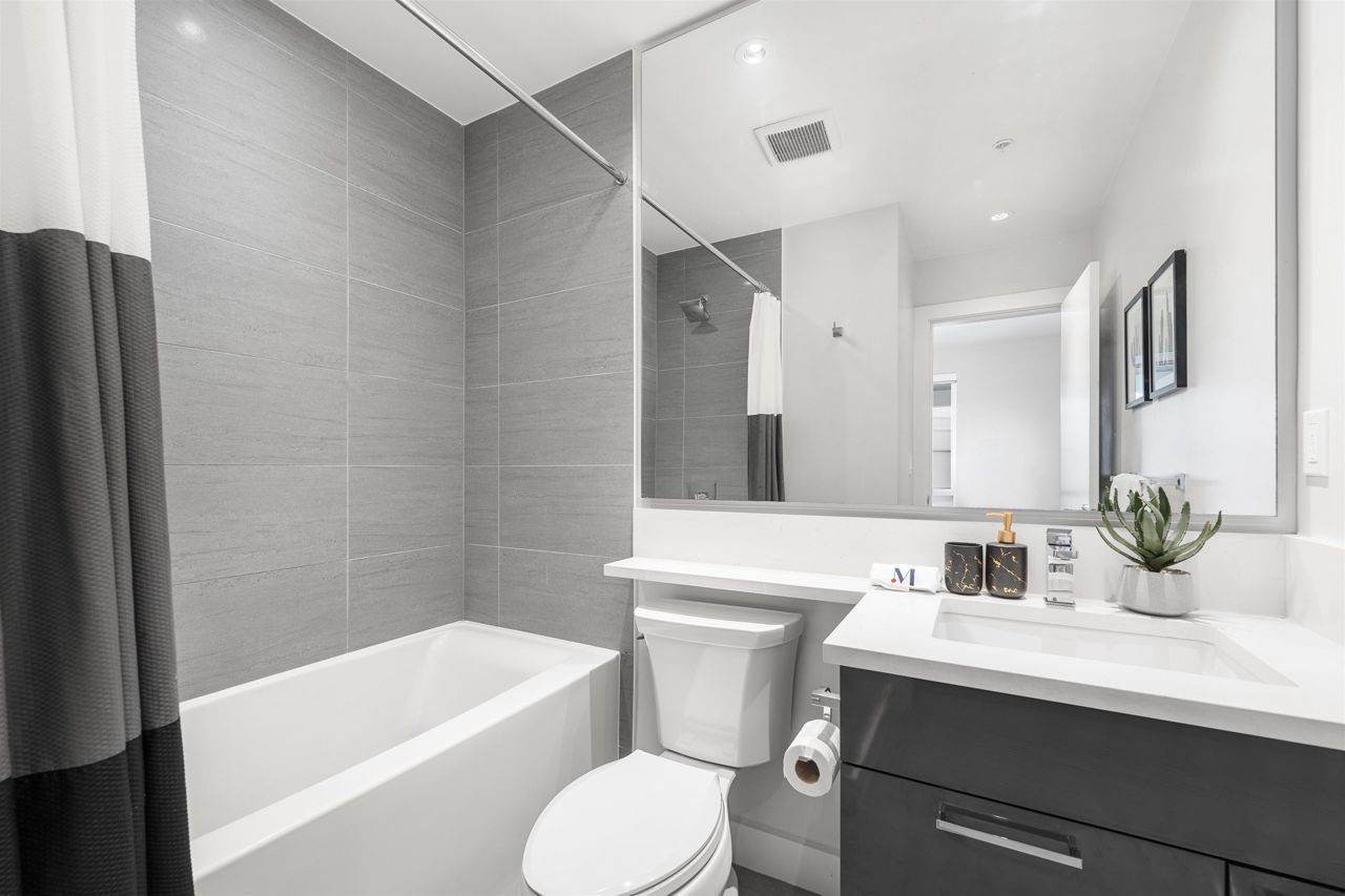 Welcome to your dream home in the heart of Brentwood! This luxurious top-floor 2 bed, 2 bath condo boasts an impressive ceiling height ranging from 9 to 12 feet, providing a spacious and airy ambiance that's unparalleled. Enjoy the pinnacle of comfort and elegance with an array of incredible amenities, including a swimming pool, hot tub, gym, theatre, and party room, ensuring every day feels like a resort-style experience. Home comes with S/S Kitchen-Aid appliance package, Maytag W/D, caesarstone countertops and bedroom easily fits a KING SIZE bed. Comes with 1 parking stall and 1 storage locker. Pet friendly and rentals allowed. Walking distance to Gilmore skytrain station, groceries, restaurants, Willingdon heights park and Amazing Brentwood mall!
