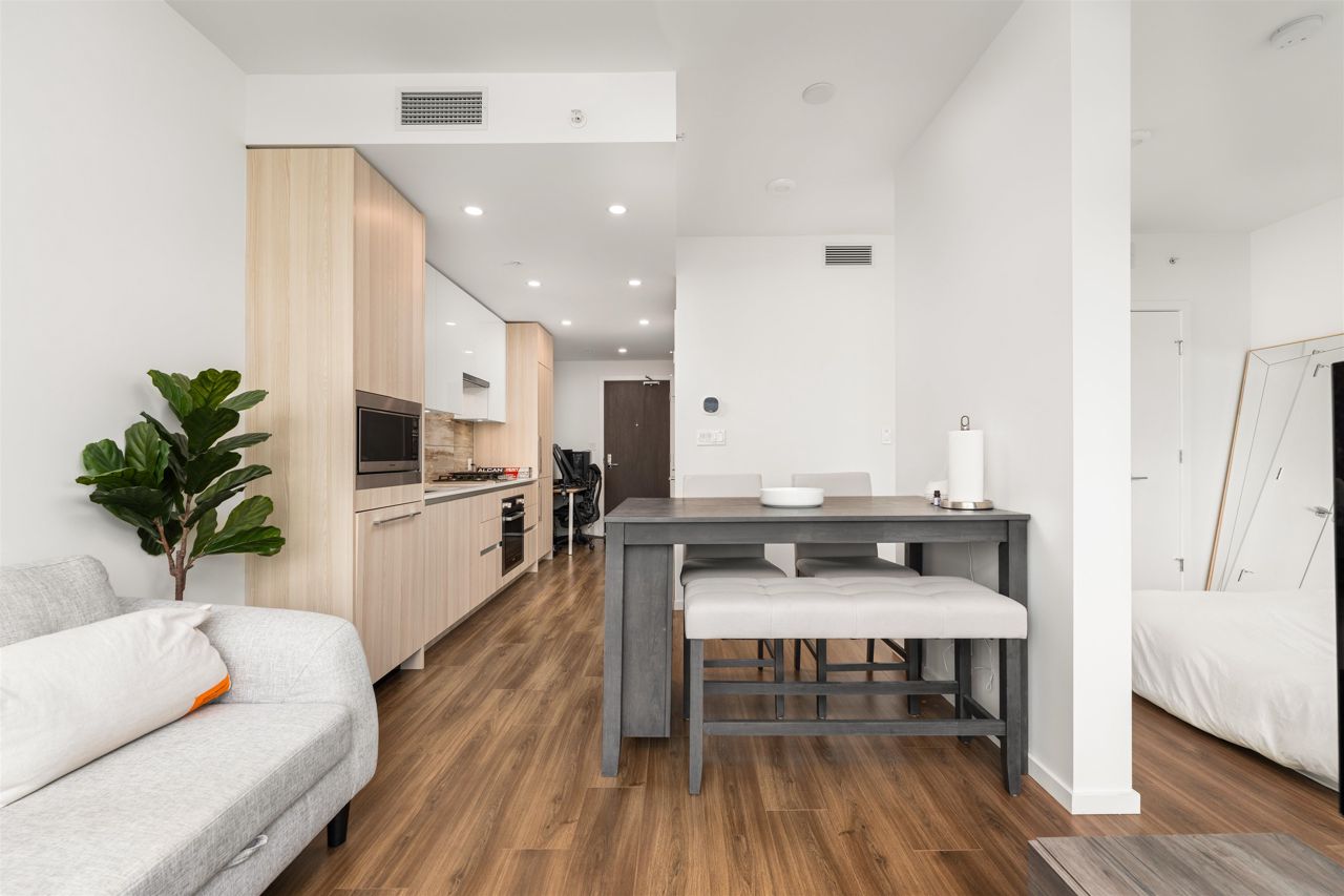 Welcome to Triomphe Residences in lively Brentwood neighbourhood! Indulge in modern elegance with this 1 bed, 1 bath w/ 9 ft ceiling, air-conditioning, high up on the 38th floor with panoramic mountain views. Experience contemporary living with sleek design, Bosch appliances, spa-like bathroom, and a wide open floor plan. 13,000+ sq foot amenities include a fully equipped gym, music room, party room, sauna, swimming pool, hot tub, and many more! Full time concierge services, and also guest suite available. Bonus! Comes with dedicated EV Charging stall in P1 and 2 Storage lockers. Walking distance to Amazing Brentwood mall, Solo District and shops, Groceries, and Gilmore Station. Don't miss this incredible opportunity!