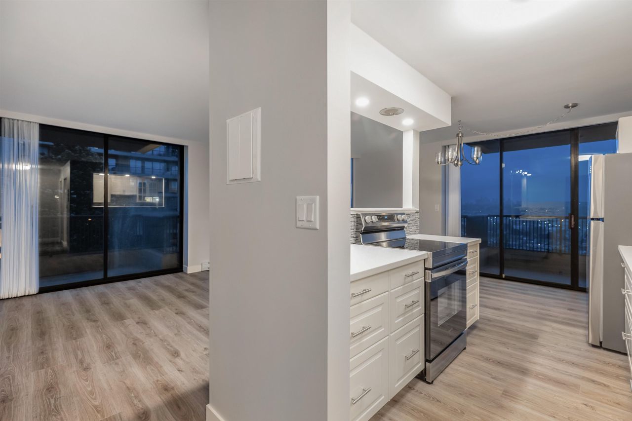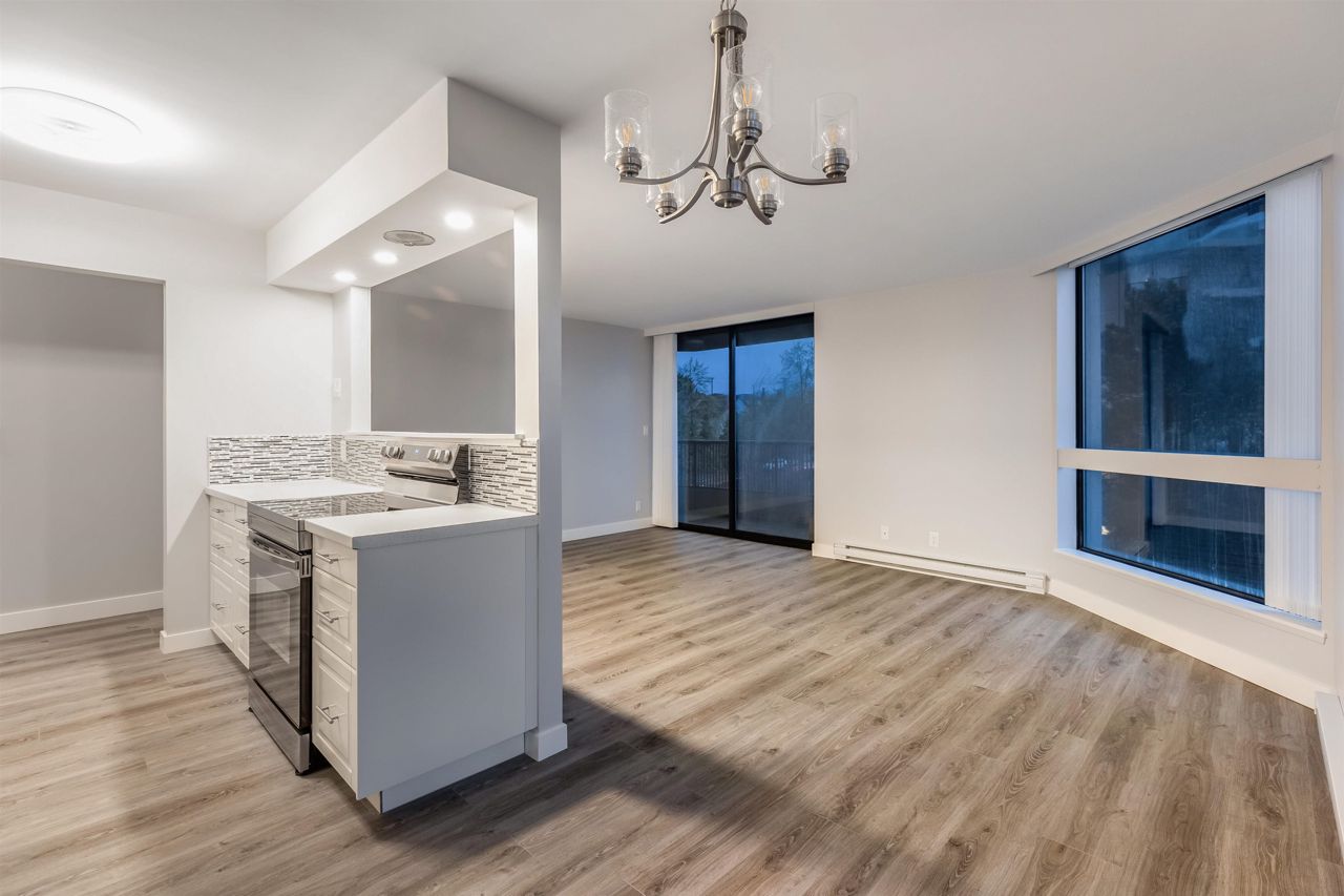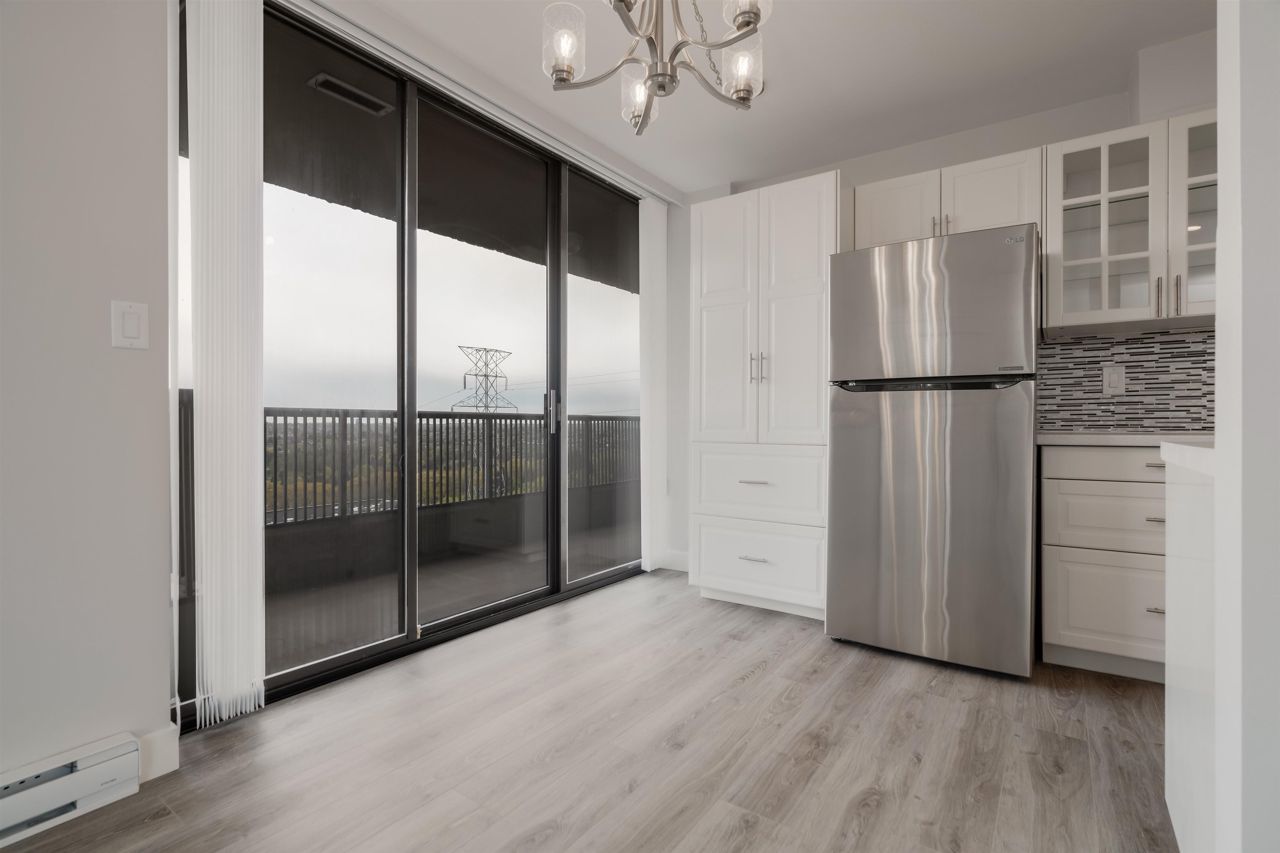 Welcome to this renovated 2-bedroom, 1-bathroom home boasting 2 over-sized balconies and serene, unobstructed views of Downtown and Metrotown. Included are updated LG fridge, Samsung stove, and dishwasher, as well as a renovated bathroom with new floors and fixtures. Situated in Boundary View, a well-kept and desirable building in Burnaby Heights, steps away from shops, restaurants, and cafes such as Safeway, Anton’s Pasta Bar, and Cup and Bun Café. Close proximity to transit options such as the Gilmore SkyTrain Station and major bus routes adds to the convenience. This home also includes 1 parking space and 1 storage locker.