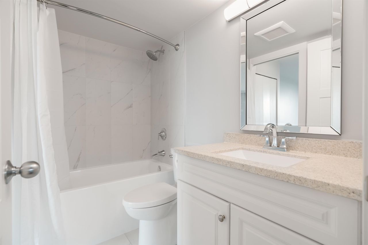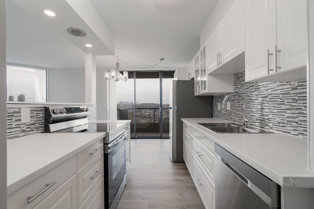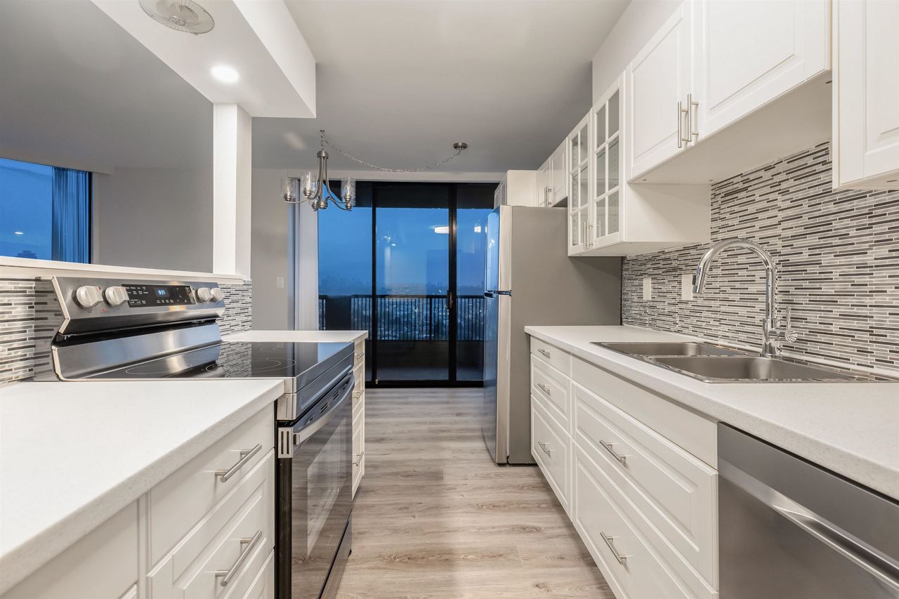 Welcome to this renovated 2-bedroom, 1-bathroom home boasting 2 over-sized balconies and serene, unobstructed views of Downtown and Metrotown. Included are updated LG fridge, Samsung stove, and dishwasher, as well as a renovated bathroom with new floors and fixtures. Situated in Boundary View, a well-kept and desirable building in Burnaby Heights, steps away from shops, restaurants, and cafes such as Safeway, Anton’s Pasta Bar, and Cup and Bun Café. Close proximity to transit options such as the Gilmore SkyTrain Station and major bus routes adds to the convenience. This home also includes 1 parking space and 1 storage locker.