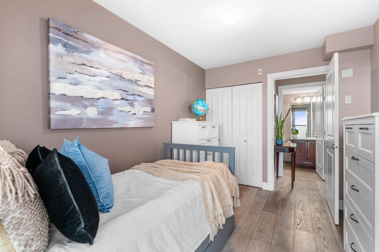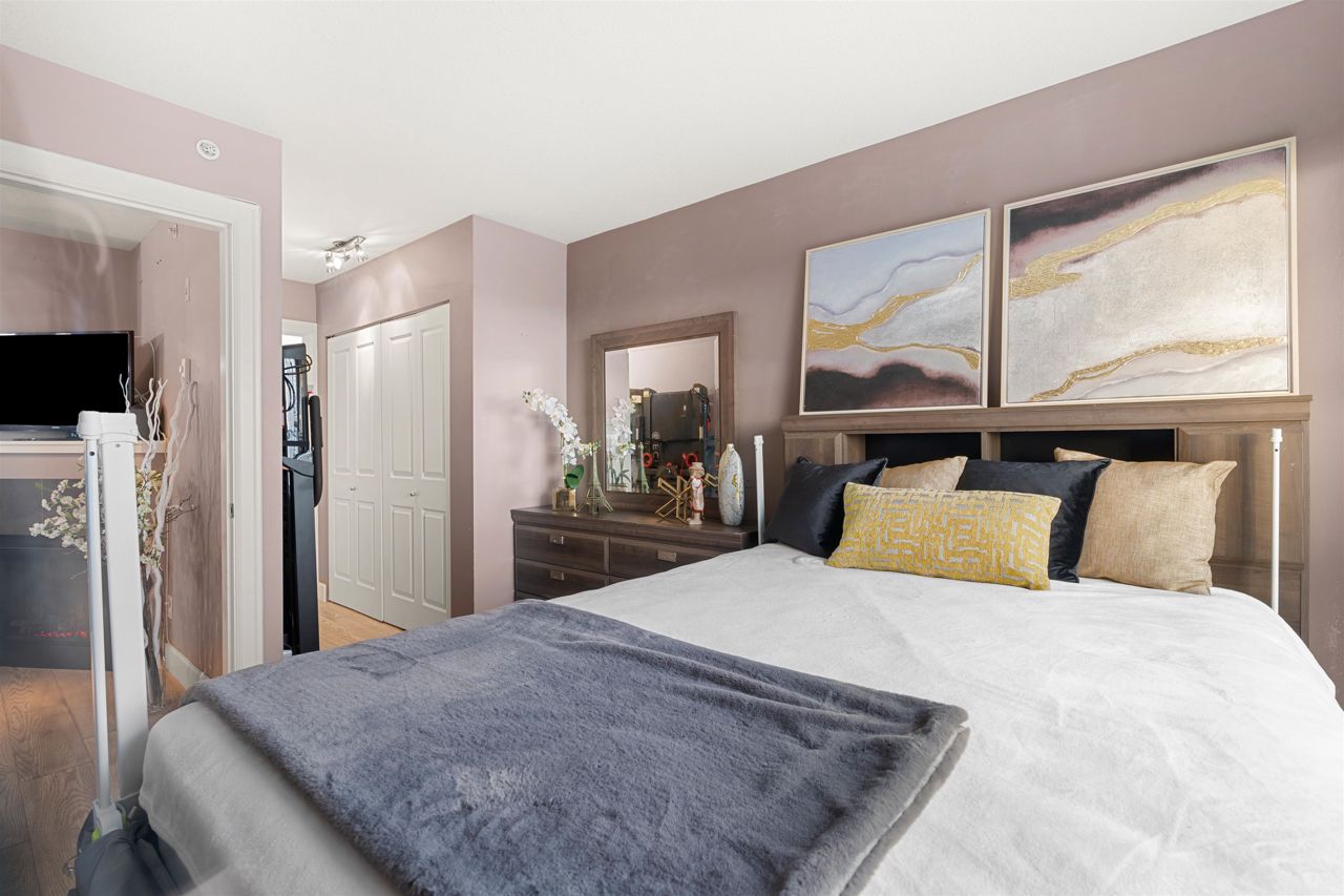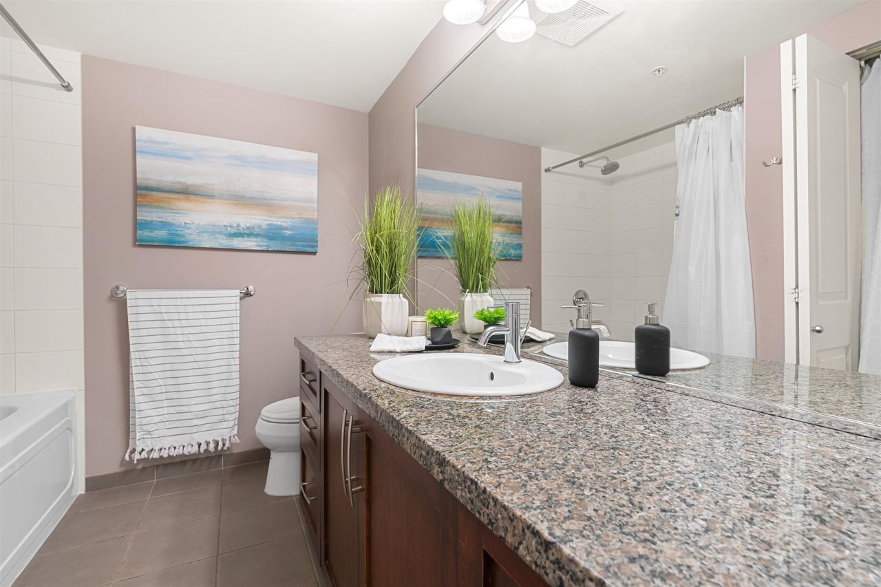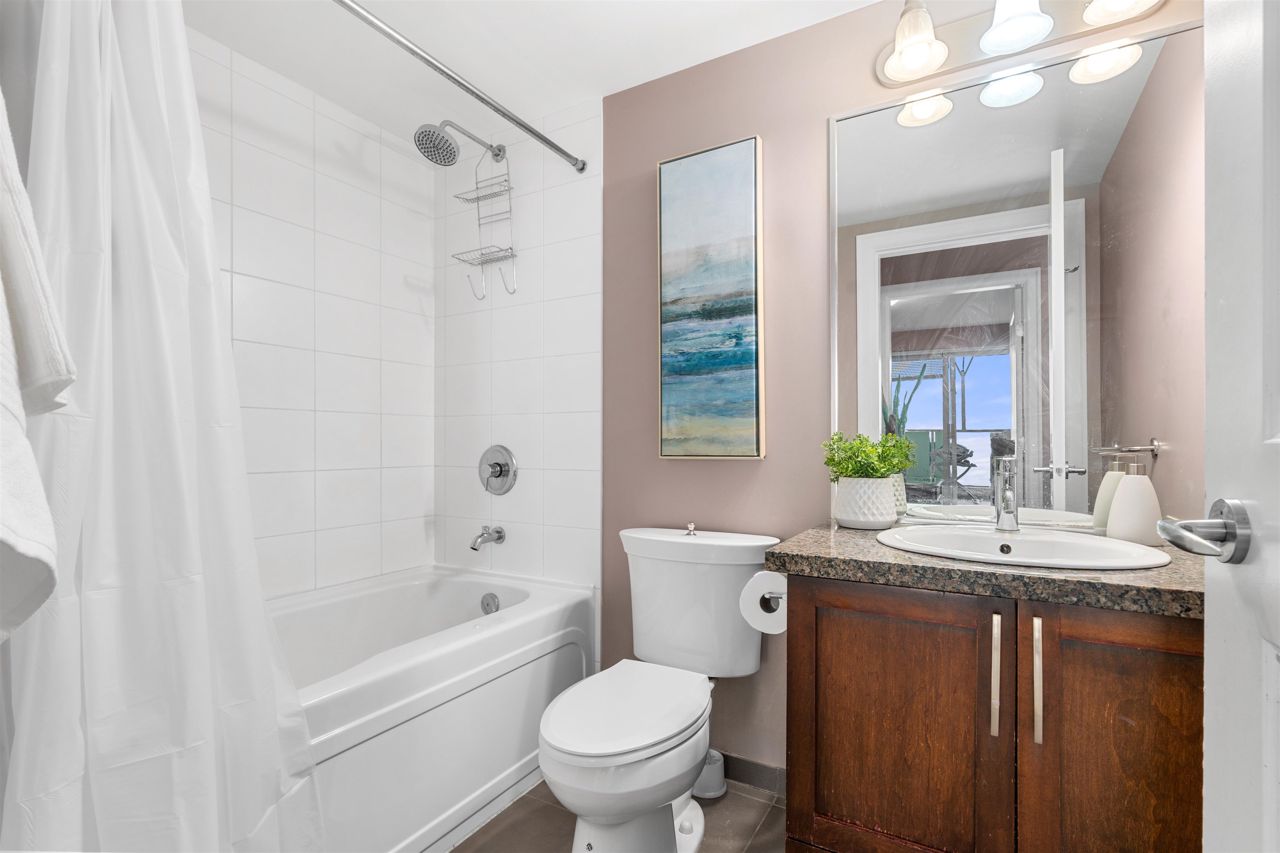 Location, location! Corner unit, 2 bed/2 full baths & den in the highly sought out CONCRETE BOUTIQUE MIDRISE-Mondeo! This SPACIOUS corner suite boasts a ton of natural light & very functional layout. The home features rich wood cabinetry, engineered hardwood floors, granite countertops, gas stove range & a LARGE KITCHEN w/plenty of cupboard space. Enjoy morning coffees or evening BBQ on the 95 sq ft patio deck. Convenient central location, close to Brentwood & Metrotown Mall, 15 mins to Downtown, walking distance to local restaurants, delis, cafes, parks & transit. 1 parking & 1 storage locker included. MUST SEE VIRTUAL TOUR!