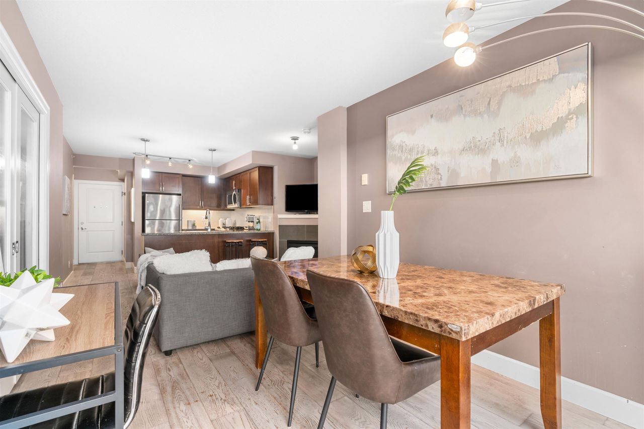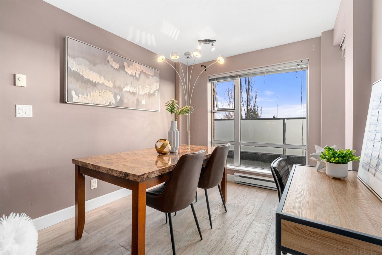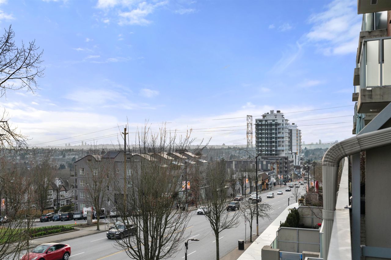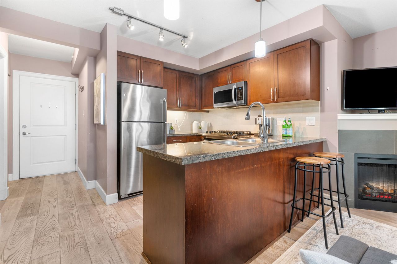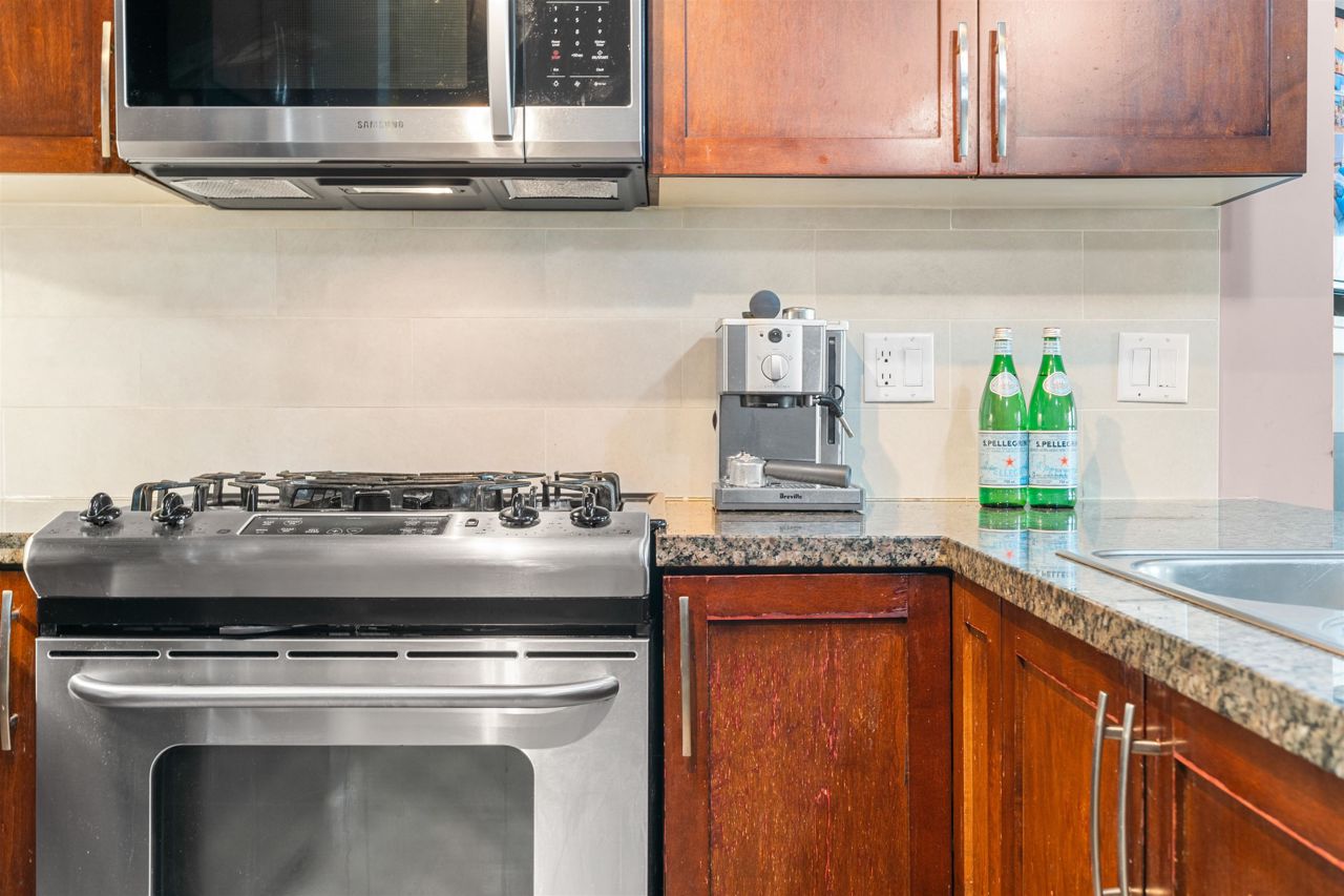 Location, location! Corner unit, 2 bed/2 full baths & den in the highly sought out CONCRETE BOUTIQUE MIDRISE-Mondeo! This SPACIOUS corner suite boasts a ton of natural light & very functional layout. The home features rich wood cabinetry, engineered hardwood floors, granite countertops, gas stove range & a LARGE KITCHEN w/plenty of cupboard space. Enjoy morning coffees or evening BBQ on the 95 sq ft patio deck. Convenient central location, close to Brentwood & Metrotown Mall, 15 mins to Downtown, walking distance to local restaurants, delis, cafes, parks & transit. 1 parking & 1 storage locker included. MUST SEE VIRTUAL TOUR!