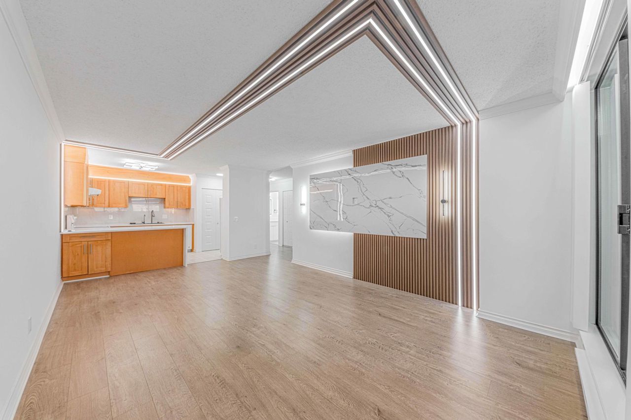 Completely and professionally renovated in 2023, this spacious and pristine 789 sq ft 1-bedroom unit plus 67Sf balcony at Discovery Place II offers a large and clean living space and captivating Western views. Features include a generous walk-in closet and convenient in-suite washer/dryer. The unit is cat-friendly (up to 2 cats) with no dogs allowed, and it includes EV charging stations for added convenience. Structural improvements to the property include pre-2015 repairs to the roof, plumbing, boilers, and fire panel. Additional enhancements comprise hallway upgrades in 2015, balcony restoration in 2016, and the installation of three new high-speed elevators in the same year. four Min walking Access to the Skytrain and Lougheed Mall is facilitated by a tunnel under Lougheed A/O S/R Feb27