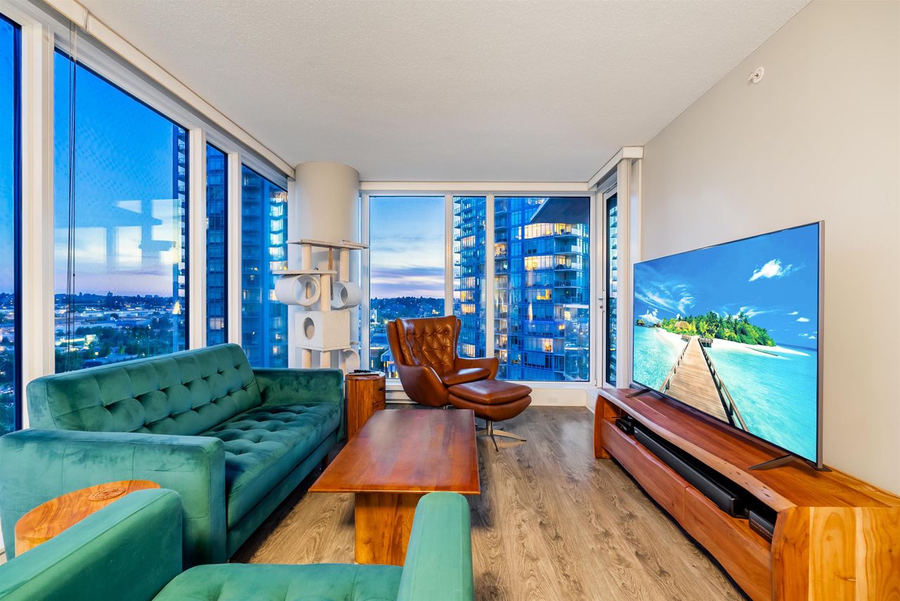 Welcome to AVIARA, just steps to Brentwood Mall with the convenience of shopping, restaurants, and transit.( Gilmore and Brentwood Skytrain Station ).A MUST SEE...Bright South West Corner 2 BED & DEN (3rd Bedroom) unit with upgraded AIR CONDITIONING from developer, wonderful floor plan with an open concept living space offering PANORAMIC floor to ceiling glass, full size stainless steel appliances, en-suite with walk-in closet, and large private covered balcony. Amenities include fully-equipped gym. Lounge with pool table and GUEST SUITE. Excellent strata management. 2 Parking Side by side, 1 storage locker plus bike room. PETS & RENTALS OK. Call listing Agent to view.