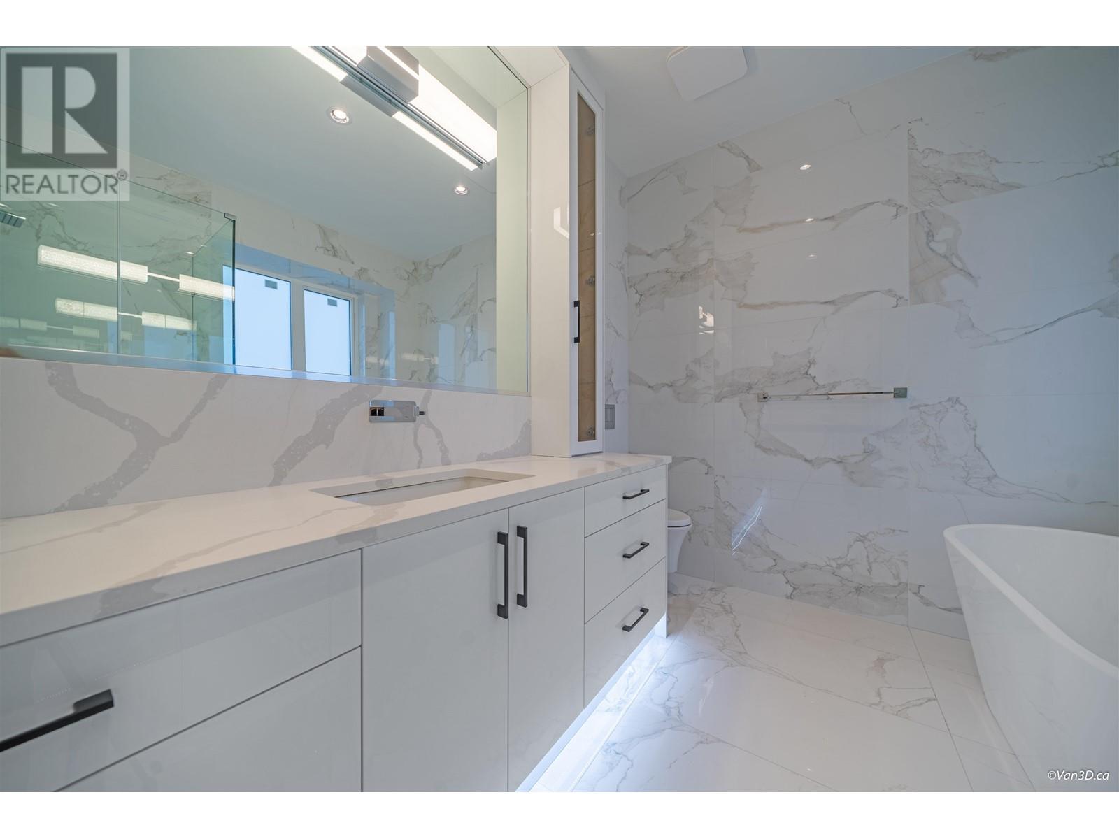 New Modern luxurious house. Open floorplan on main with 10 ft. ceiling. Features air conditioning, radiant heat, security camera, engineer hardwood flooring, open gourmet kitchen with high-end built-in Fisher & Paykel appliances, large waterfall island, extensive use of luxury quartz countertops and backsplash and covered sundeck. Good size office/bedroom and full bathroom on the main floor. Upstairs features 3 good size ensuite bedrooms, master bedroom with bathtub, plus separate shower. Two bedrooms legal suite in the basement with separate entrance. Has a recreation room and one bedroom downstairs. Central location! Close to Safeway, Brentwood Town Centre, Skytrain, Shops and restaurants. WELCOME OFFERS! (id:22211)