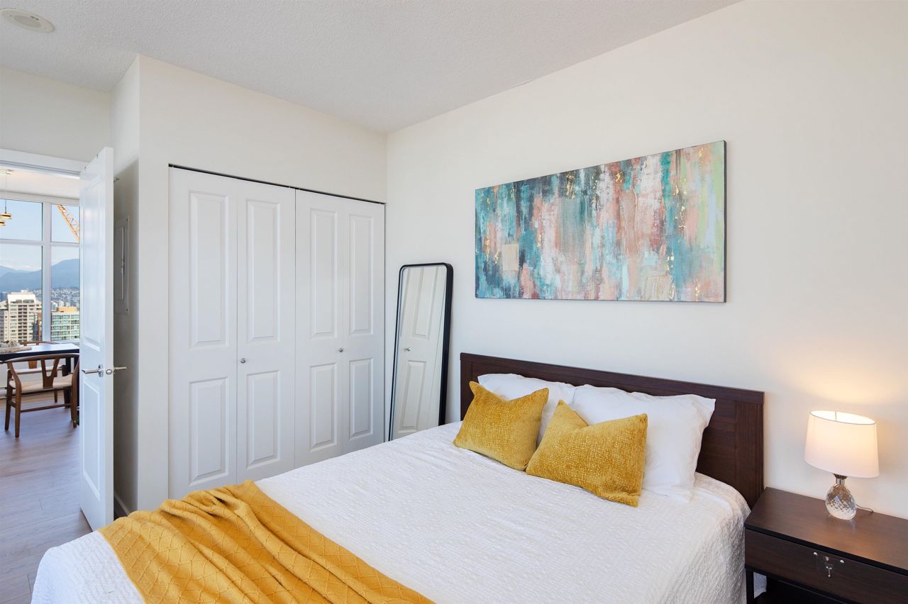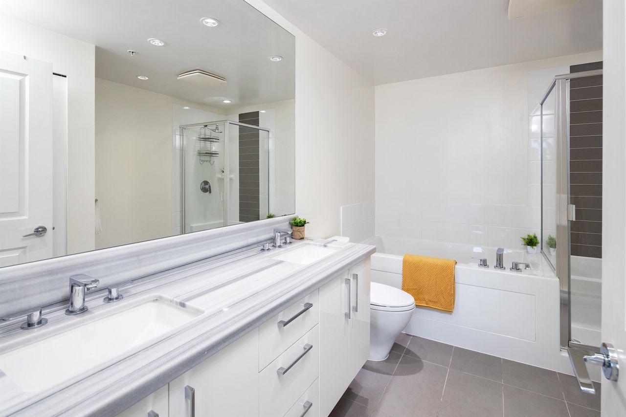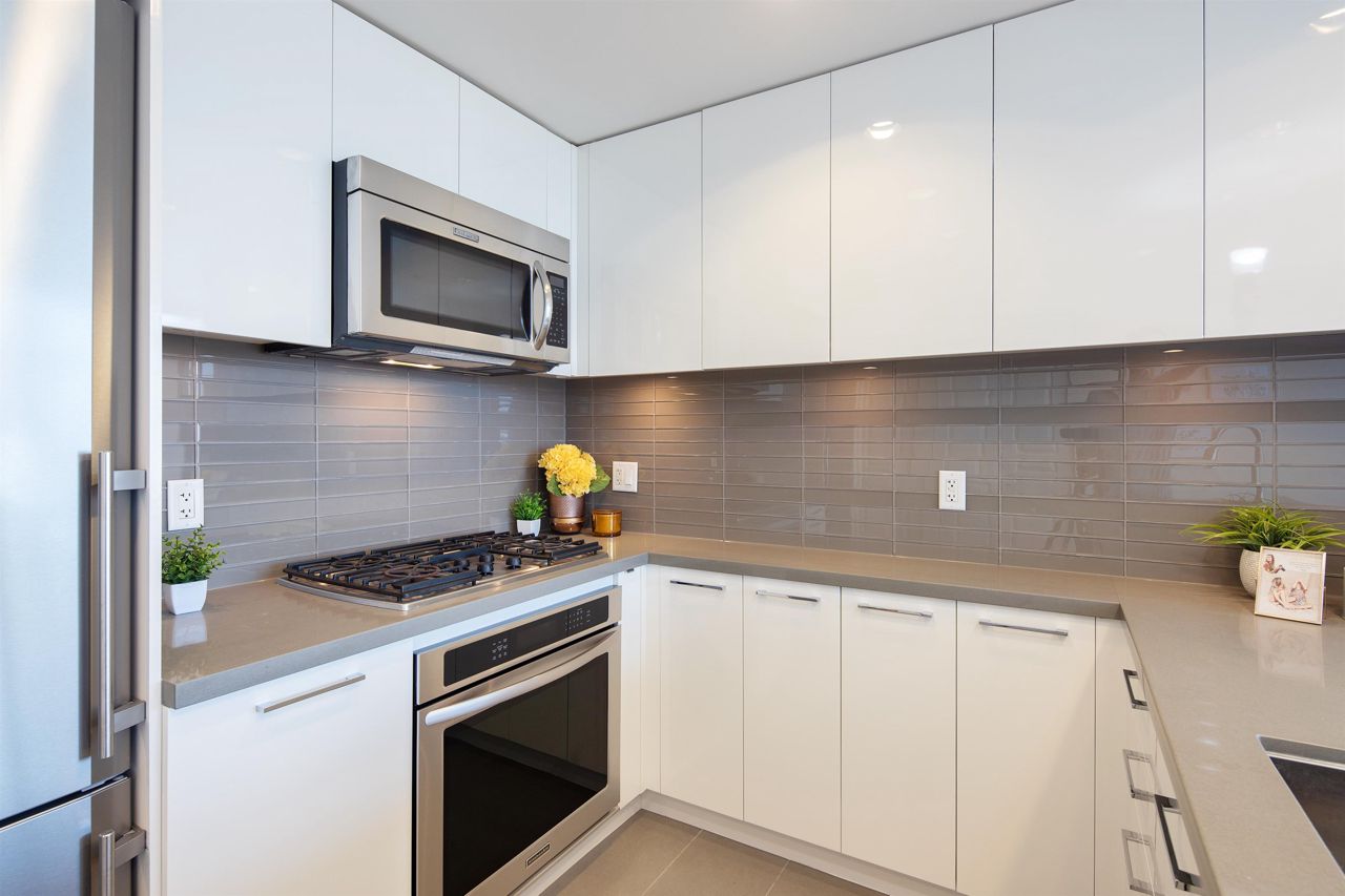 TWO PARKING! WOW!!!! Beautifully maintained bright and spacious two bedroom SKYHOME with panoramic mountain, water and southward views through the WALL TO WALL windows! Featuring the ultimate floorplan with ZERO WASTED SPACE and TWO parking! The large three sided kitchen has TONS of cabinetry and a GAS STOVE, and opens onto the open concept kitchen and living rooms, all with incredible views. The master bedroom is GORGEOUS with spectacular views and TWO closets including a walk in! The double vanity spa inspired ensuite has separate shower and tub. The second bedroom is on the OPPOSITE side, right beside the HUGE 120 square foot balcony. Premium hardwood laminate, sleek quartz counters and so much more. 2 parking and over 1,900 sq. ft. of private amenities exclusive to residents. Call now.