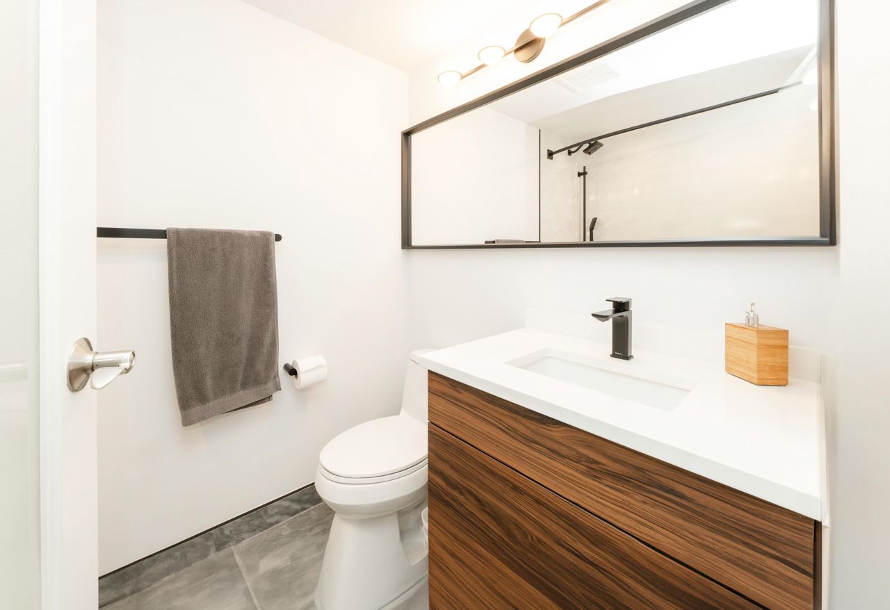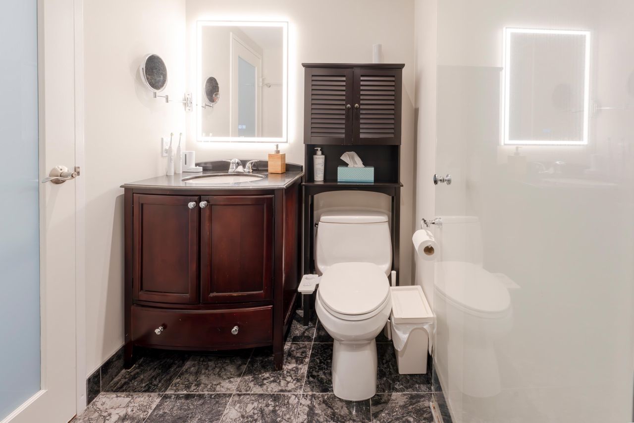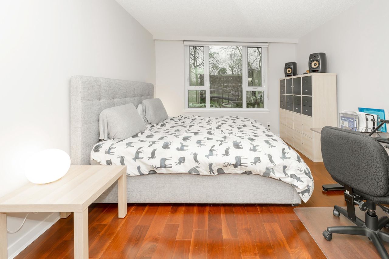 This move-in ready 2-bedroom, 2-bathroom corner unit is freshly painted and thoughtfully updated for modern living. Featuring engineered walnut floors, a gourmet kitchen with granite countertops, and stainless steel appliances, the open layout offers both style and comfort. The building features extensive upgrades, including a new envelope, windows, and sliding doors (2019), repiping (2011), updated elevators (2014), and more. Amenities include an indoor pool, exercise center, and in-suite laundry. Includes 1 parking stall and 1 storage locker.