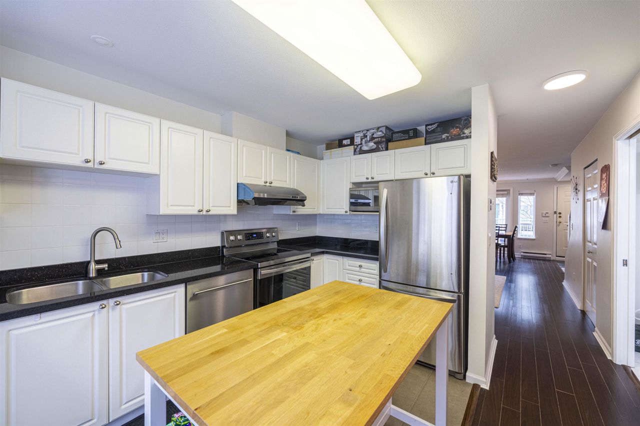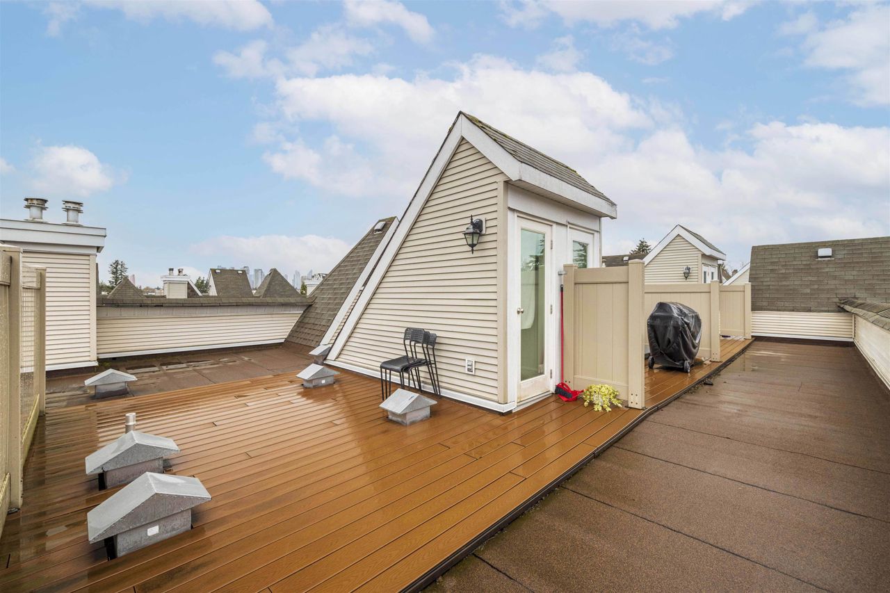This sweet and cozy unit in Tudor Grove built by award winning Adera, located in prime area of Burnaby South High Gate area. 2 bedroom and 2 bathrooms features with spacious living room to a walk out patio on the main floor, open concept kitchen with granite countertop, SS appliances; upper level features with versized master bedroom has double closets, window bench seating and a large ensuite bathroom. Plus a HUGE private roof deck with city view on the top. 2 underground parkings & 1 storage locker. Walkable to all transit, shopping, restaurants etc, This is perfect home to raise your family or being a smart investment, simply move-in ready condition. Easy to show with at least 24 hours notice pls.