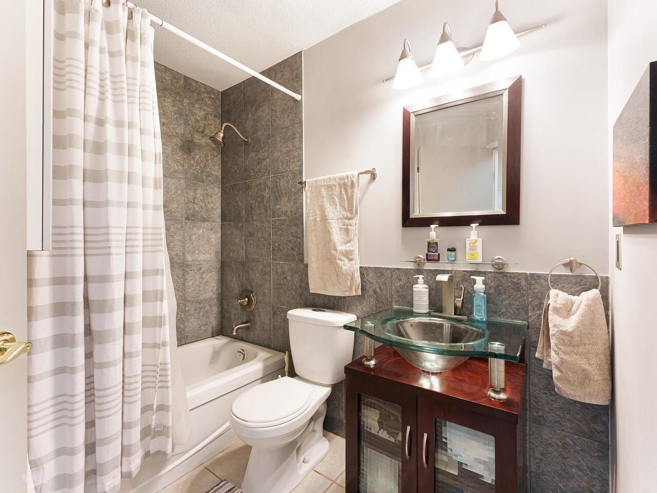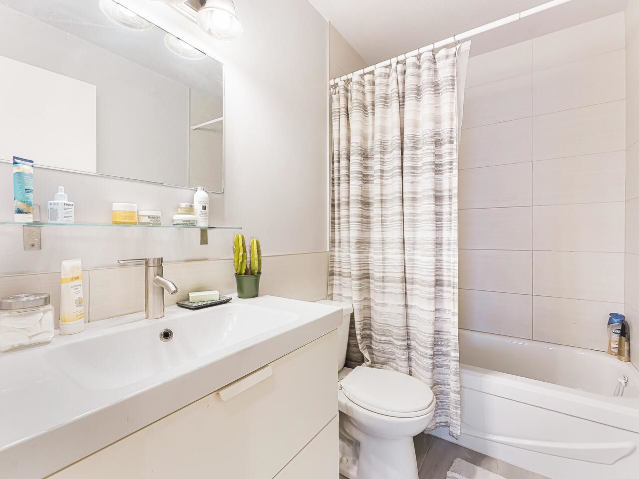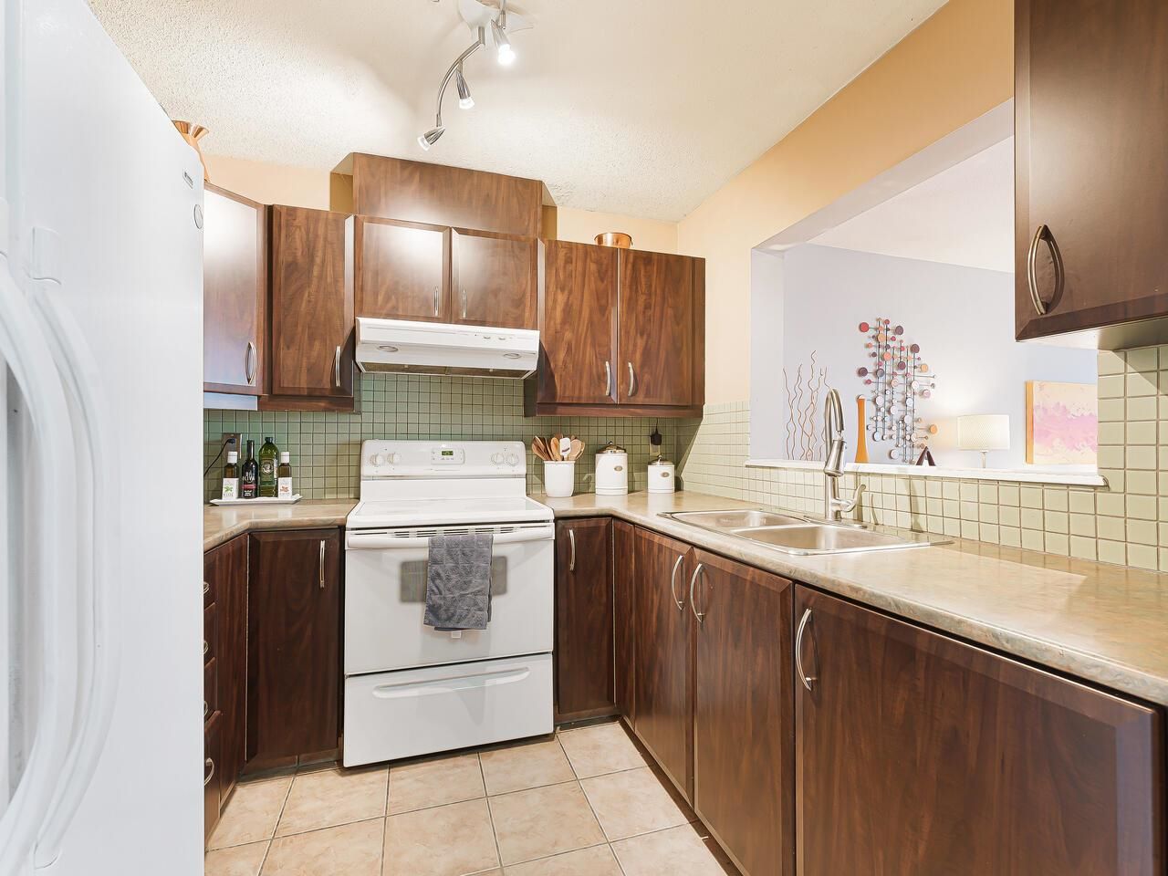A bright and tranquil home in quiet neighbourhood of Burnaby with mountain views. Presenting this spacious 2 bedroom & 2 bathroom corner unit with an ambundance of storage. Primary bedroom features renovated ensuite bathroom. The spacious dining and living area flow seamlessly and this home features renovated kitchen, laminate flooring throughout and gas fireplace. Long entranace hallway with plenty of storage, 1 parking spot & 1 storage unit included. Pets welcome and rentals allowed with restrictions. Please call for appointment.
