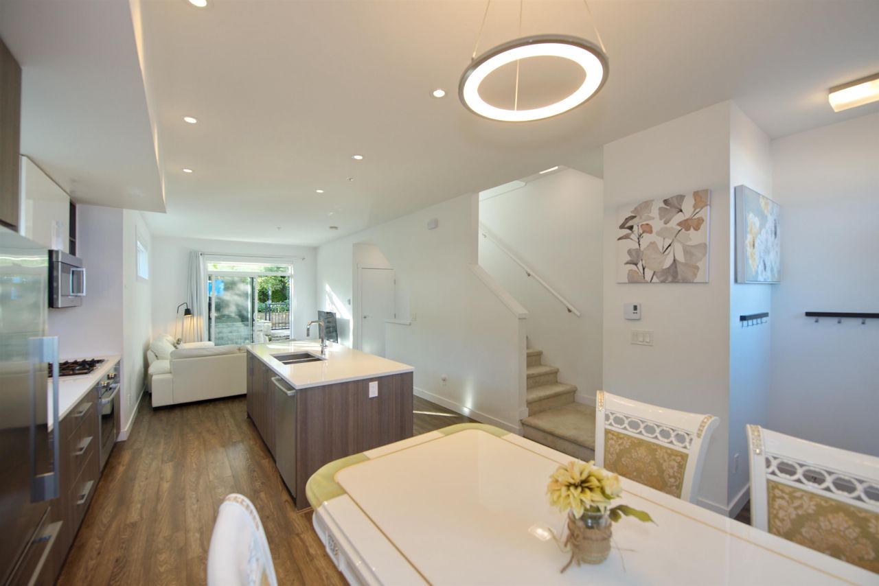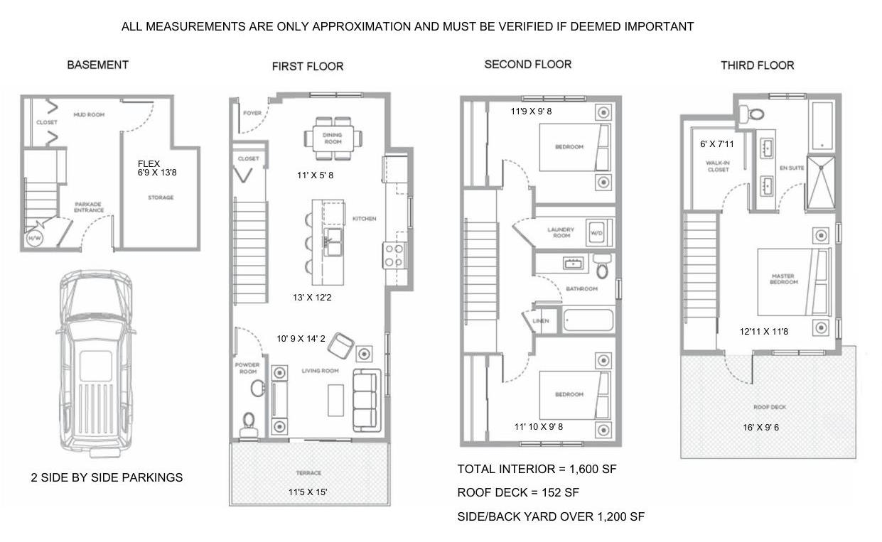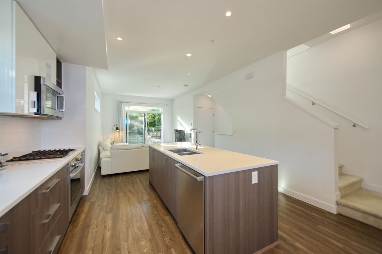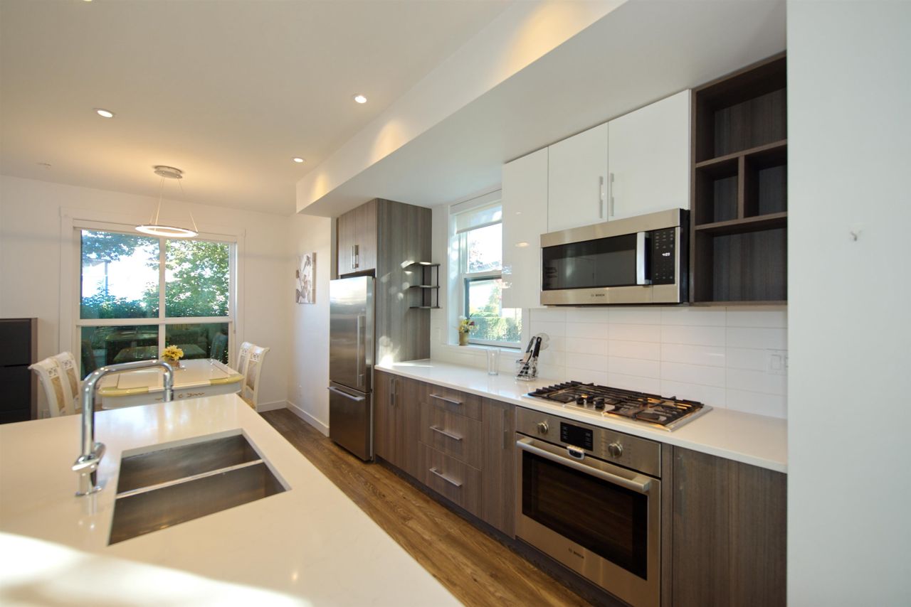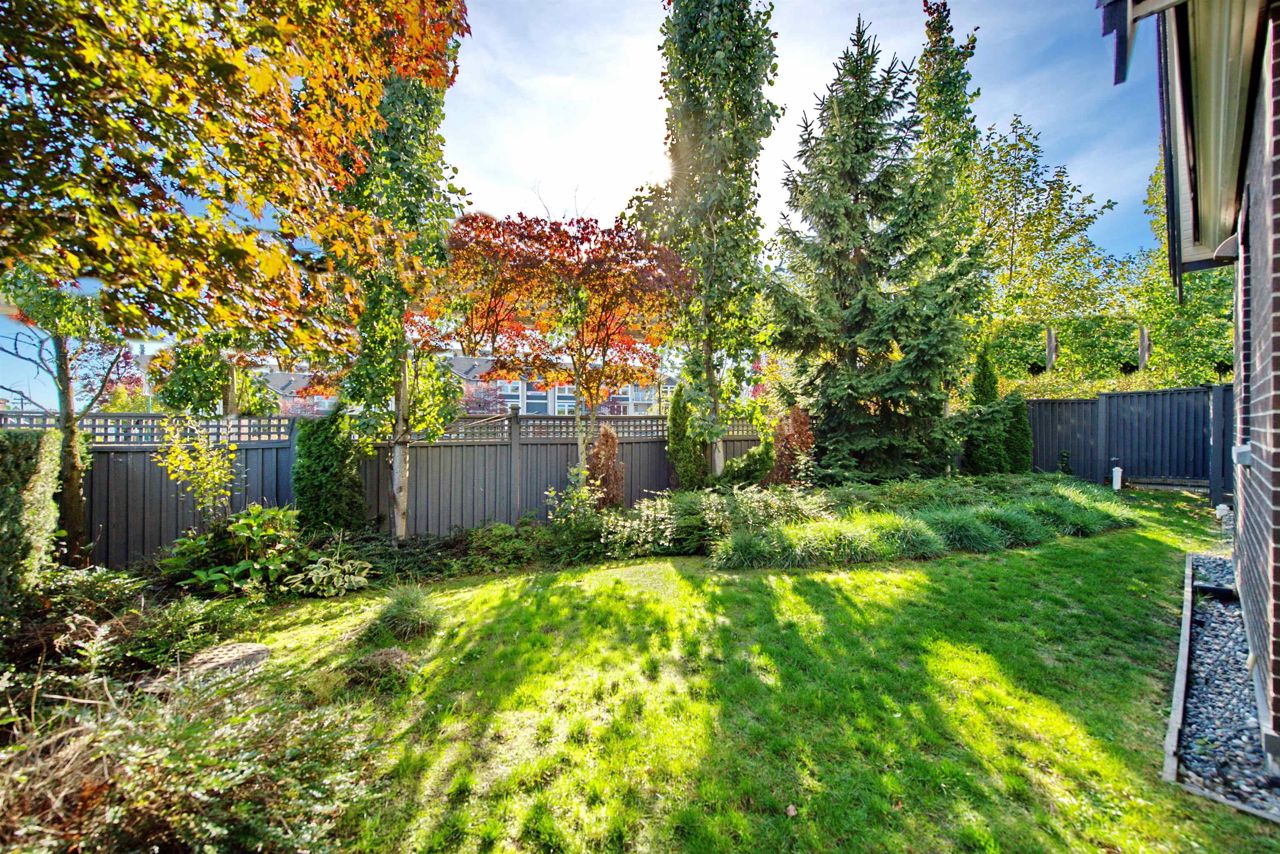S/E/W corner unit town-home with 3 bdrms + Den & 3 bthrms.Over 1600 SF living space. Open concept kitchen with Stainless steel appls, incl. Fisher & Paykel Fridge, Bosch Gas cooktop, walloven & dishwasher. Quartz counter-tops! Beautiful laminate flooring thru out & high ceilings, wrap around side/back yard with over 1,200 sf !! Practice your Frisbee skill in your own PRIVATE 45' long fully fenced side yard or just LAY UNDER THE SUN & enjoy summer BBQ. Huge master bdrm w/walk in shower+bathtub, + an amazing walk out private rooftop deck.. Large storage in bsmt with BIG office /den (can be another bedroom). MOVE IN condition. Only 7 min walk to Royal Oak skytrain, few min. drive to Metrotown mall. 2 parking in front of basement entrance.