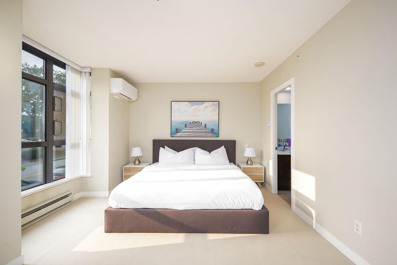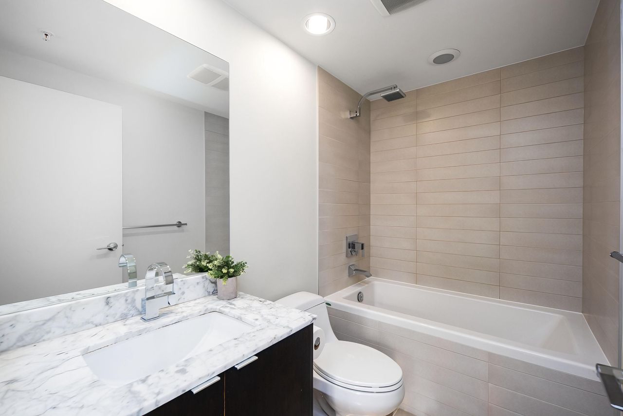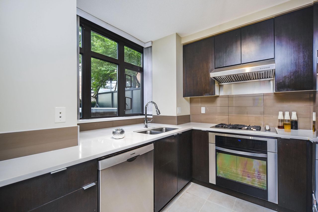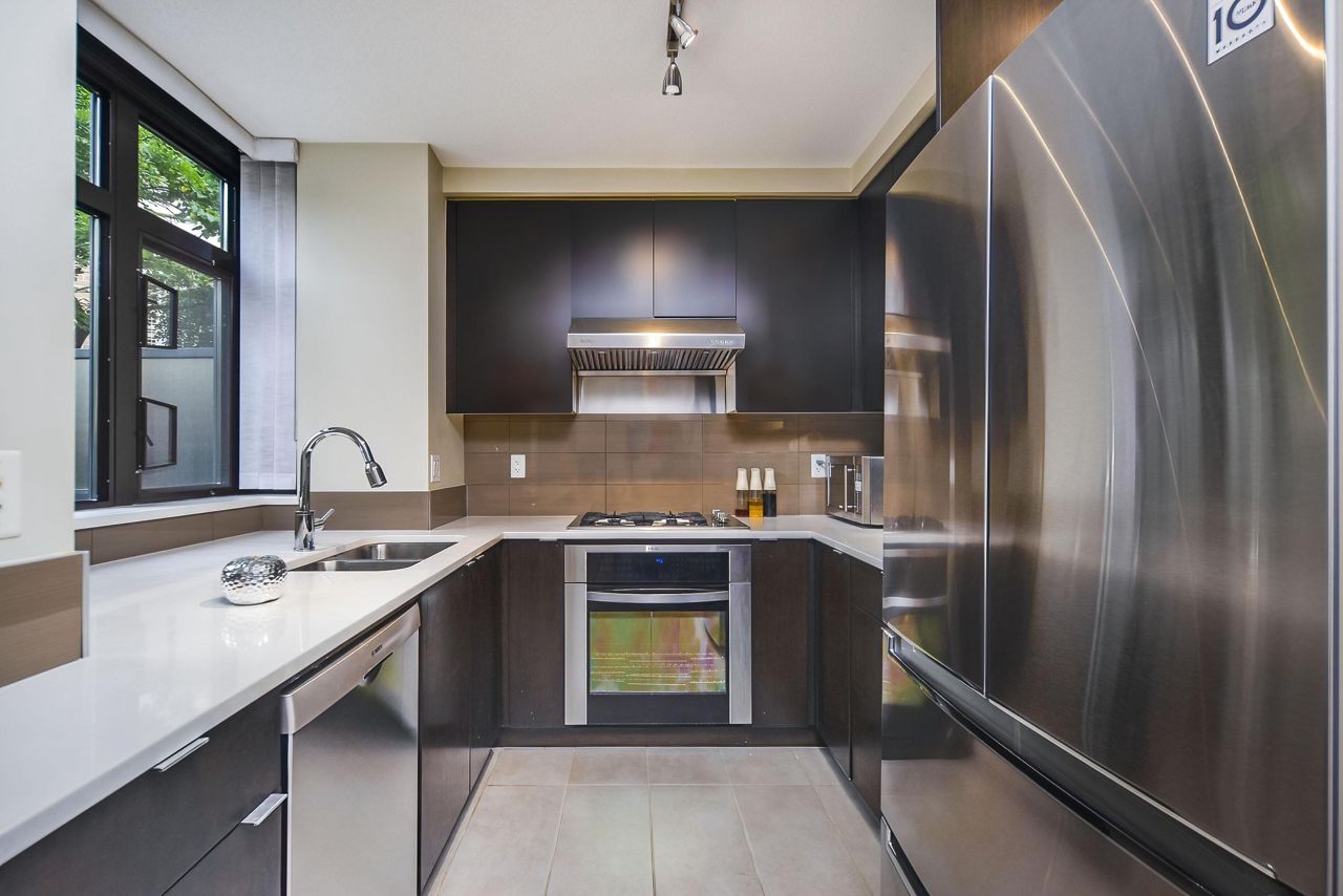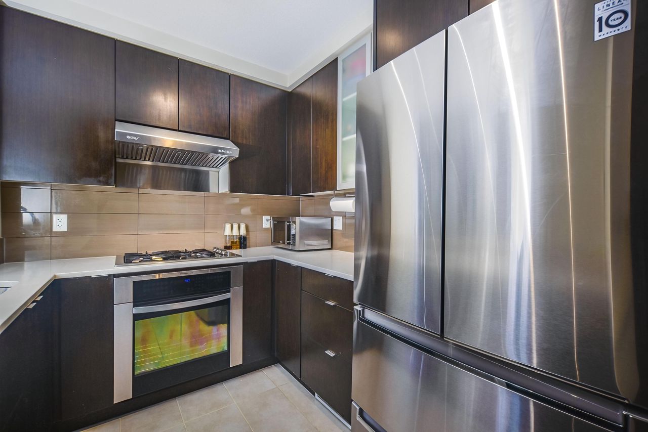 Esprite 2 by Bosa in Highgate! Rarely 1821sqft, 4 bedrooms+3.5 bathrooms huge size concrete townhouse. Spacious main has formal living, dining, family room access to gorgeous front and back yard. Gourmet kitchen shines with granite countertops, gas stove, and ss appliances. Outdoor space is haven of relaxation, features a landscaped backyard garden, concrete patio adorned with gas fireplace, creating entertainment setting. Upstairs, a grand master bedroom has fireplace, balcony, 2 closets with ensuite bathroom. Additional two bedrooms and a full bath on same level. Below has a spacious bedroom, full bath, access to garage with storage. 2 parkings with private entrance.