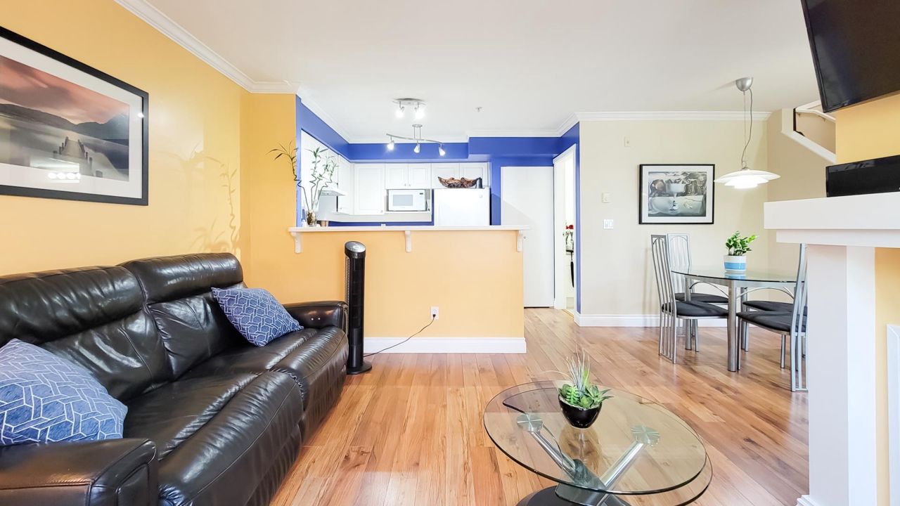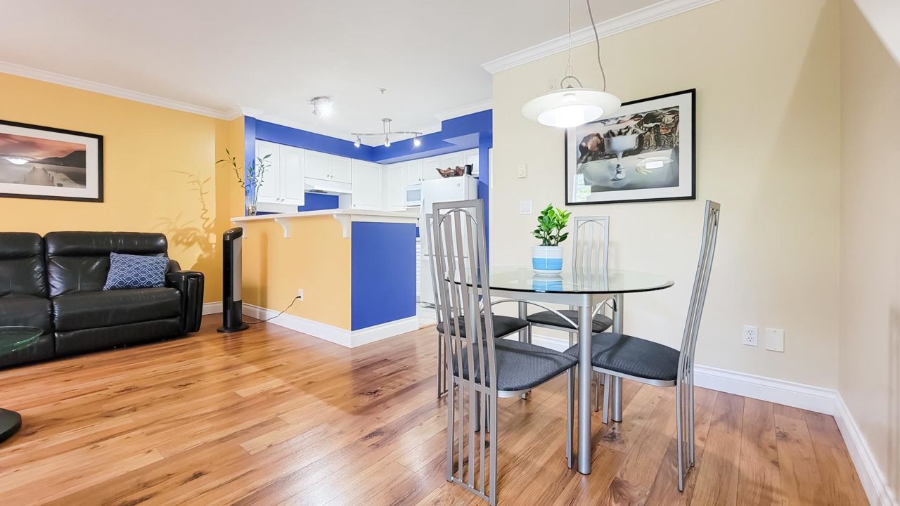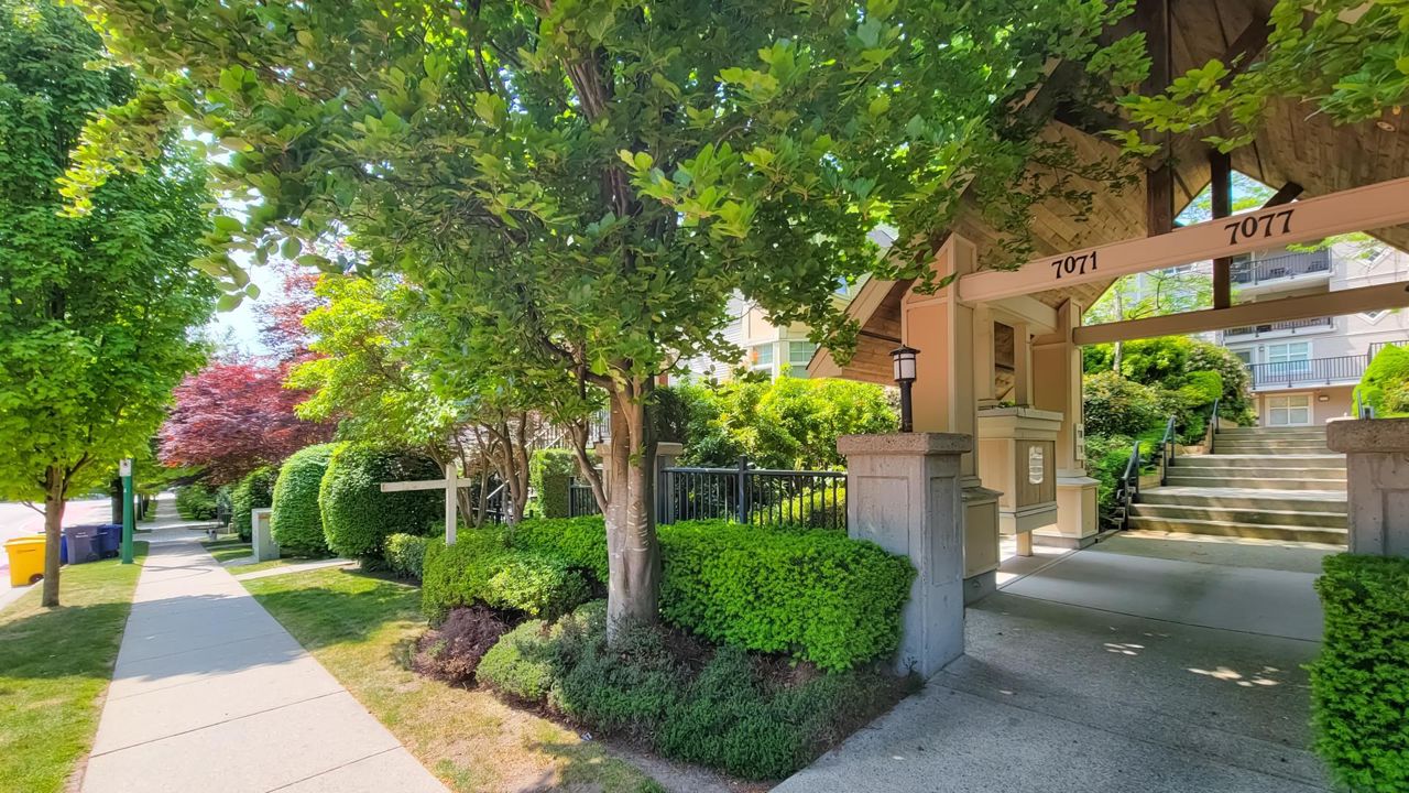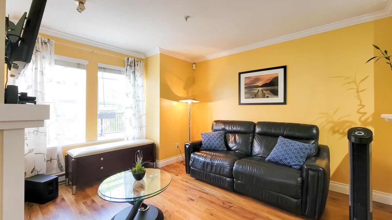 Location, Location, Location. 1 Block from Edmonds Skytrain Station. This beautiful 2 bedroom CORNER home facing the quiet inner Courtyard gives you best of both worlds Convenience & Tranquility. The home features 2 generous sized bedrooms and the Master Bedroom has partial vaulted ceilings. With plenty of sunshine coming into the home allows for a bright living area followed by an open-concept styled kitchen. The home is freshly painted, NEW LED lights, has screen sliding door and comes with 1 covered ground-level parking& a storage locker. LARGE PATIO space over 200 sqft great for your summer BBQ. Walking distance to skytrain, banks, shopping & schools. Don't miss this rare opportunity! Pet& Rental Friendly. Book your private appointment today.