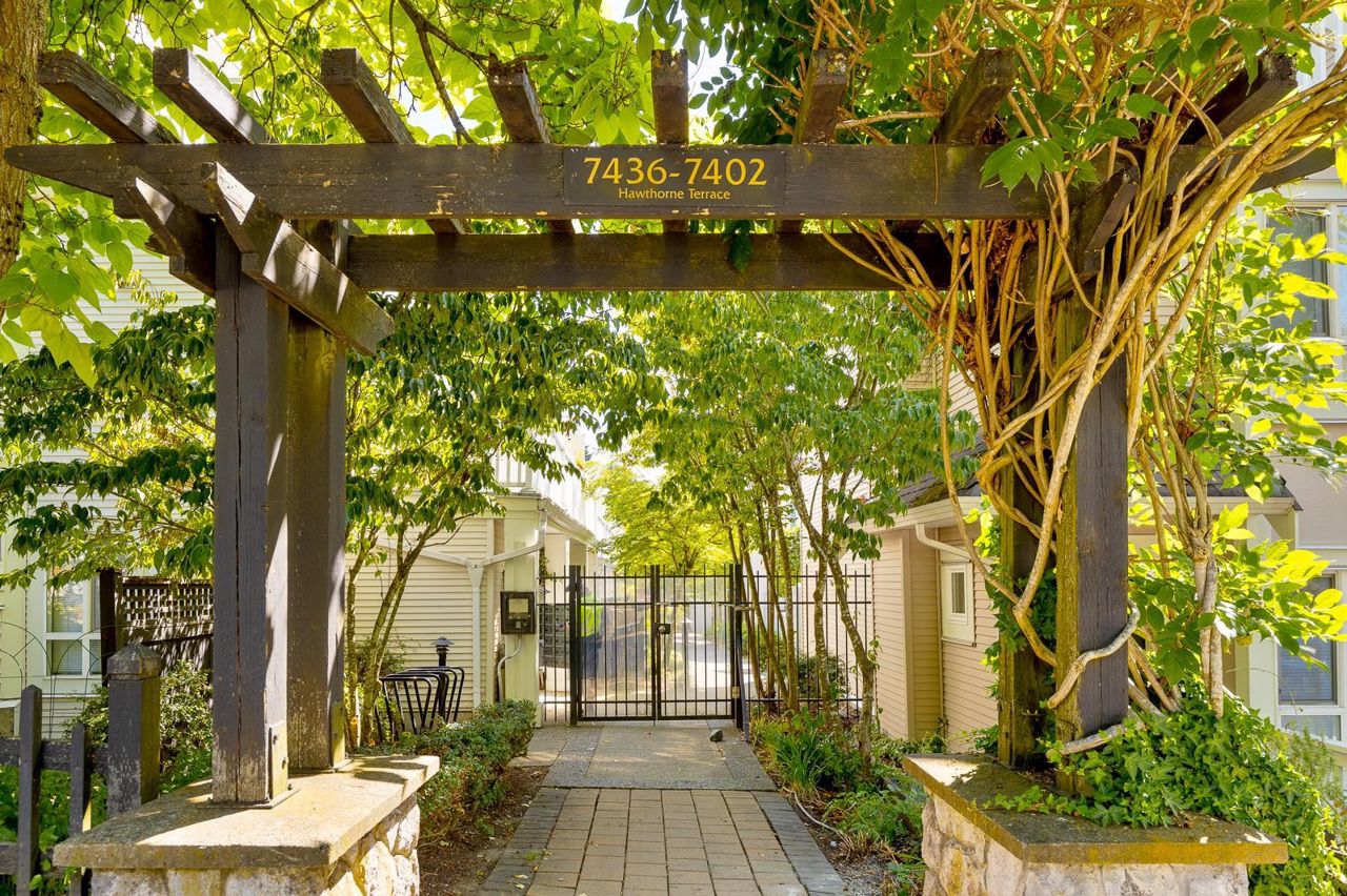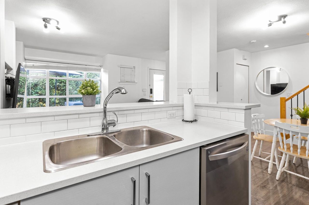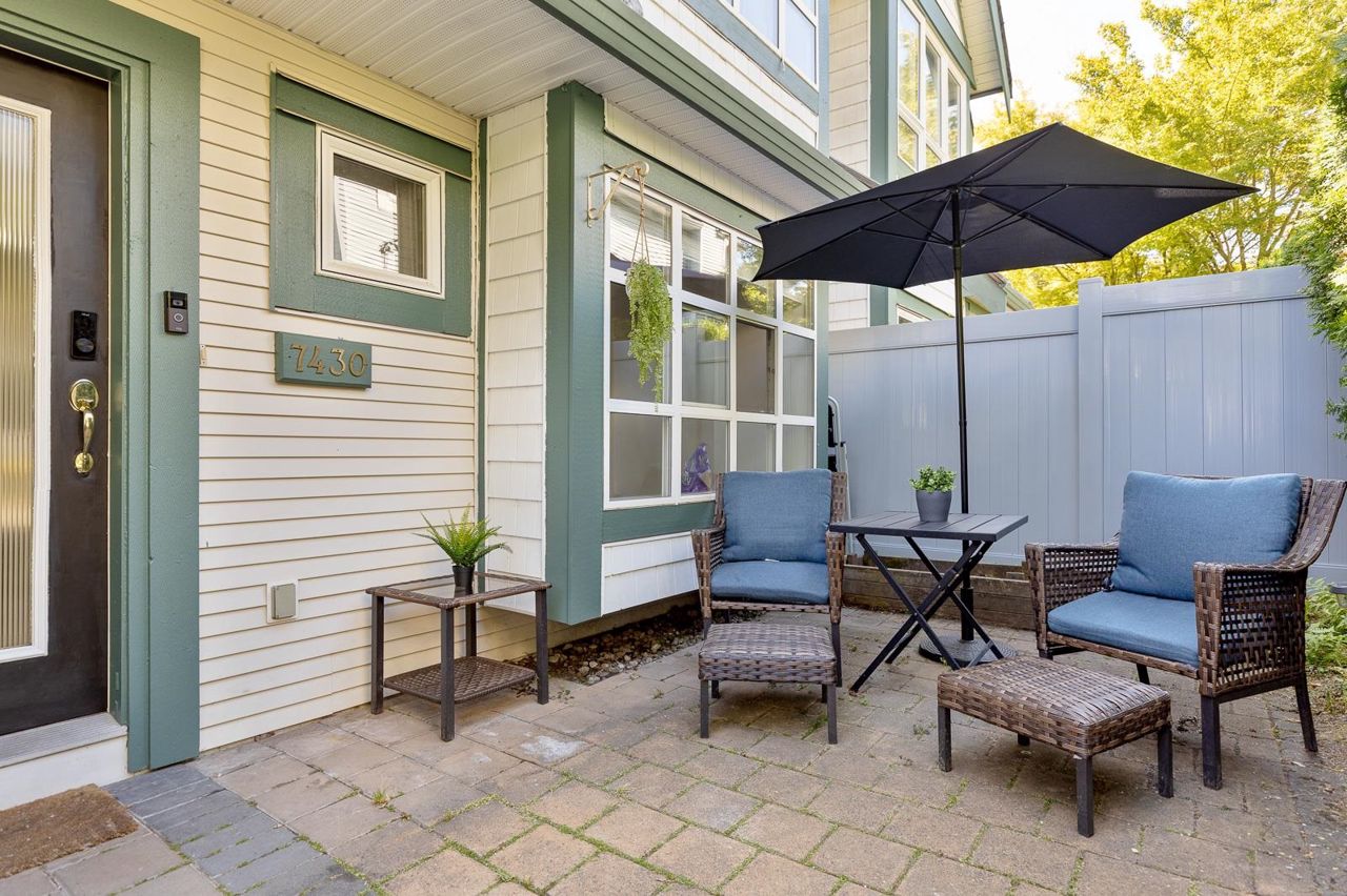 Welcome to the Rockhill by Adera, a gated community complex. Updated 2 level, 2 bdrm, 2 bath townhome, very private with no units above or below. This bright garden/patio unit has vaulted ceilings in the primary bedroom, bright skylights in the ensuite bathroom. Primary bedroom also has walk-in closet, large windows and custom shelving. Kitchen upgraded with new quartz counters, Back splash and appliances. 3 minute walk to Edmonds skytrain station, close to parks, trails, Highgate and Metrotown shopping.