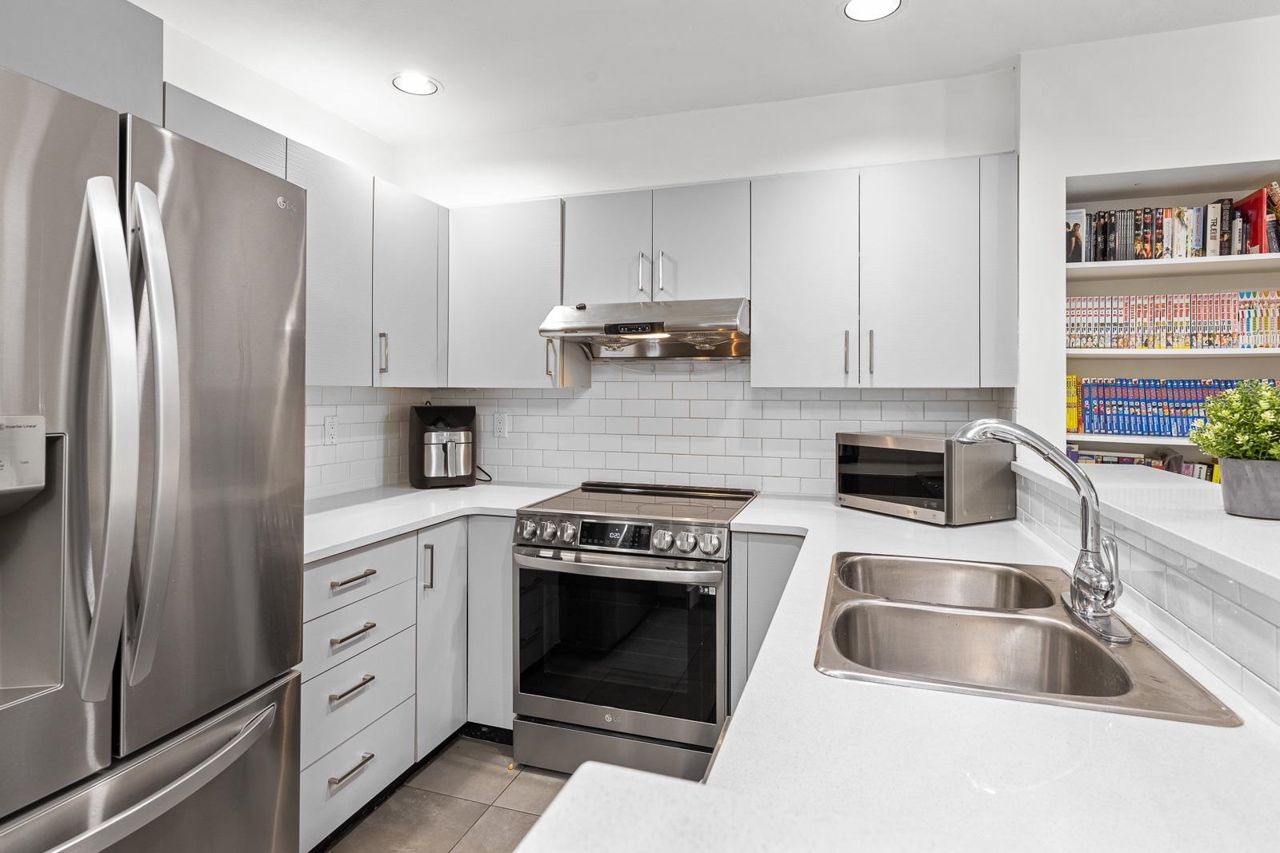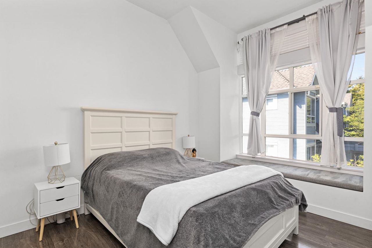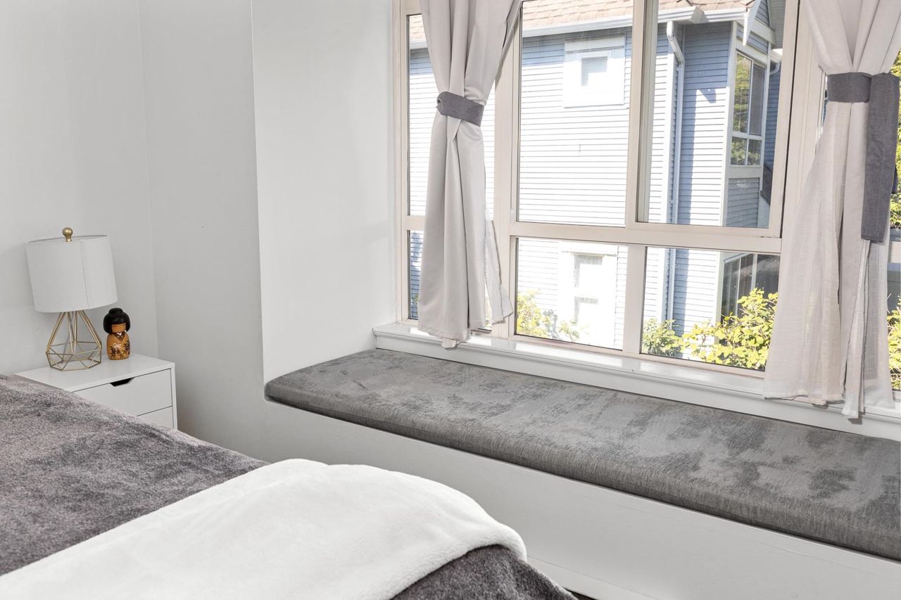 Welcome to the Rockhill by Adera, a gated community complex. Updated 2 level, 2 bdrm, 2 bath townhome, very private with no units above or below. This bright garden/patio unit has vaulted ceilings in the primary bedroom, bright skylights in the ensuite bathroom. Primary bedroom also has walk-in closet, large windows and custom shelving. Kitchen upgraded with new quartz counters, Back splash and appliances. 3 minute walk to Edmonds skytrain station, close to parks, trails, Highgate and Metrotown shopping.