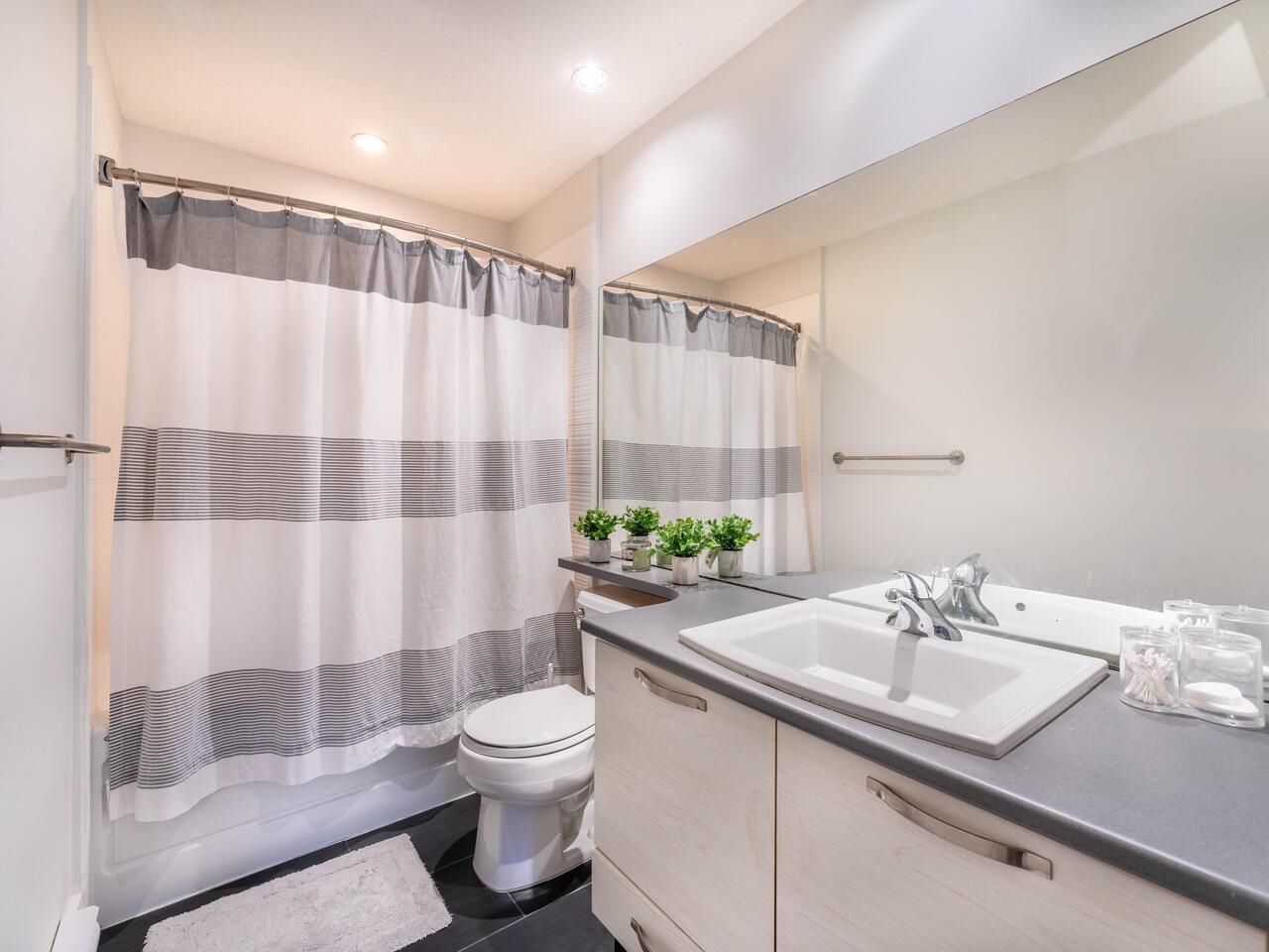 Step into an oasis in the city, passing a gorgeous water feature on your way to bold lobby next to a fitness facility, yoga room & cedar sauna. A tile entry meets you & leads to the kitchen w/ quartz capped counters surrounding black appliances. The dining room & living room w/ an electric f/p lead to glass sliding doors, & a spacious covered sundeck overlooking a water feature and the courtyard. A large primary bedroom has a walk-in closet & gorgeous ensuite w/ tiled soaker tub. The 2nd bedroom shares the same courtyard view as the primary. The full main bathroom is tucked off the entrance w/ a standup glass enclosed shower. Surrounded by mature landscaping, walking trails, dog park & Edmonds Skytrain is minutes away on foot & Market Crossing for Cactus Club, groceries & other amenities.
