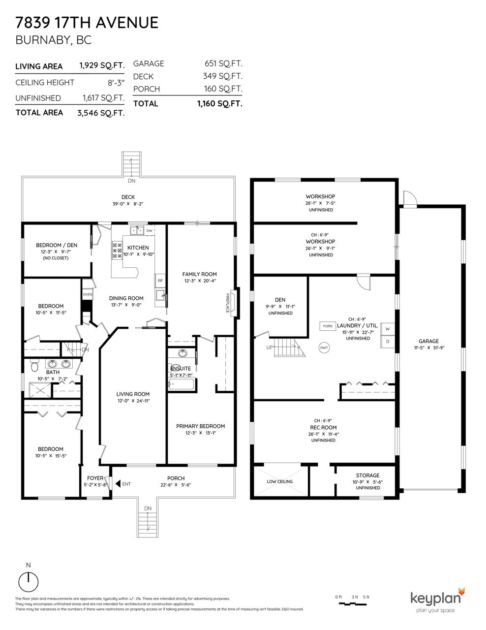 A Spacious two-level house, suitable for a big family, with a lot of potential. The main floor is 1,929 sq ft, and the unfinished 1,617 sq ft, 6'9 basement. The property has a 50 x 120 lot (6,000 sq ft) with no back lane, situated on a quiet residential street. The house features 4 large bedrooms and 2 full bathrooms on the upper level. While the home may need some updating, it's still livable. There's a deck off the kitchen. A front porch. Tandem-style garage. Close to Highgate Shop, Library, Edmonds Community Centre, Edmonds Skytrain, Bus Transit, Robert Burnaby Park. 15 mins to Metrotown Shop or Amazing Brentwood. School Catchment: Edmonds Elem School, Cariboo Sec School. Close to Douglas College, BCIT, SFU. Whether you want to live in it, rent it out, or build your dream home.