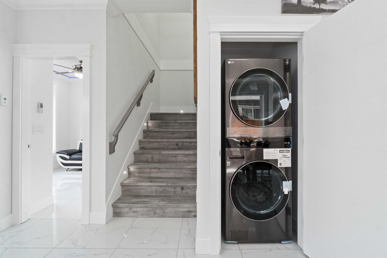 Introducing a brand new half duplex in Burnaby built by an experienced builder. Luxury and convenience blend seamlessly in this spacious 4 bed + den, & 4 bath home. The open concept design creates a harmonious flow between living, dining, and kitchen areas. Experience year-round comfort with radiant floor heating & A/C. Enjoy peace of mind with the complete security system. The detached garage offers secure parking, EV car charger & storage. Outside, a large yard invites relaxation and outdoor activities. The central location offers easy access to amenities, parks, schools, & transportation. With its amazing layout, high-end features, & central location, this home is a gem. Act now & embrace a luxurious lifestyle before its gone! Call today to schedule a showing.