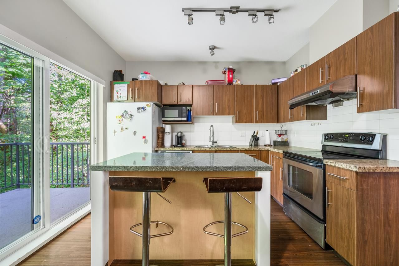 Chancery Lane, built by original BC builder Ledingham McAllister. This Townhouse is in the highly desired Cariboo area, and this unit is situated in the best location in the complex, backing onto greenbelt, this open functional floor plan features granite counter top, functional kitchen island, S/S appliances, laminate floor & all the bathrooms are newly renovated. Three bedrooms upstairs and 9' ceilings & powder room on main, walk out to private sundeck off gourmet kitchen surrounded by tranquil greenery, Double tandem garage, fully fenced back yard. Easy access to HWY 1, Lougheed HWY, all bridges to Surrey, close to Lougheed Mall and the Crest Plaza. Walking distance to all levels of school. School catchment: Armstrong Elementary and Cariboo Hill Secondary (#27/252). Don't miss it!