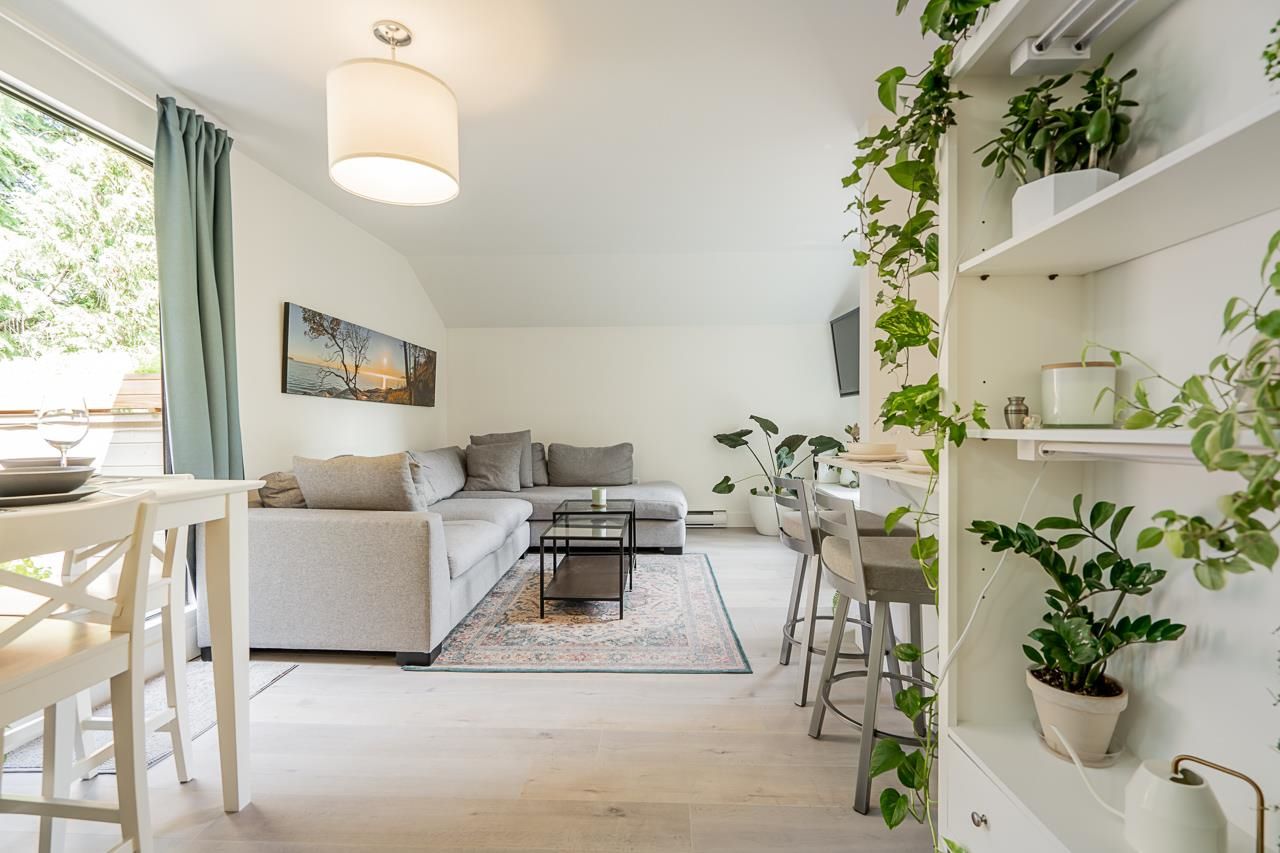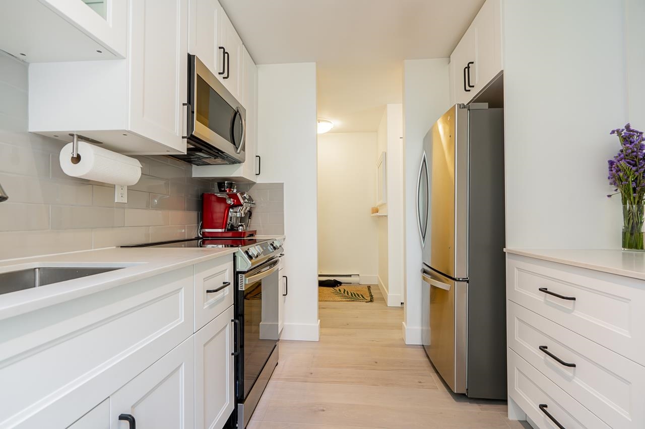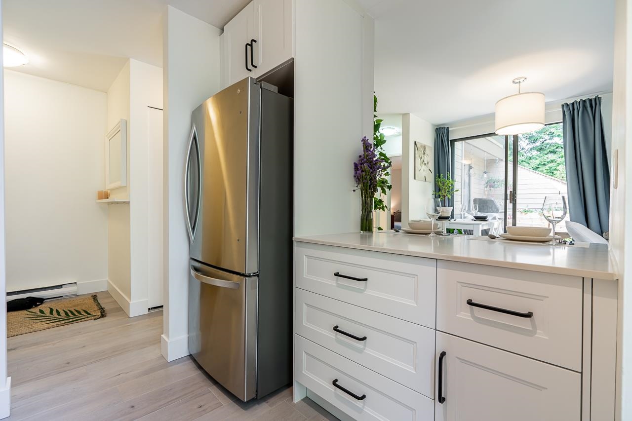 Welcome to Mountain Wood. This fully renovated top floor unit feels like a treehouse nestled in the forest-with minimal neighbors and total privacy! New kitchen, appliances, flooring and fully updated bathroom! Also features insuite storage/laundry room that fits a toddler bed or desk for a home office. A spacious balcony 13x8 overlooking greenspace-perfect for morning coffee and evening wine. Amenities include an outdoor pool, sauna, gym and more. Very quiet family oriented community w/ nearby walking & biking trails. Strata sits on 16 acres of landscaped private grounds with excellent future re-development potential. Rentals & pets allowed! Conveniently located walking distance to Lougheed Skytrain station, Lougheed Mall, SFU and minutes to Number 1 HWY!