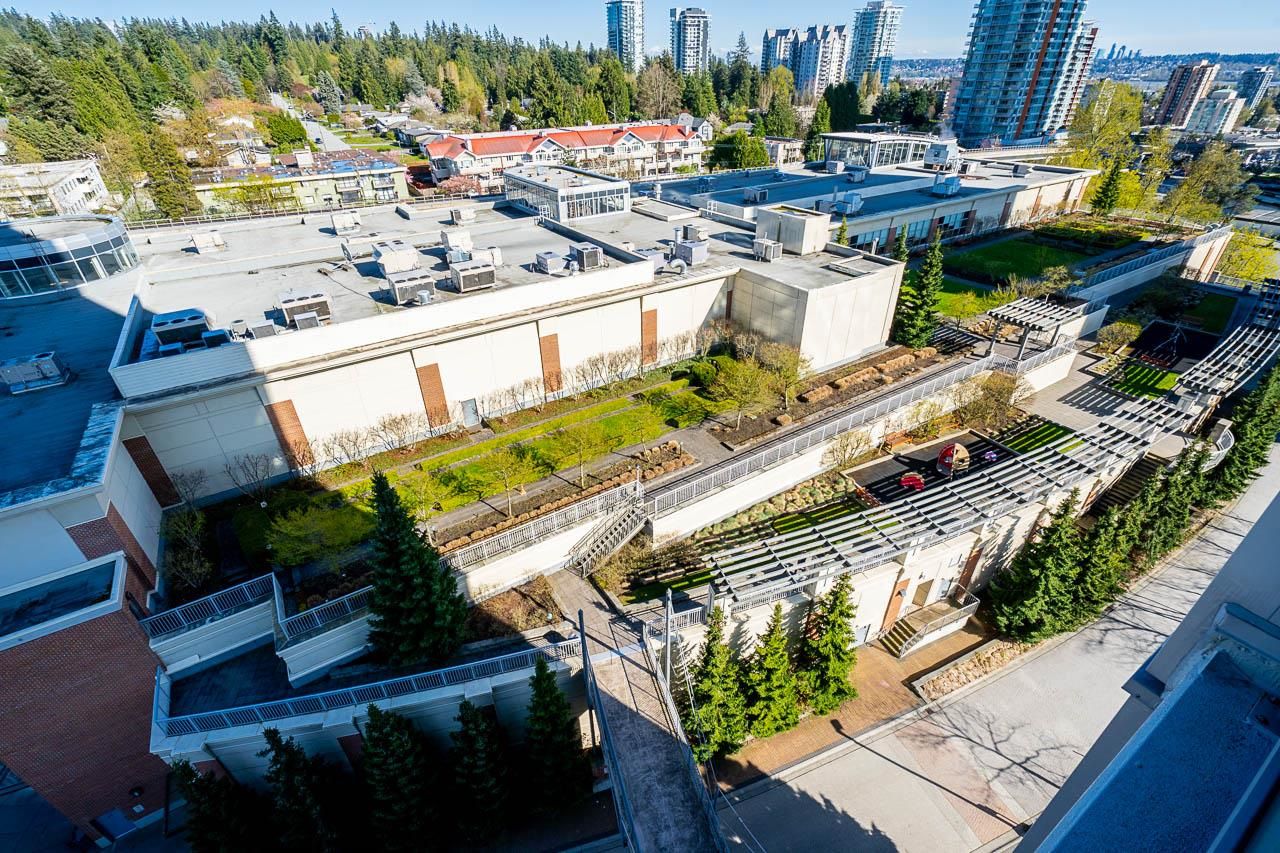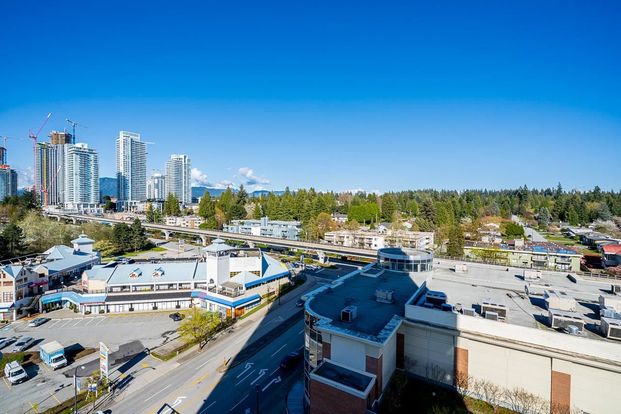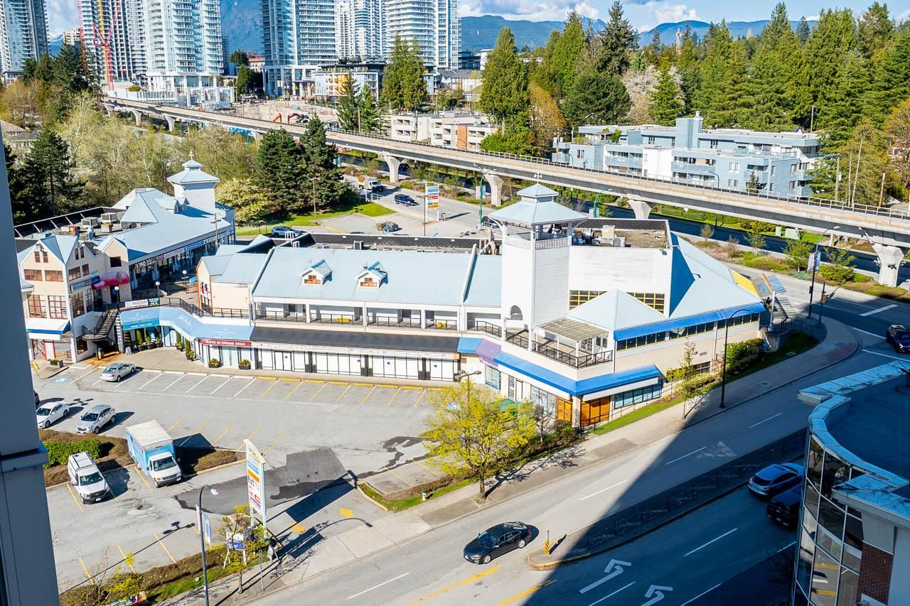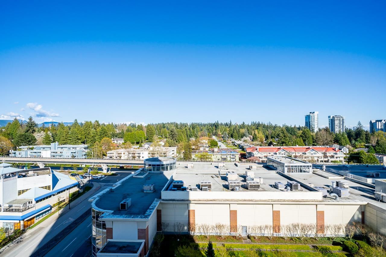 Welcome to Silhouette, located just steps from Lougheed Mall and Skytrain. This one bed & den unit on the 12th-floor boasts stunning city views and mountain vistas through floor-to-ceiling windows. Living room features electric fireplace for cozy nights. The modern kitchen boasts granite countertops, stainless steel appliances including gas range, a subway tile backsplash, and stylish pendant lighting. The spacious den, separate from the main living area, serves perfectly as a home office or nursery. Building amenities include a guest suite, meeting room, bike storage, fitness center, and a rooftop garden with a play area. Whether you're seeking a home or an investment opportunity, this fabulous one-bedroom plus den residence offers it all. Parking stall and storage locker included.