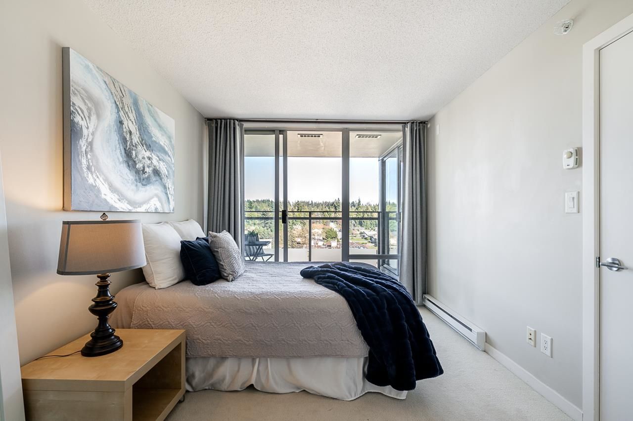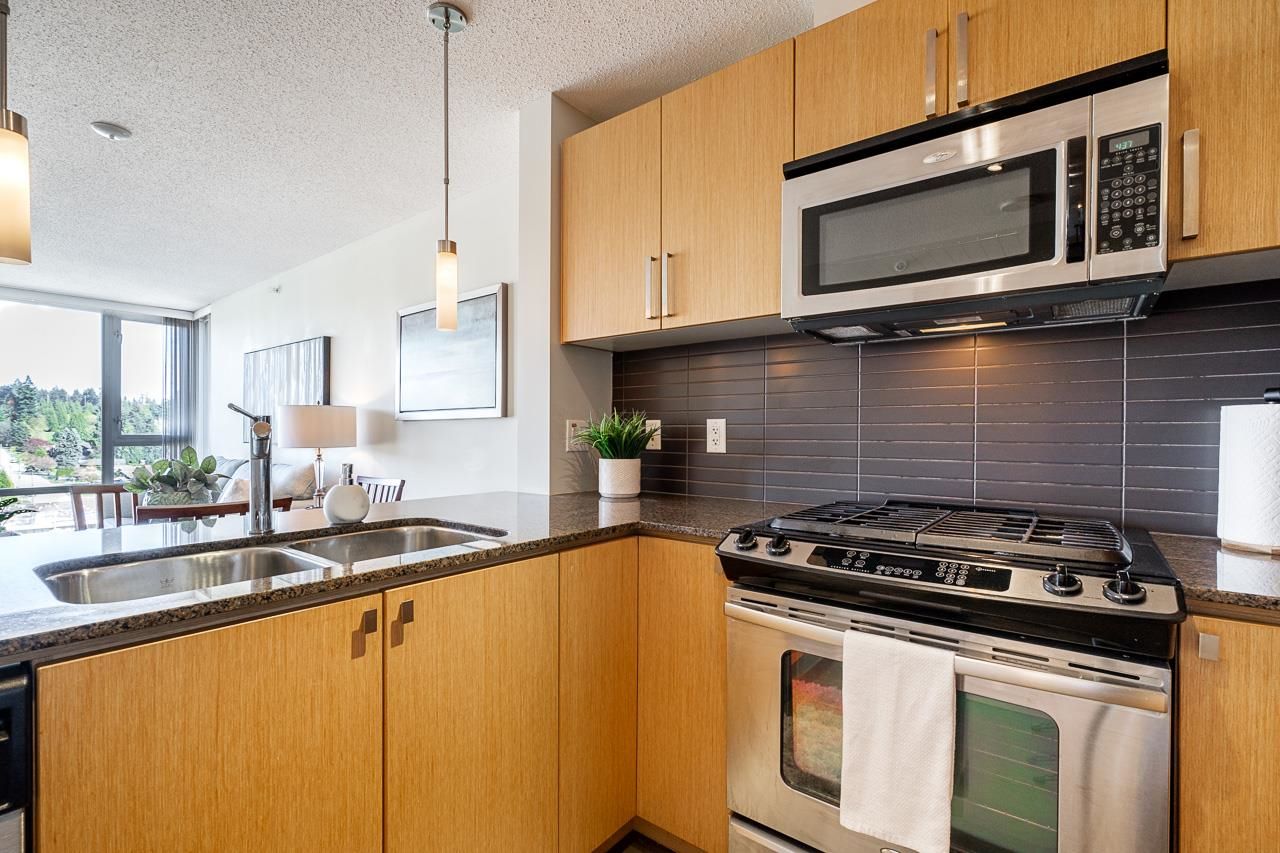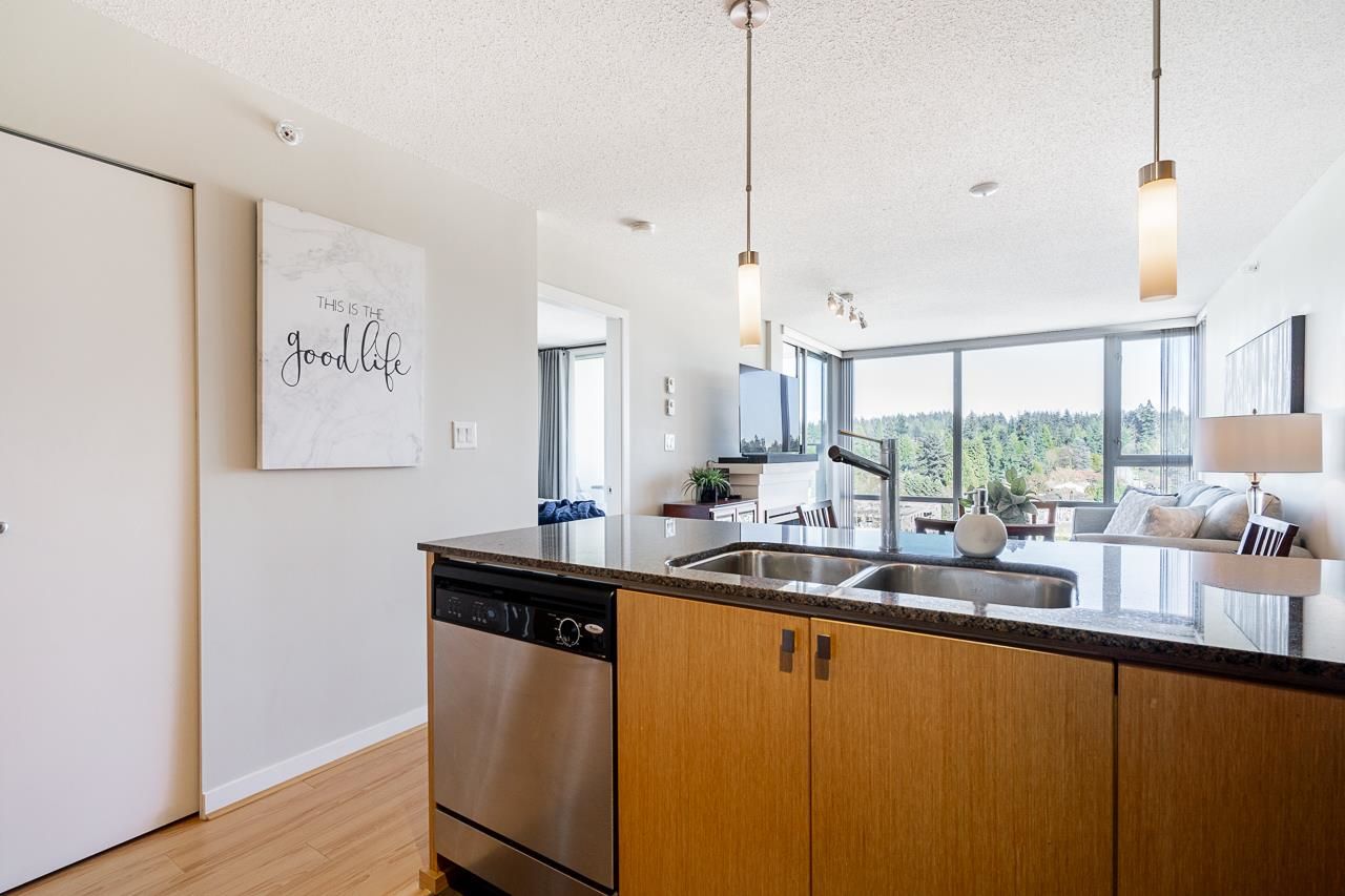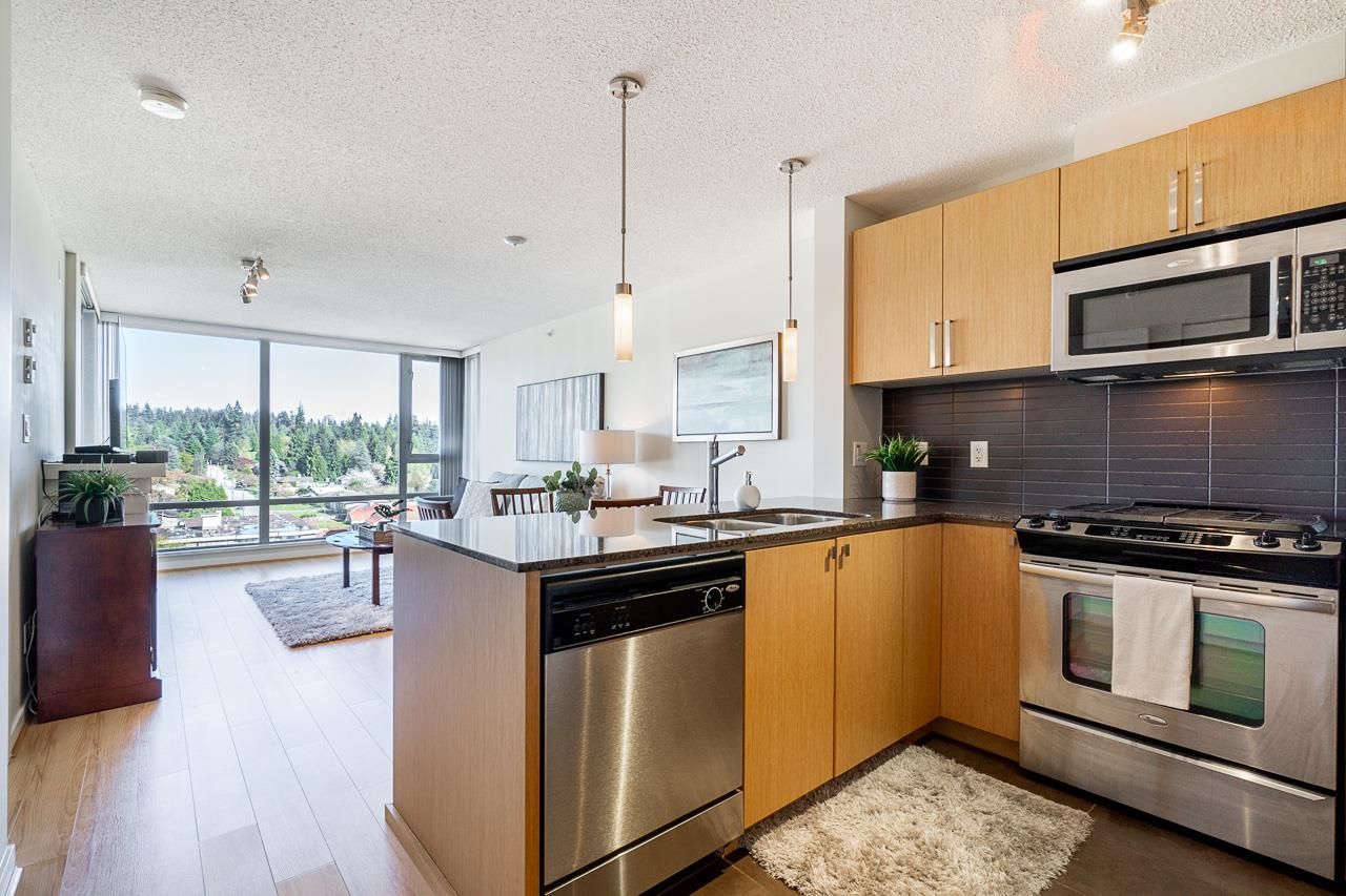 Welcome to Silhouette, located just steps from Lougheed Mall and Skytrain. This one bed & den unit on the 12th-floor boasts stunning city views and mountain vistas through floor-to-ceiling windows. Living room features electric fireplace for cozy nights. The modern kitchen boasts granite countertops, stainless steel appliances including gas range, a subway tile backsplash, and stylish pendant lighting. The spacious den, separate from the main living area, serves perfectly as a home office or nursery. Building amenities include a guest suite, meeting room, bike storage, fitness center, and a rooftop garden with a play area. Whether you're seeking a home or an investment opportunity, this fabulous one-bedroom plus den residence offers it all. Parking stall and storage locker included.