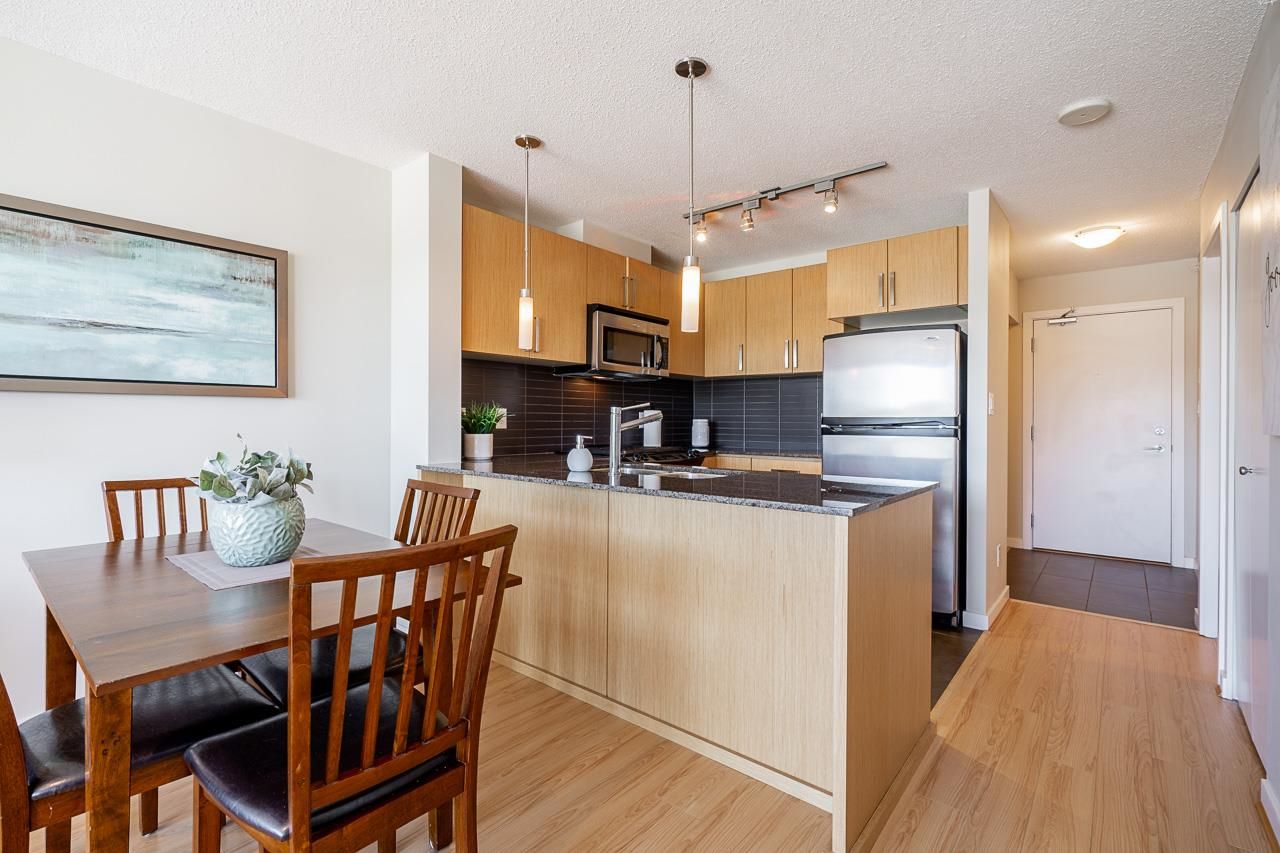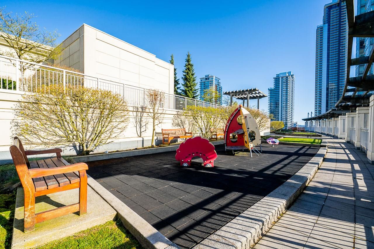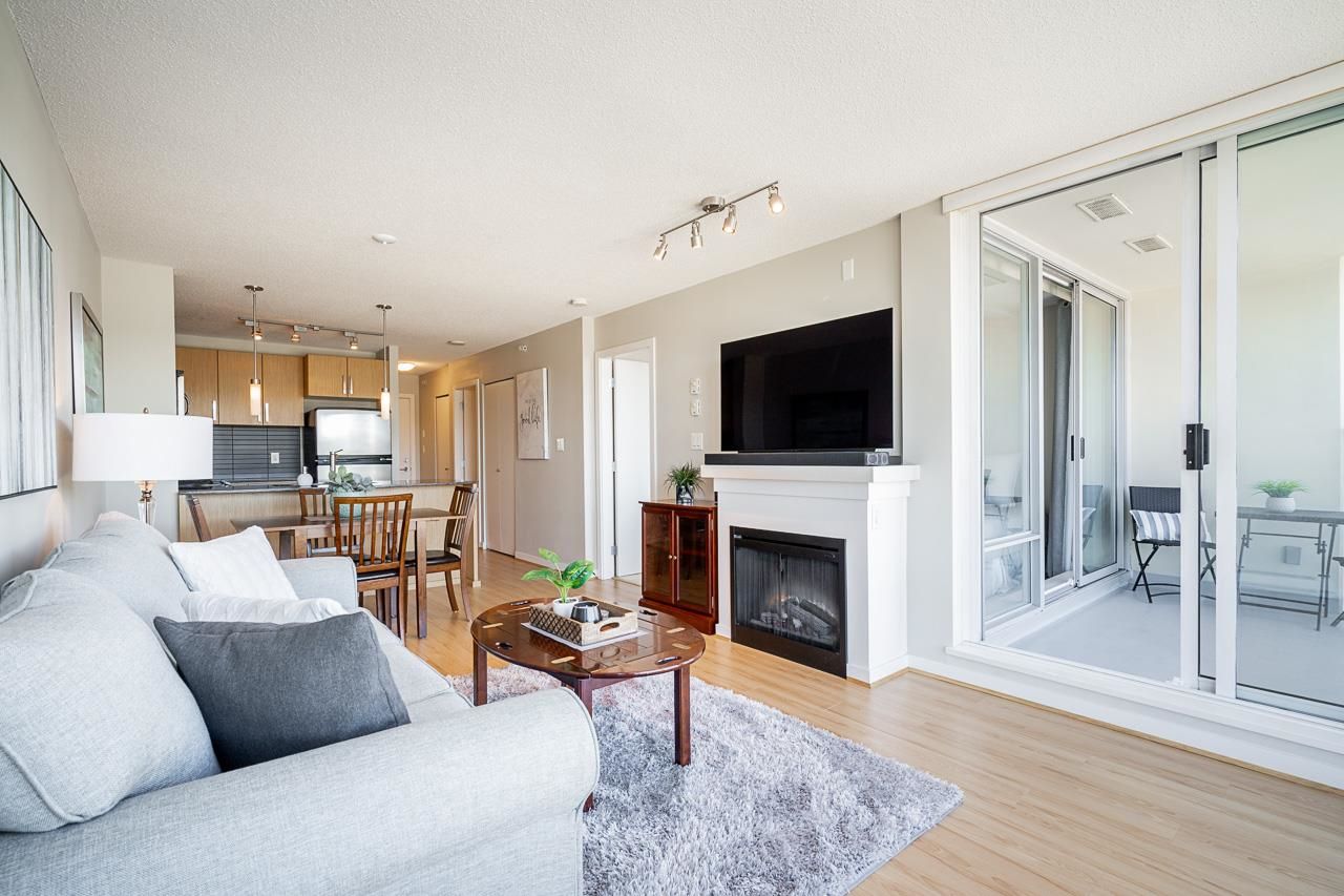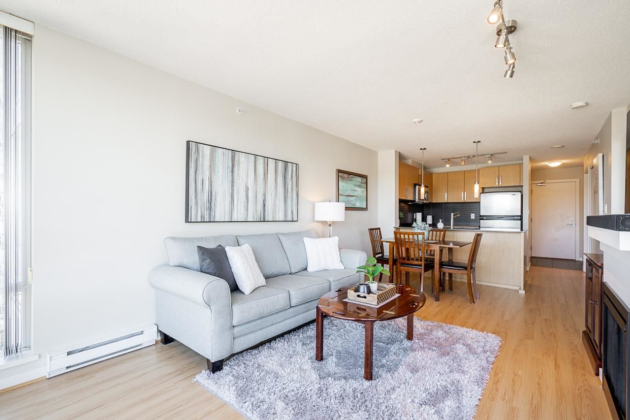 Welcome to Silhouette, located just steps from Lougheed Mall and Skytrain. This one bed & den unit on the 12th-floor boasts stunning city views and mountain vistas through floor-to-ceiling windows. Living room features electric fireplace for cozy nights. The modern kitchen boasts granite countertops, stainless steel appliances including gas range, a subway tile backsplash, and stylish pendant lighting. The spacious den, separate from the main living area, serves perfectly as a home office or nursery. Building amenities include a guest suite, meeting room, bike storage, fitness center, and a rooftop garden with a play area. Whether you're seeking a home or an investment opportunity, this fabulous one-bedroom plus den residence offers it all. Parking stall and storage locker included.