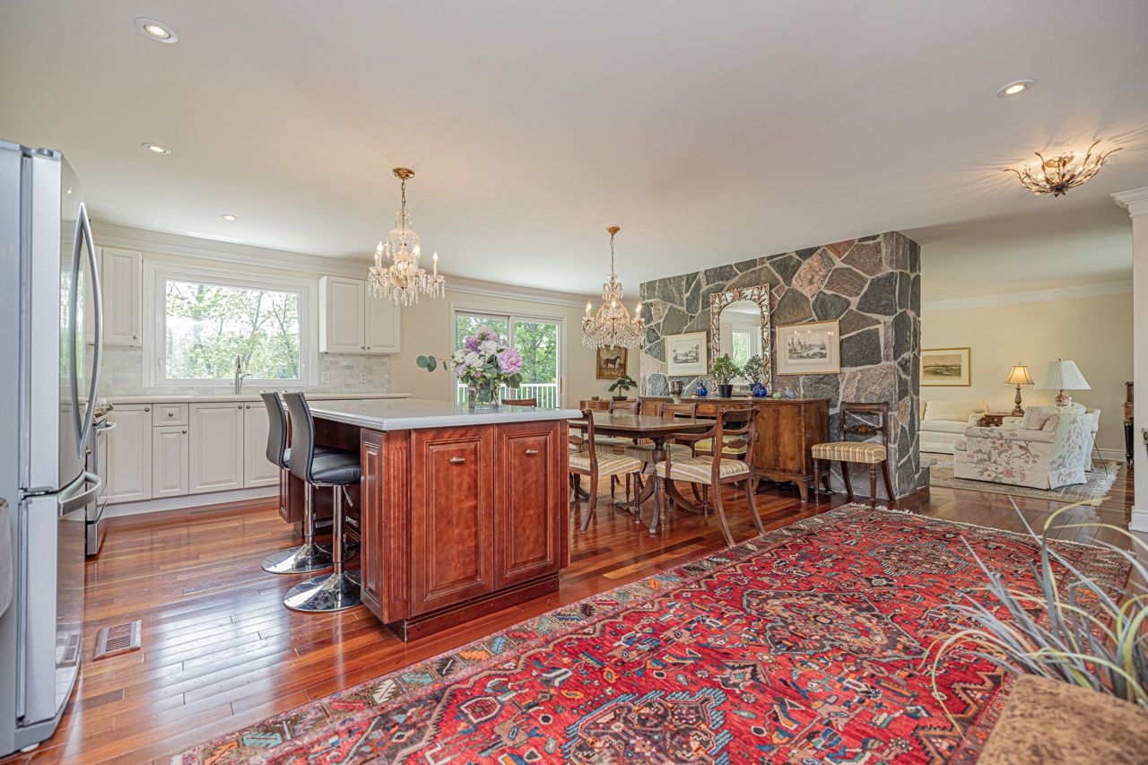 Immaculate brick and stone raised bungalow in the highly desirable Gibson Lake area of Palgrave, on 2 acres. This home features an open concept kitchen, dining room and family room accented by an incredible floor-to-ceiling granite fireplace! 3 bedrooms, 2 bathrooms on main floor, room for an additional bedroom in the lower level walk-out. Great room with fireplace also on lower level. Expansive stone patio for entertaining and enjoying your own pond. This property is surrounded by trees, creating an extremely private oasis with lovely open green space around the home. Walk to the very popular Palgrave Public School and the Caledon Hills Brewery. 35 minutes to Pearson International Airport.Great commuter location!