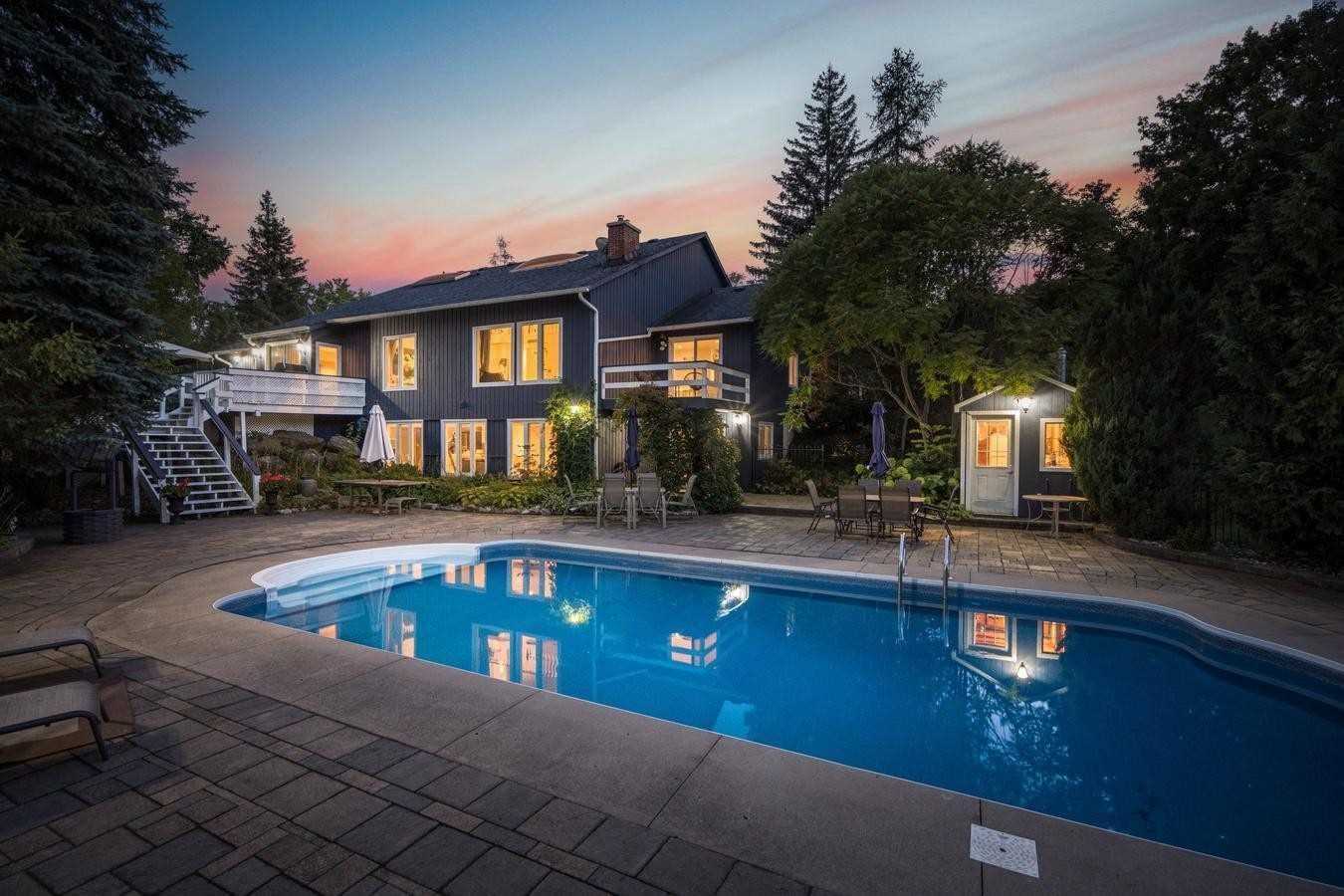 Custom Built Home Situated On Manicured 2.4 Acres Featuring A Backyard Oasis With Inground Pool, An Oversized 2 Garage Workshop ( 25' X 50' W/8' + 10' Doors + Drive-Through), Sauna & Hot Tub, Patios, Gardens, Volleyball Court, Irrigation System! This Home Is Perfect For Extended Families As The Full In-Law Suite In The Walkout Basement Features A Stunning Kitchen, Quartz Counters & Spa Like Bath W/Jetted Tub. Wall Of Windows, Big Br W/Walkout, 2 Pc & Sauna! Huge Family/Rec Rm, Large Storage Closet, Pot Lights High Ceilings And Tons Of Windows Grace This Lovingly Cared For Home. Main Floor Primary Suite With New Bath. 4th Br/Office, Kitchen W/B/I Appls & Heated Floors + Centre Island & W/O To Deck! Huge Formal Dining Room Could Also Serve As Fr. Upper Hall Overlooks Living Room Area, With 2 Bedrooms & Main Bath With Double Vanity & Skylight. Big Mud Rm W/Side Entrance & Access To Garage & Mflr.