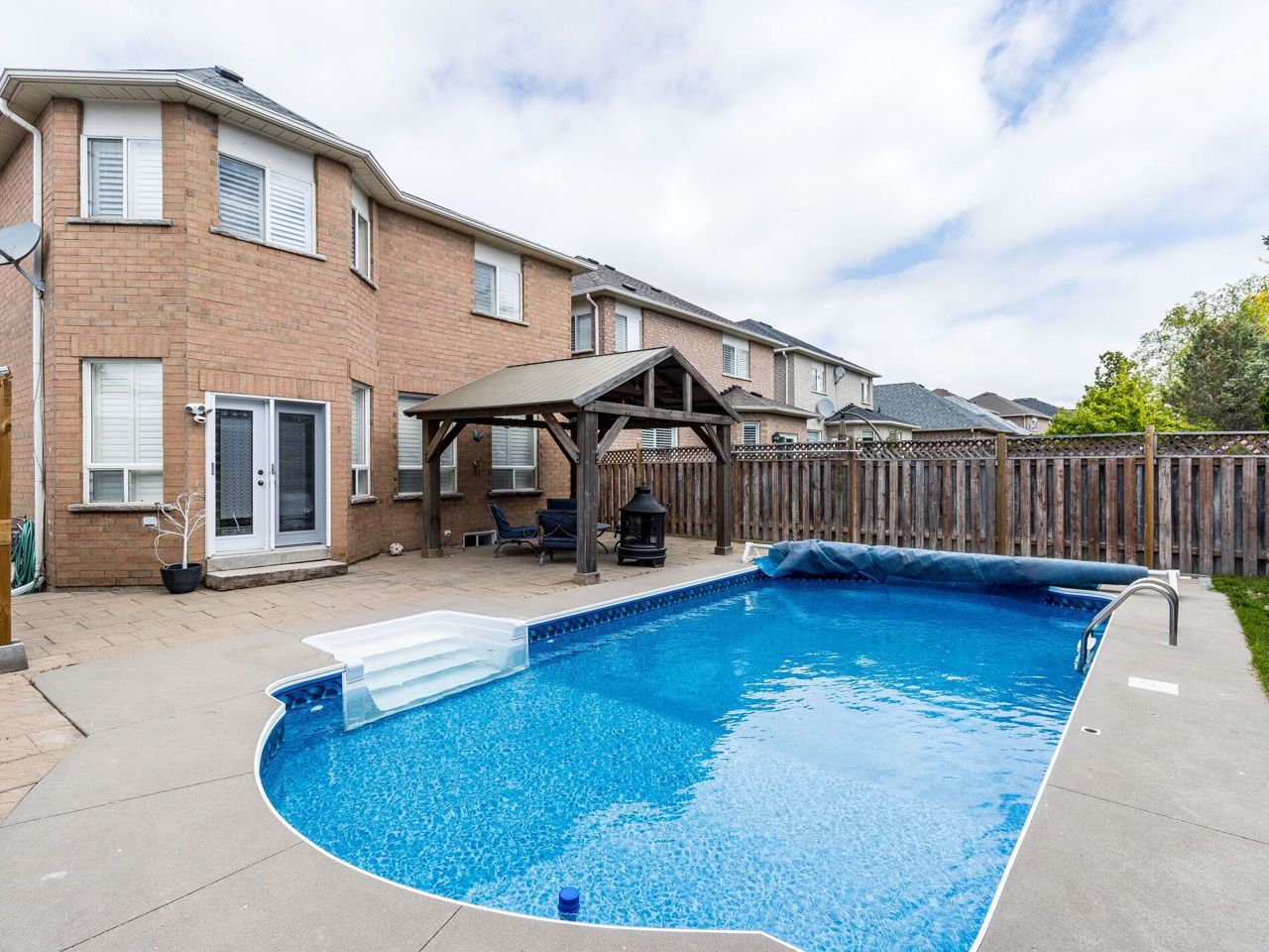 Located in the sought after Valleywood community of Caledon, this 4 bdr detached home with an inground heated salt water pool boasts curb appeal with prof. landscaped entrance. Double door entry into an inviting open foyer with 17ft ceilings provides lots of natural light. The main floor features an updated staircase with a large open concept living / dinning room and separate family room with a gas fireplace. 8.5" custom crown moldings. Eat-in kitchen with premium stainless steel appliances, granite countertops and walkout to yard. Upstairs features wood floors. ( no carpet throughout home) updated washrooms and a spacious primary bedroom. Finished basement with rec rooms for additional living space and cold room storage. Large driveway with parking for 4 cars, no sidewalk. Main floor laundry with access into the spacious garage.Well maintained home in a family friendly community, close to Parks and schools. Easy access to Hwy410. Furnace/AC replaced 2016. Roof shingles replaced 2015. Pool liner 2019. Pool heater and pump replaced 2020.