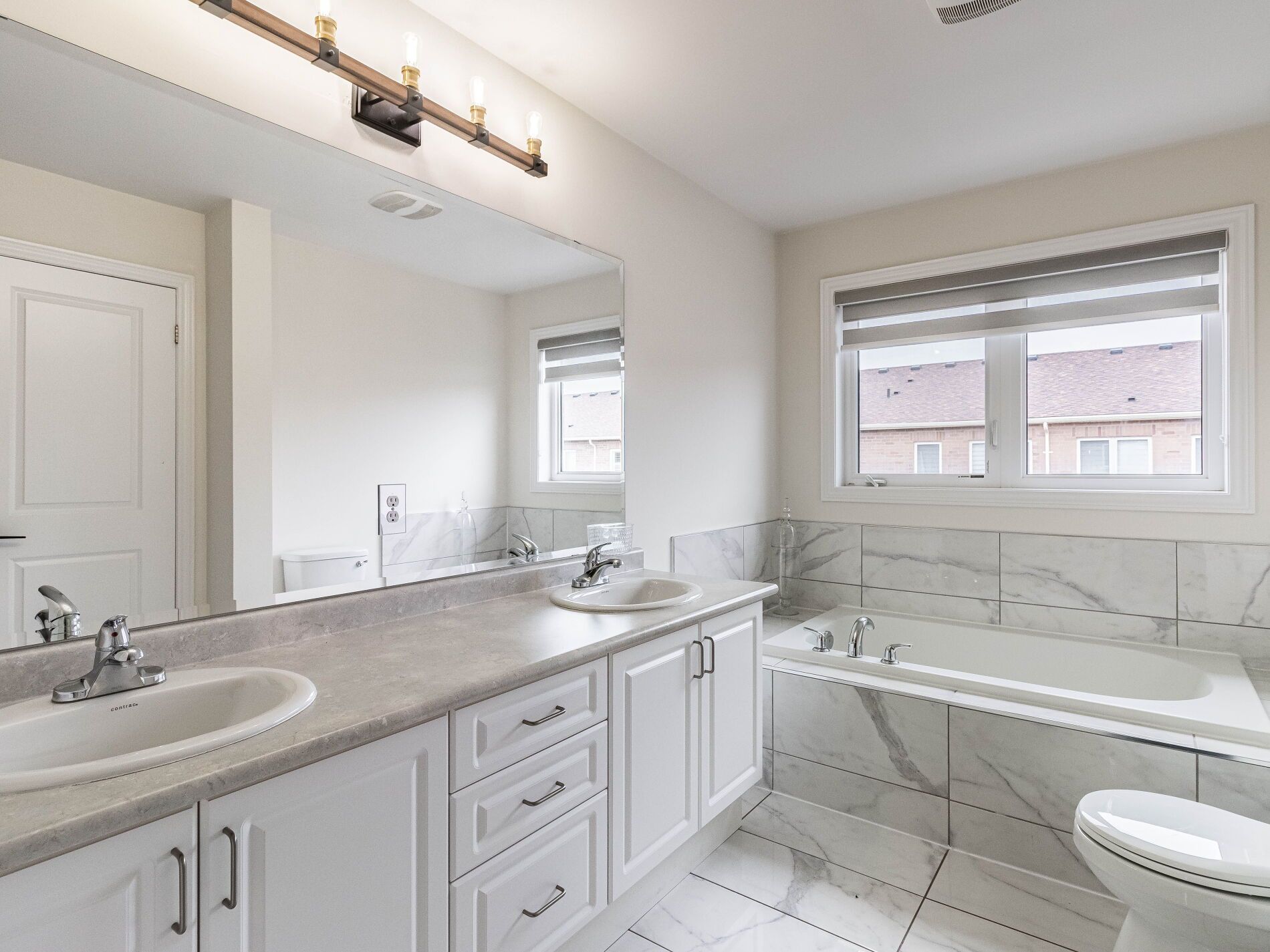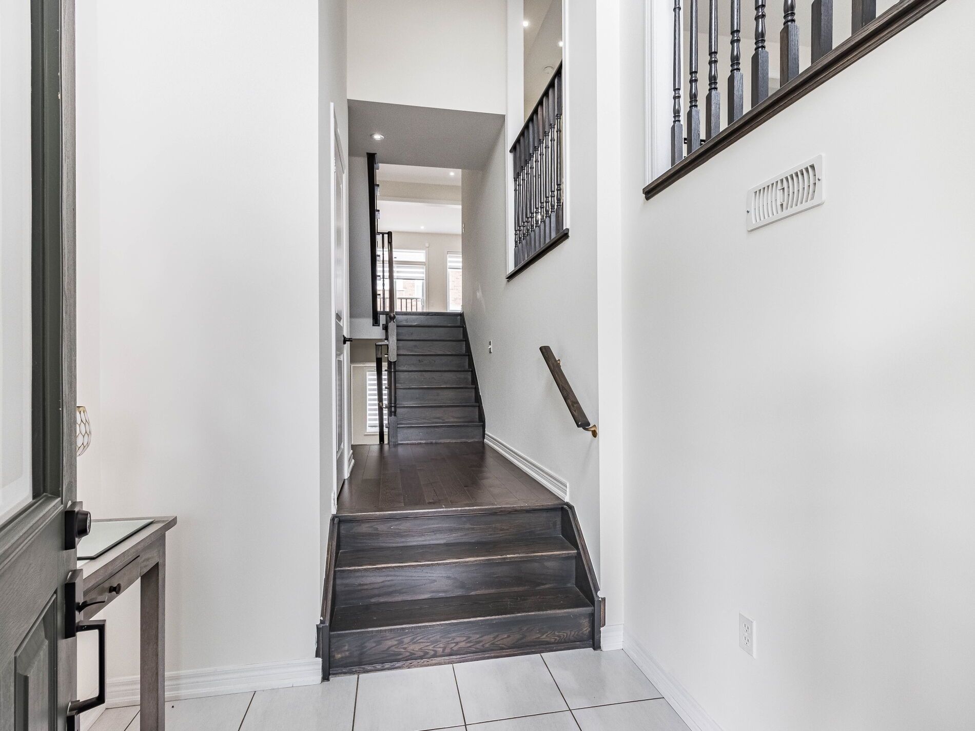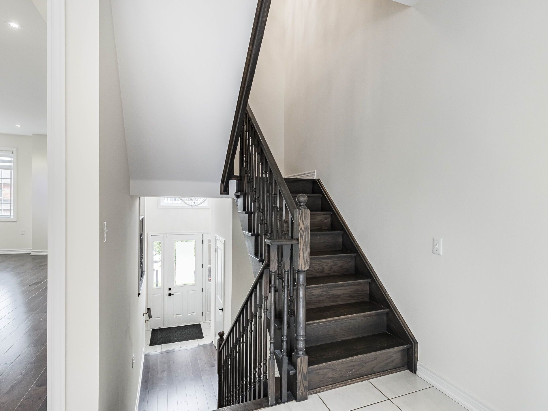 Enter This 16' Foyer And Notice High-End/Upgraded Engineered Flooring, Stairs, And Railings. App 2500 Sq Ft. The Kitchen Is Open To The Living Room (W/ Gas Fireplace And 9' Ceilings), And It Contains A Butler's Pantry With Modern Stainless Steel Appliances. Find Tiles Throughout The Foyer, Kitchen, Bathrooms, And -Upper-Level- Laundry Room. The Master Bedroom Contains A Walk-In Closet & Four Piece Ensuite W/ A Separate Shower And Tub. The Lower Family Room Leads To The Fenced Backyard And Provides Access To The Large Tandem Double-Car Garage. Updated light fixtures.Legal Description : PT BLK 409 PL 43M-1691 DES PT 12 PL 43R-36708 SUBJECT TO AN EASEMENT FOR ENTRY AS IN PR2834020 TOGET