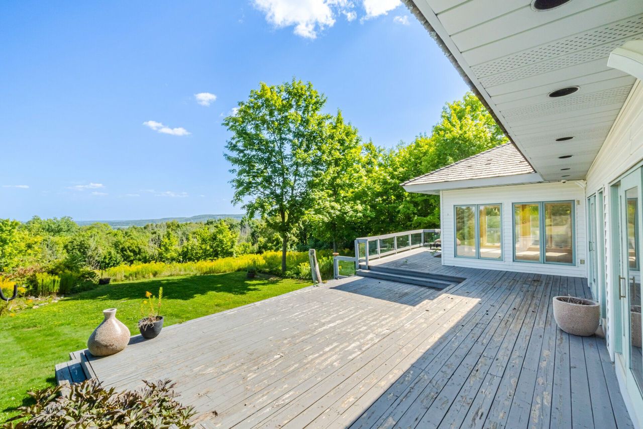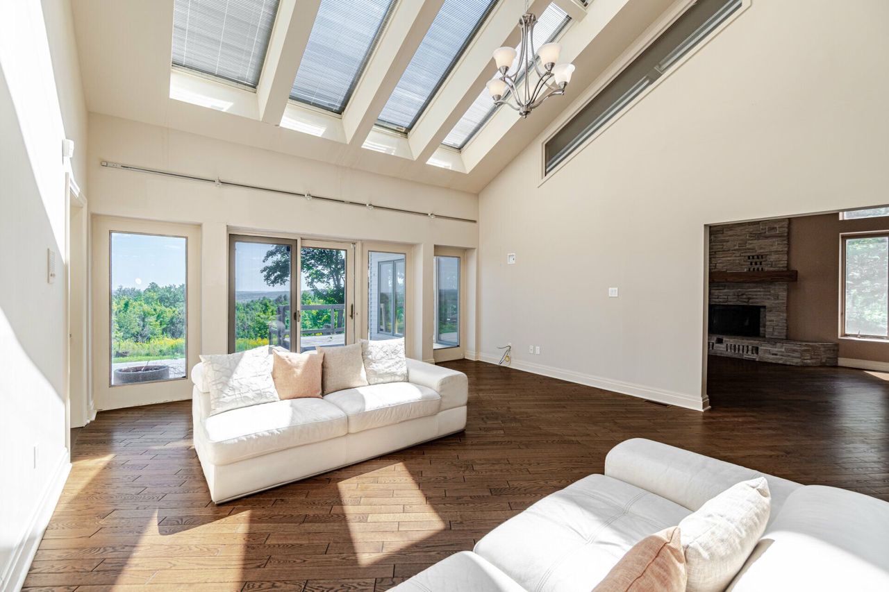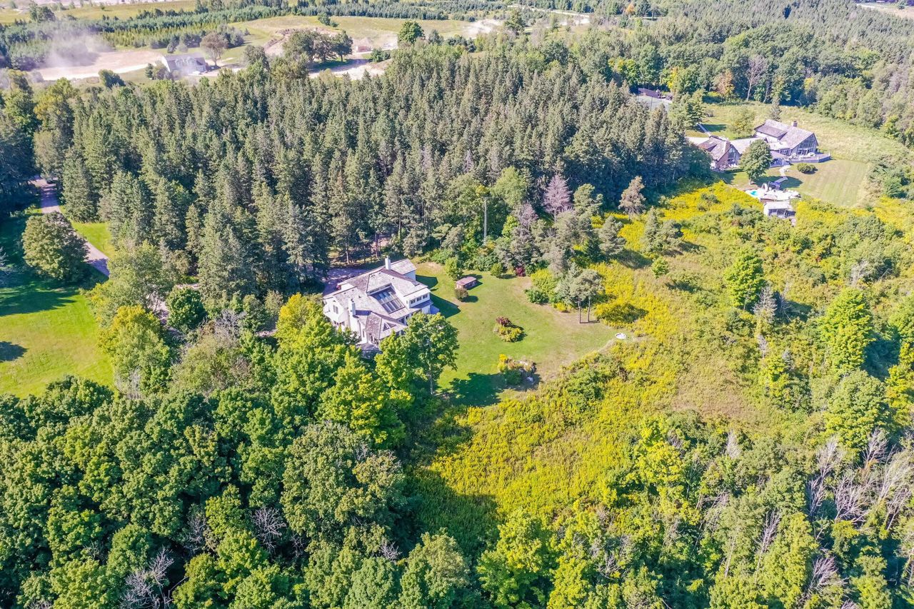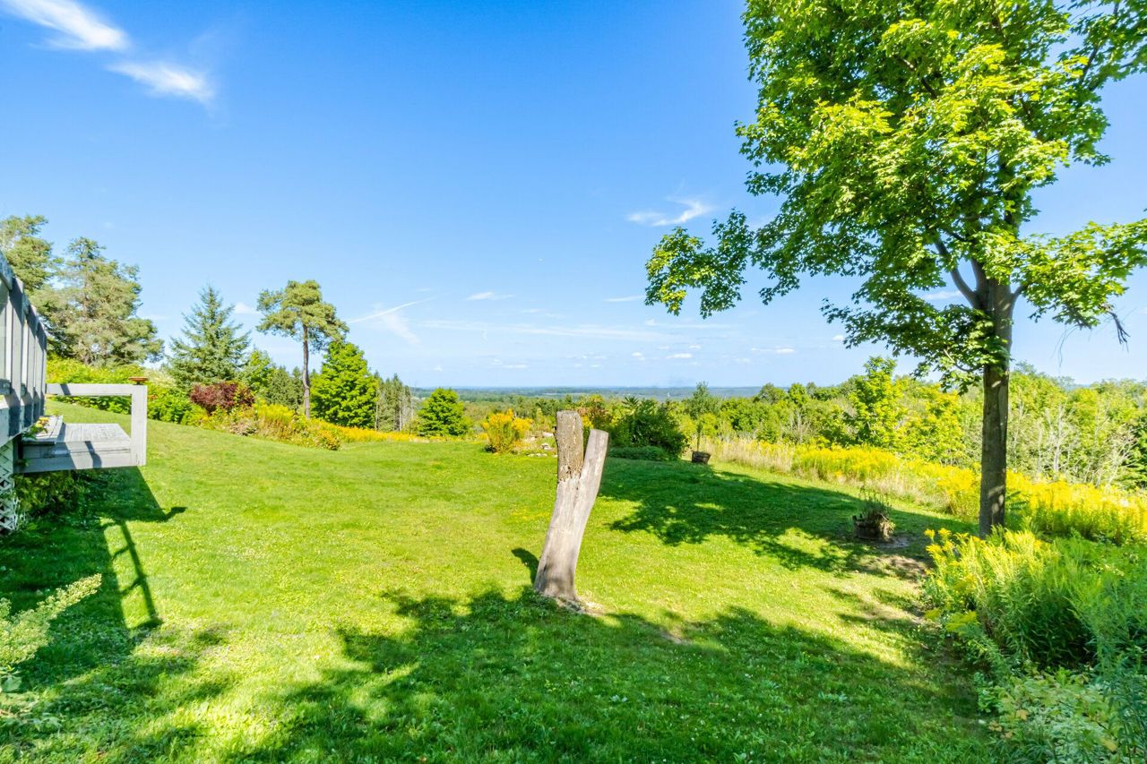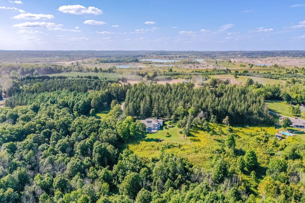 Set on 14.9 Acres on a private co-op road minute from the devil pulpit golf course. Spectacular eye-catching 360 degrees views. Enjoy the spectacular views of the Toronto skyline at the rear of the property from the wrap around deck or the spacious hot tub which is an entertainers dream in this private setting. As you enter the property thru stone pillar gates the circular driveway leads to this custom-built award-winning home with a open concept unique design that features: 3 car garage, Cedar shingles, Charming hardwood floors, Bright and spacious rooms with large windows & high ceilings, skylights and pot lights, offering amazing views throughout,4 bedrooms, sunroom, grand room, multiple walkouts Main floor prime bedroom with spiral staircase leading to upper floor private sitting room, upper level rec room/library,Finished Basement features Sauna, Shower, entertainment room, den, Large exercise room with custom fireplace, wine cellar. New well pump, new heat pumps, Kinetico water filtration system, 400amp service. Home is in need of repairs and TLC.