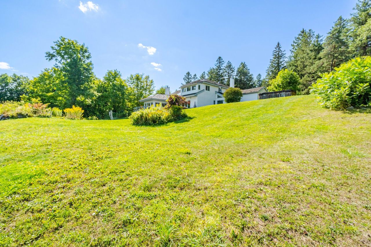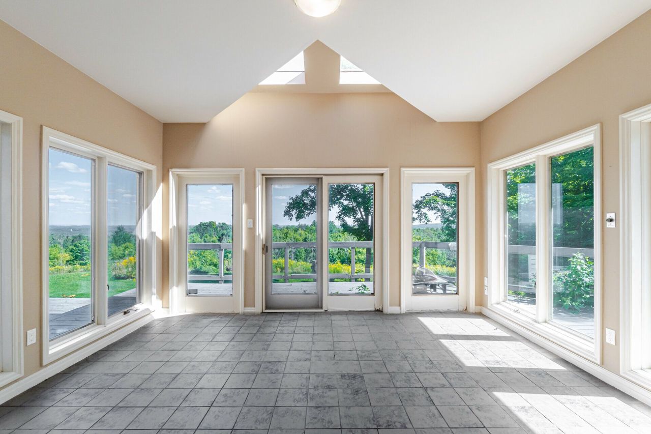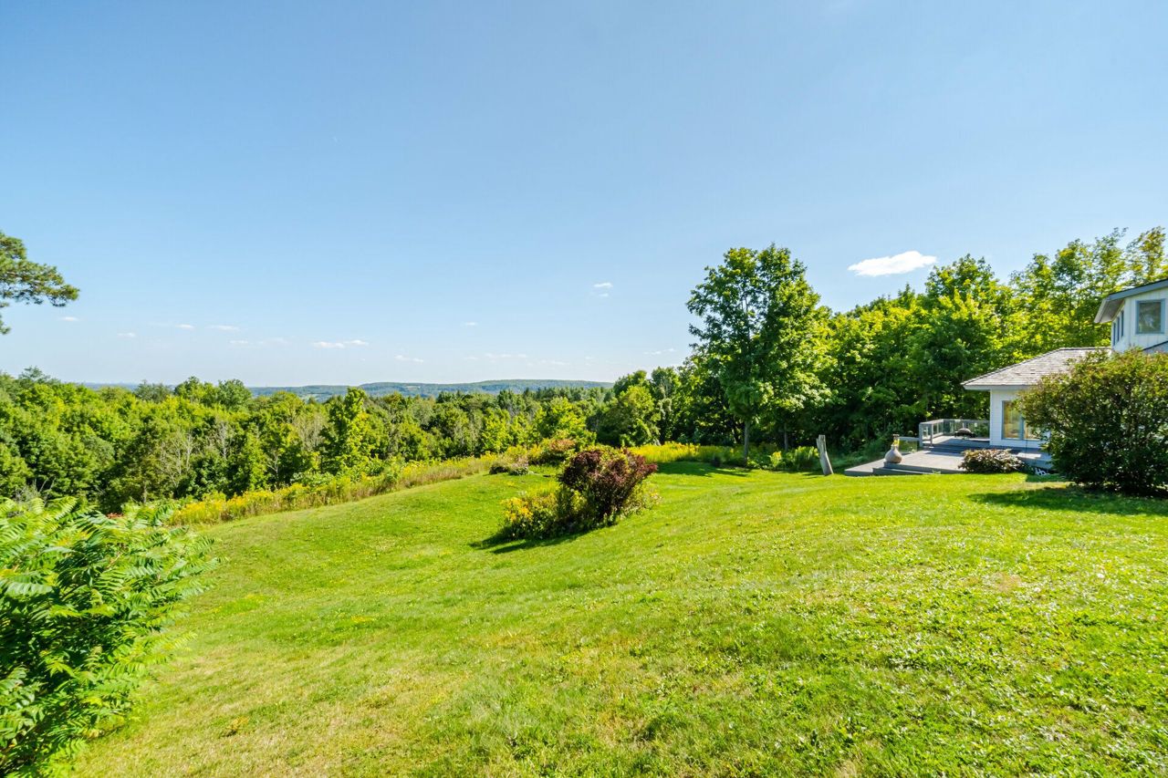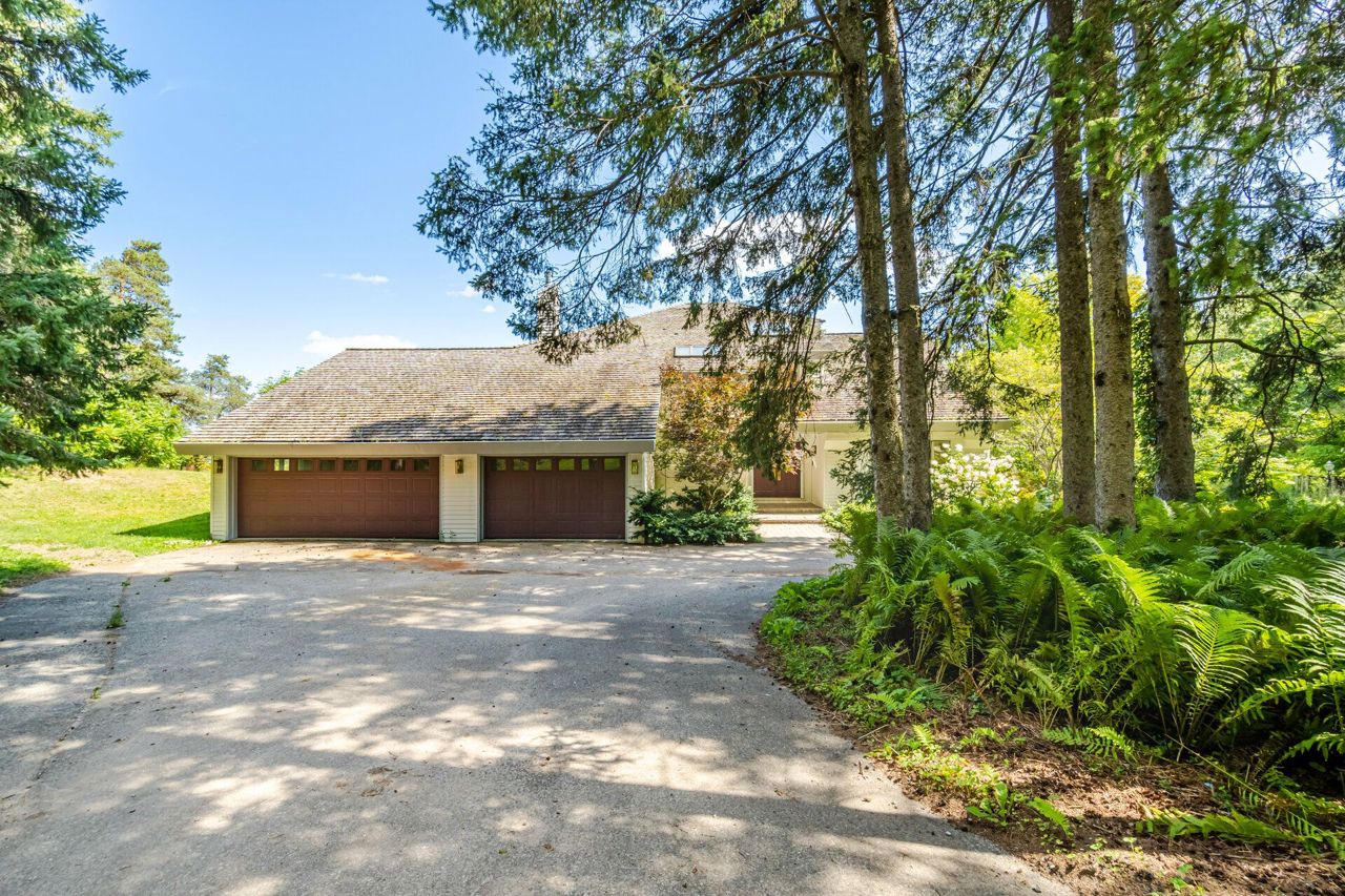 Set on 14.9 Acres on a private co-op road minute from the devil pulpit golf course. Spectacular eye-catching 360 degrees views. Enjoy the spectacular views of the Toronto skyline at the rear of the property from the wrap around deck or the spacious hot tub which is an entertainers dream in this private setting. As you enter the property thru stone pillar gates the circular driveway leads to this custom-built award-winning home with a open concept unique design that features: 3 car garage, Cedar shingles, Charming hardwood floors, Bright and spacious rooms with large windows & high ceilings, skylights and pot lights, offering amazing views throughout,4 bedrooms, sunroom, grand room, multiple walkouts Main floor prime bedroom with spiral staircase leading to upper floor private sitting room, upper level rec room/library,Finished Basement features Sauna, Shower, entertainment room, den, Large exercise room with custom fireplace, wine cellar. New well pump, new heat pumps, Kinetico water filtration system, 400amp service. Home is in need of repairs and TLC.