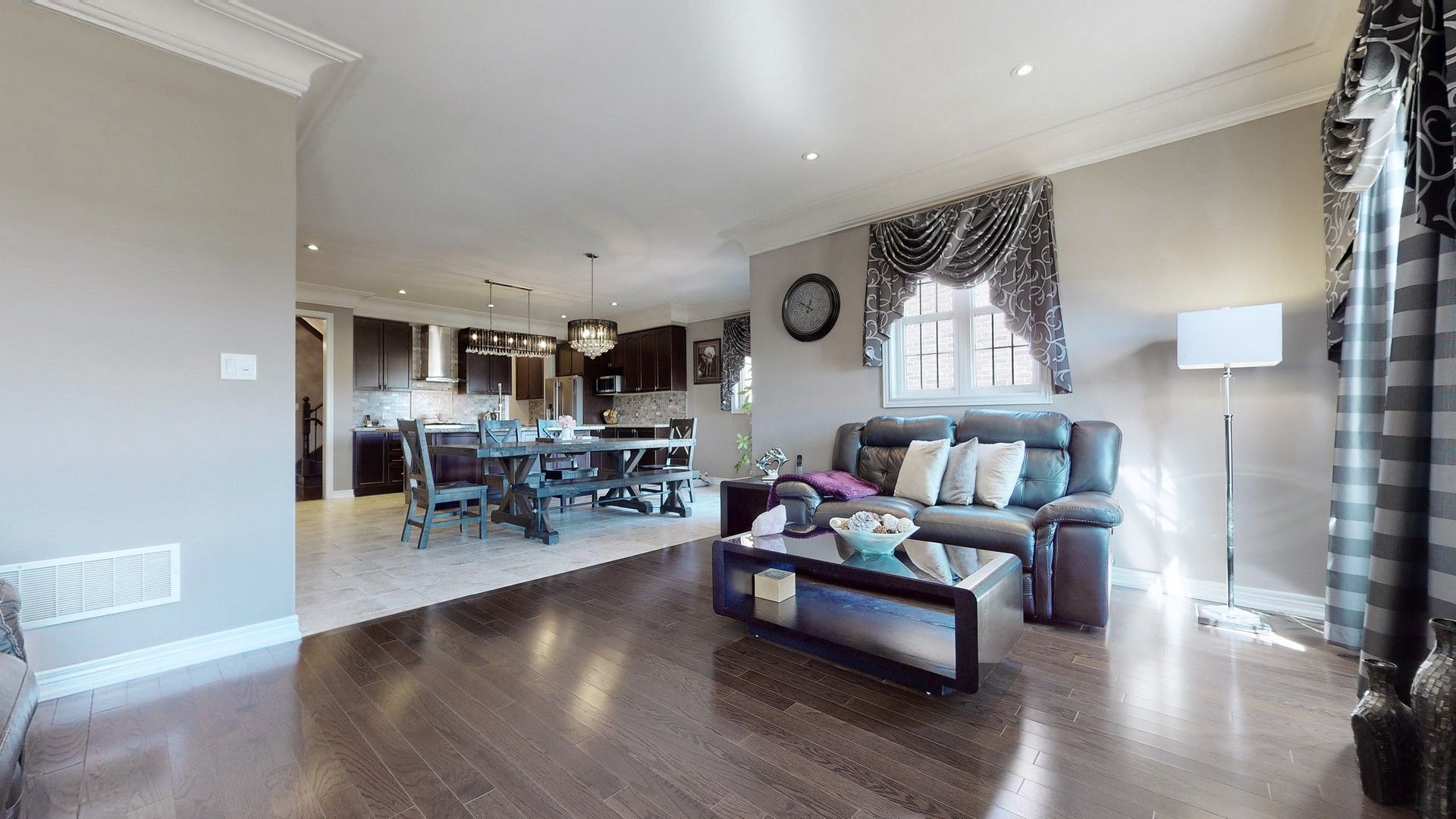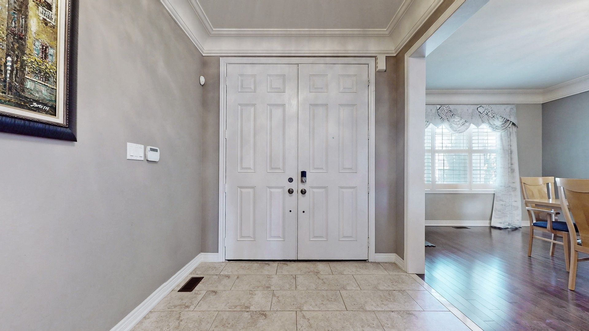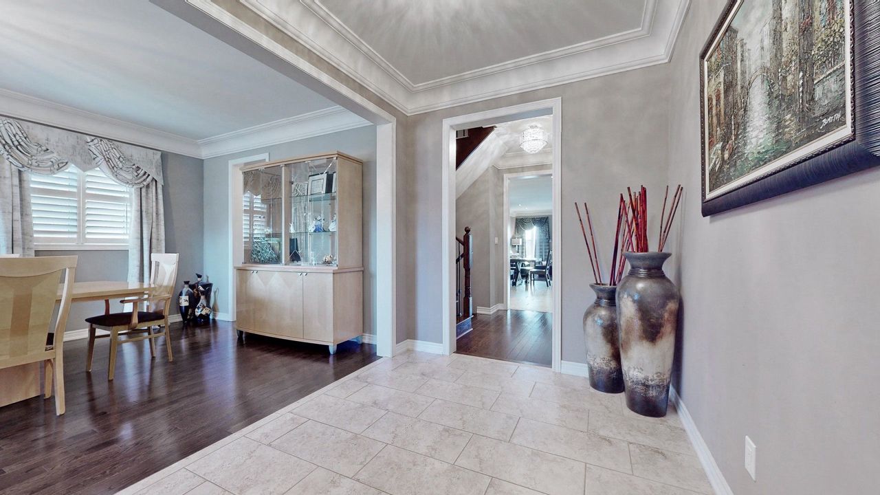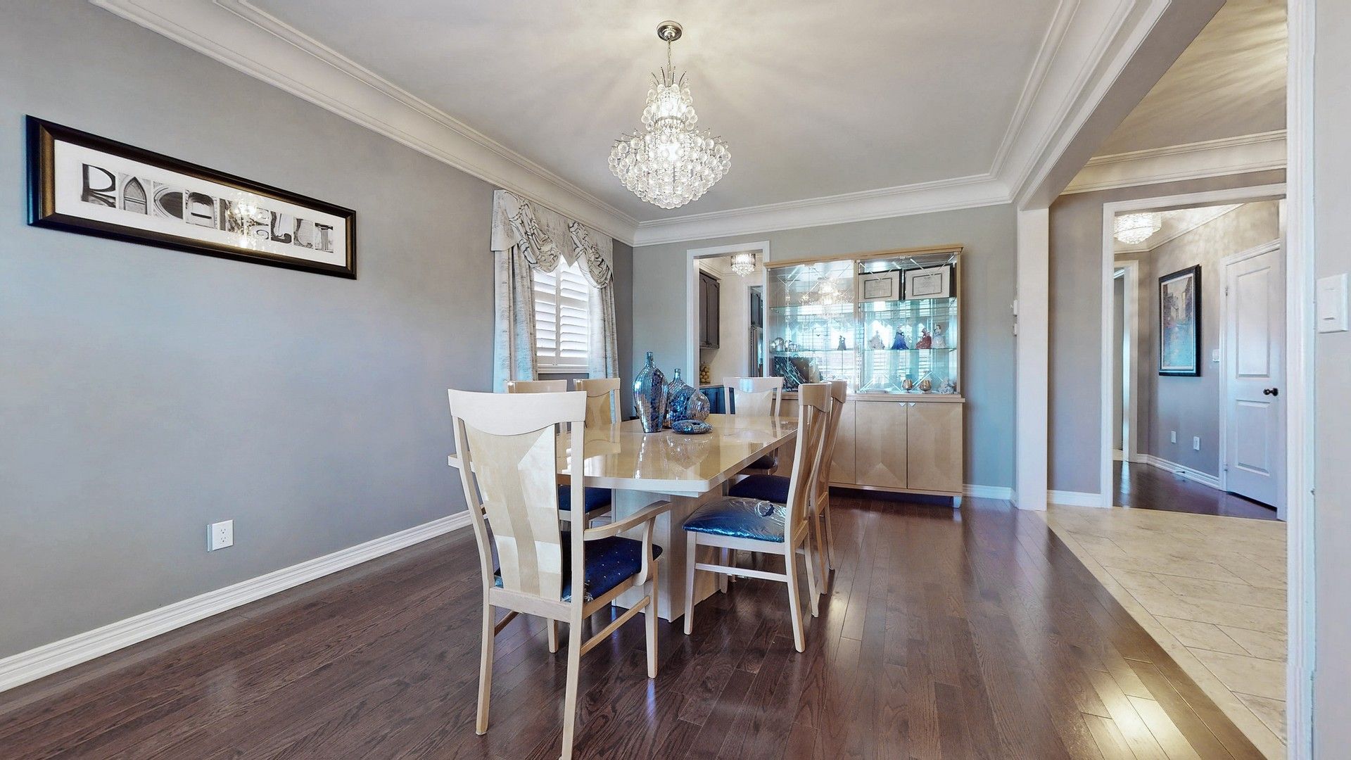 Hardwood Floor Combined W/Dining Crown Moulding