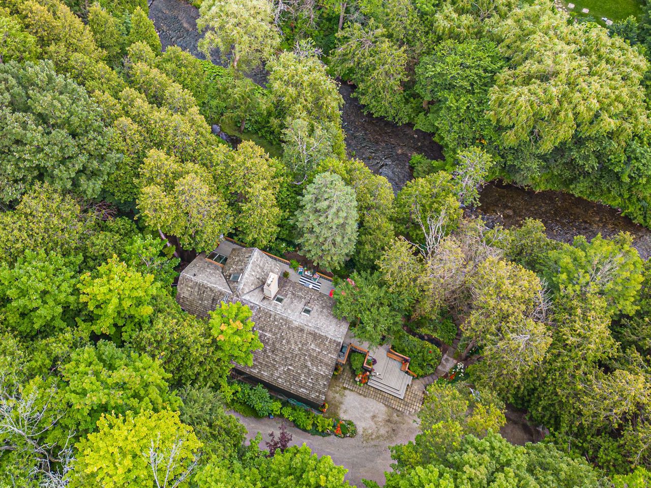 Credit River Cottage, Belfountain. Very private 3 bedroom riverfront cottage with no public access. An entertainers oasis, wood burning fireplaces, entire upper floor is the primary suite. A true treetop creative oasis. Priceless river frontage. A true escape from the city yet only a minutes walk to the centre of the village to grab your coffee!! One minute to Caledon Ski, Fishing and Hunt Club.
