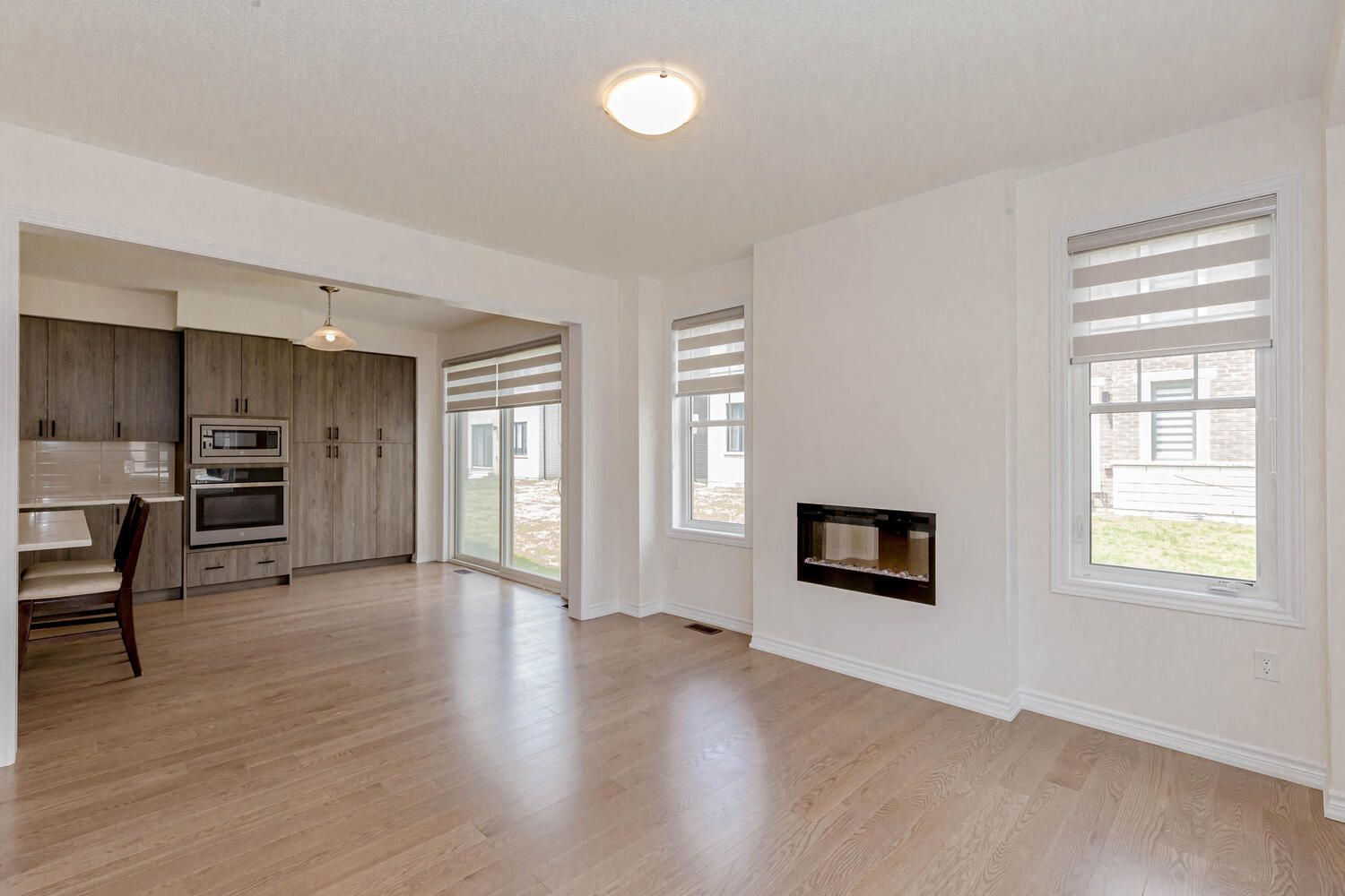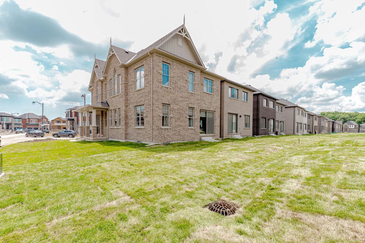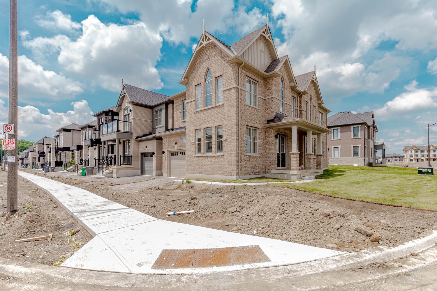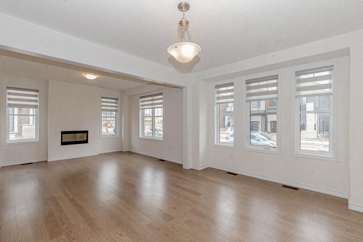 Welcome To Your New Beautiful 2600+ sqft Corner Detached Home With 4 Spacious BR/3.5 WR & 2nd Floor Laundry. Huge Master BR with B/I Closet & 5 Pc Ensuite. This House Features Separate Living Rm, Family Rm & Bonus Den. Other Features Include Electric Fireplace, Upgraded Hardwood Throughout & Oak Staircase. Tastefully Decorated Modern Kitchen With Extended Quartz Island, Backsplash & Built-In Appliances. Extra High Large Windows For Natural Sunlight And 3 Pc Rough-Ins In Bsmnt, 9 ft ceilings of main and 2nd floor.BuiltIn Designer Ovens, Fridge, Dishwasher & Hood Fan. Induction Cooktop, White Washer And Dryer In Laundry, Hot Water Tank Rental.