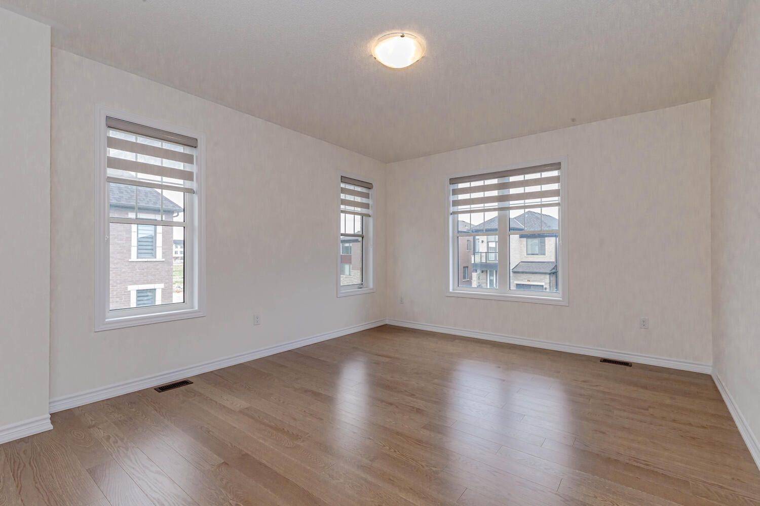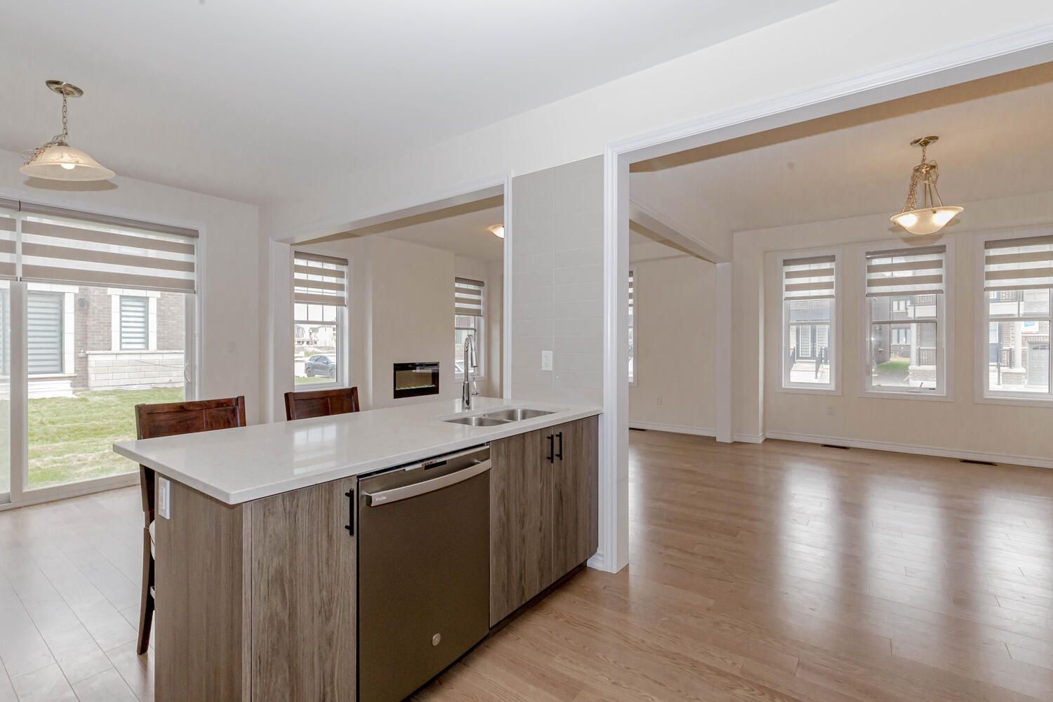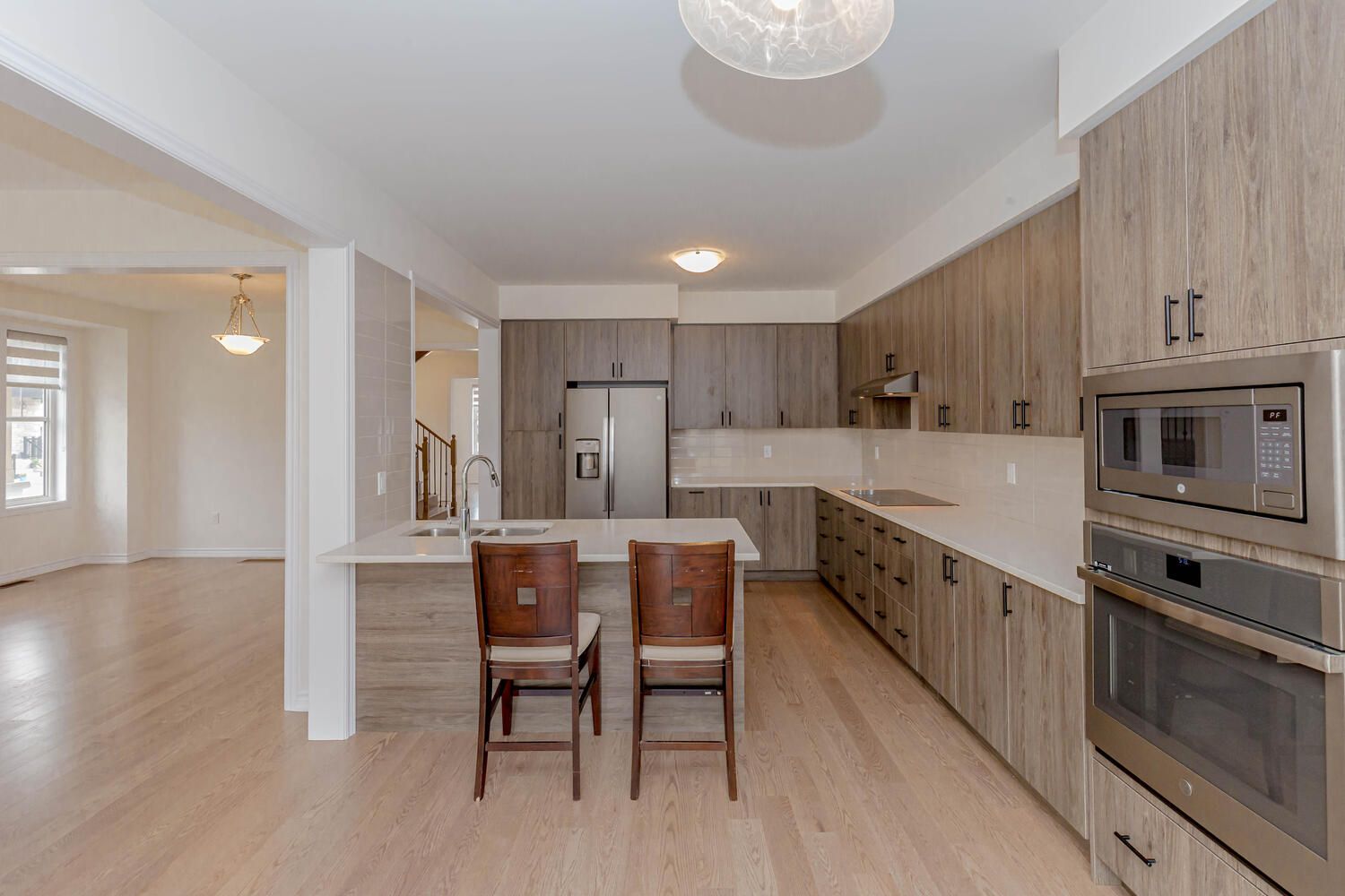 Welcome To Your New Beautiful 2600+ sqft Corner Detached Home With 4 Spacious BR/3.5 WR & 2nd Floor Laundry. Huge Master BR with B/I Closet & 5 Pc Ensuite. This House Features Separate Living Rm, Family Rm & Bonus Den. Other Features Include Electric Fireplace, Upgraded Hardwood Throughout & Oak Staircase. Tastefully Decorated Modern Kitchen With Extended Quartz Island, Backsplash & Built-In Appliances. Extra High Large Windows For Natural Sunlight And 3 Pc Rough-Ins In Bsmnt, 9 ft ceilings of main and 2nd floor.BuiltIn Designer Ovens, Fridge, Dishwasher & Hood Fan. Induction Cooktop, White Washer And Dryer In Laundry, Hot Water Tank Rental.
