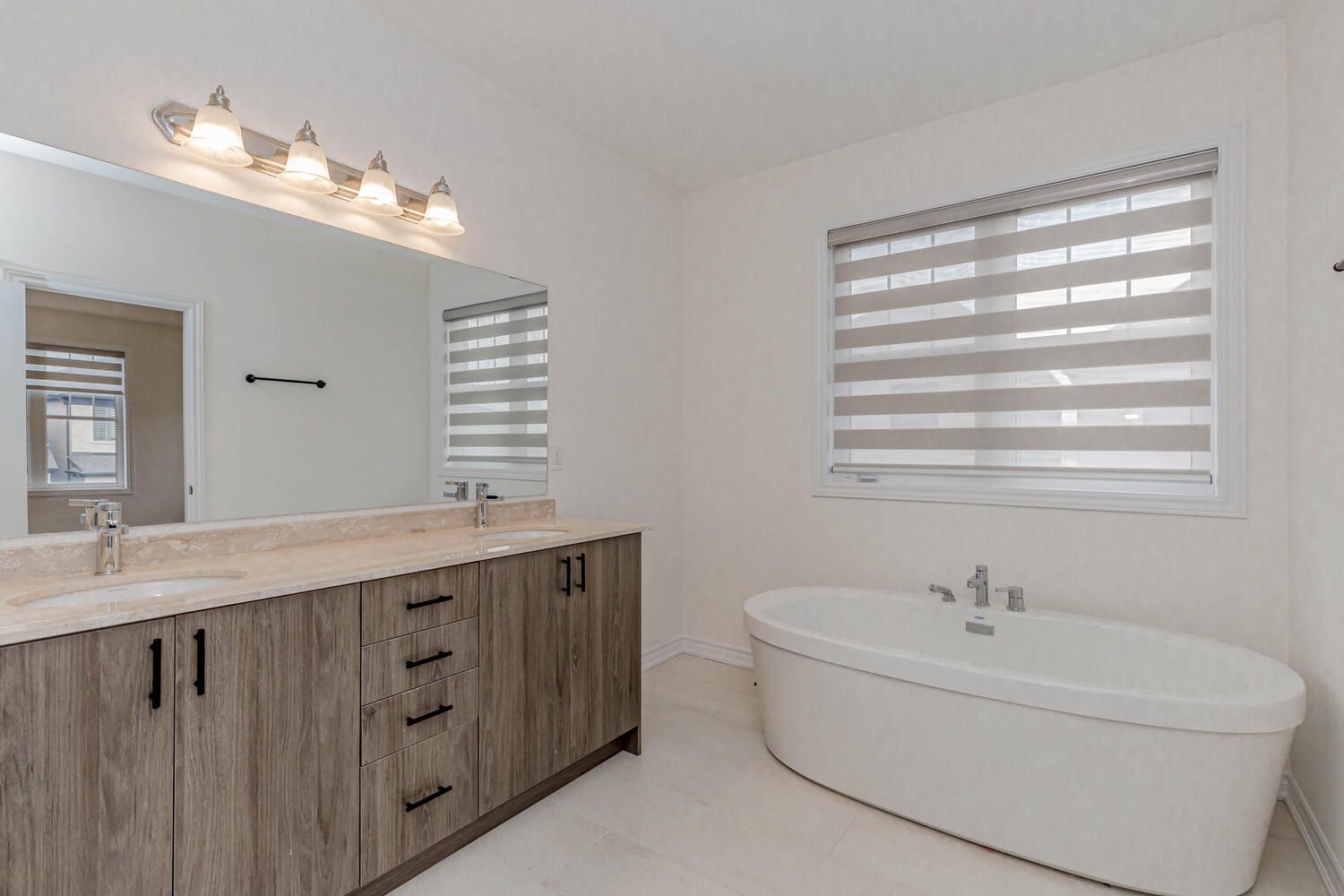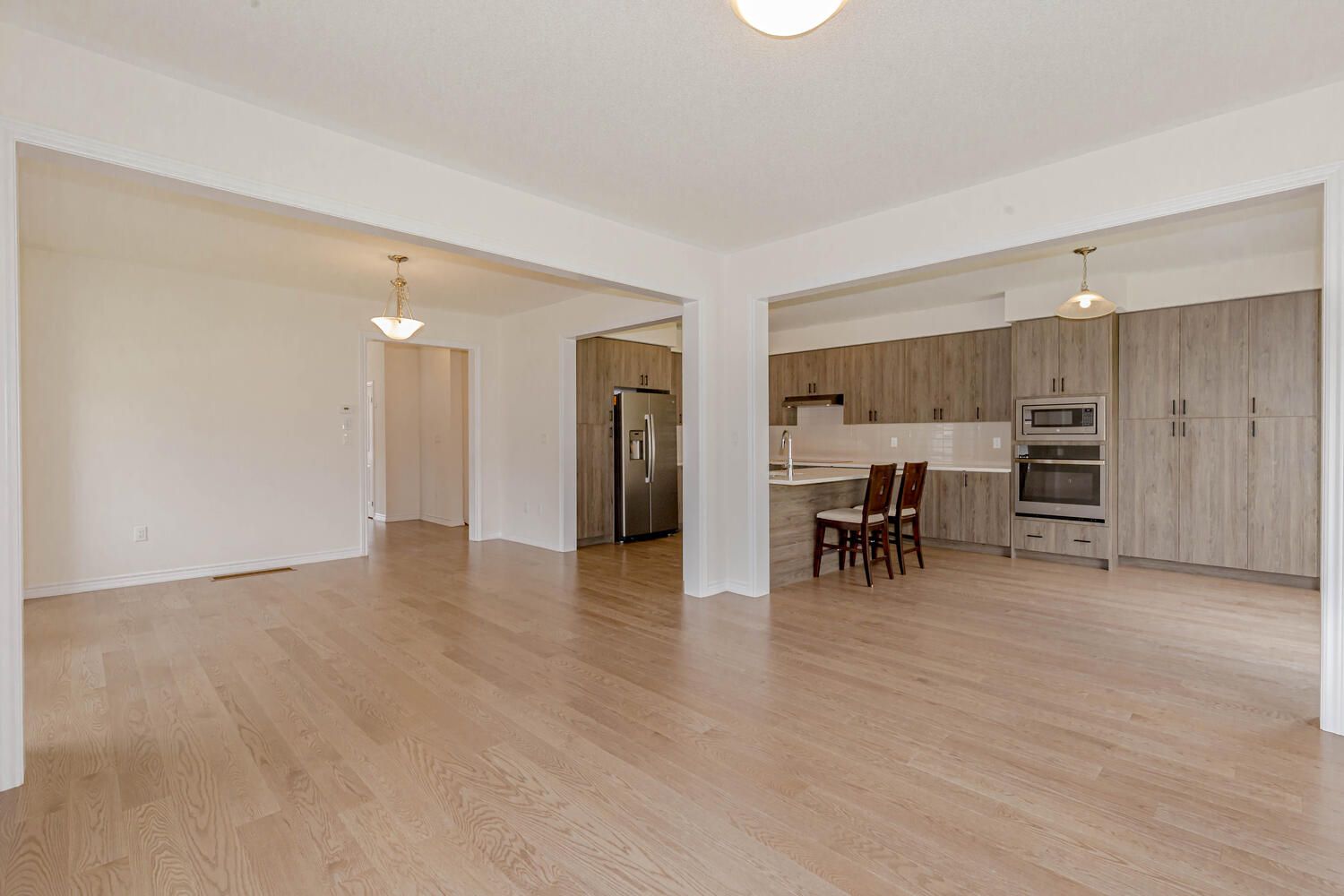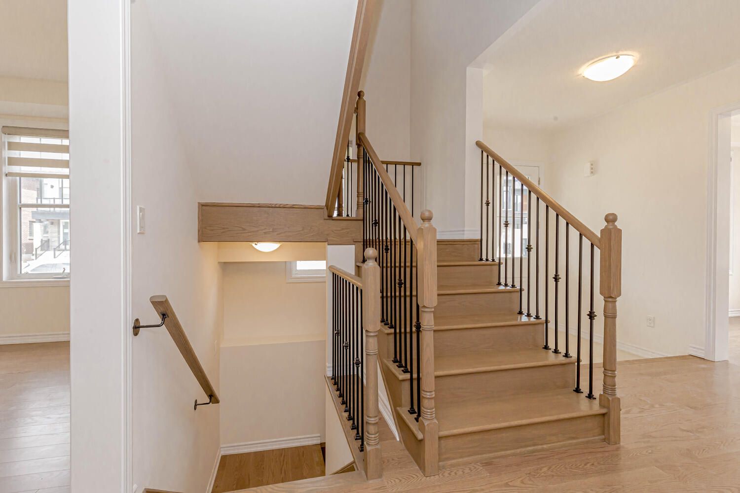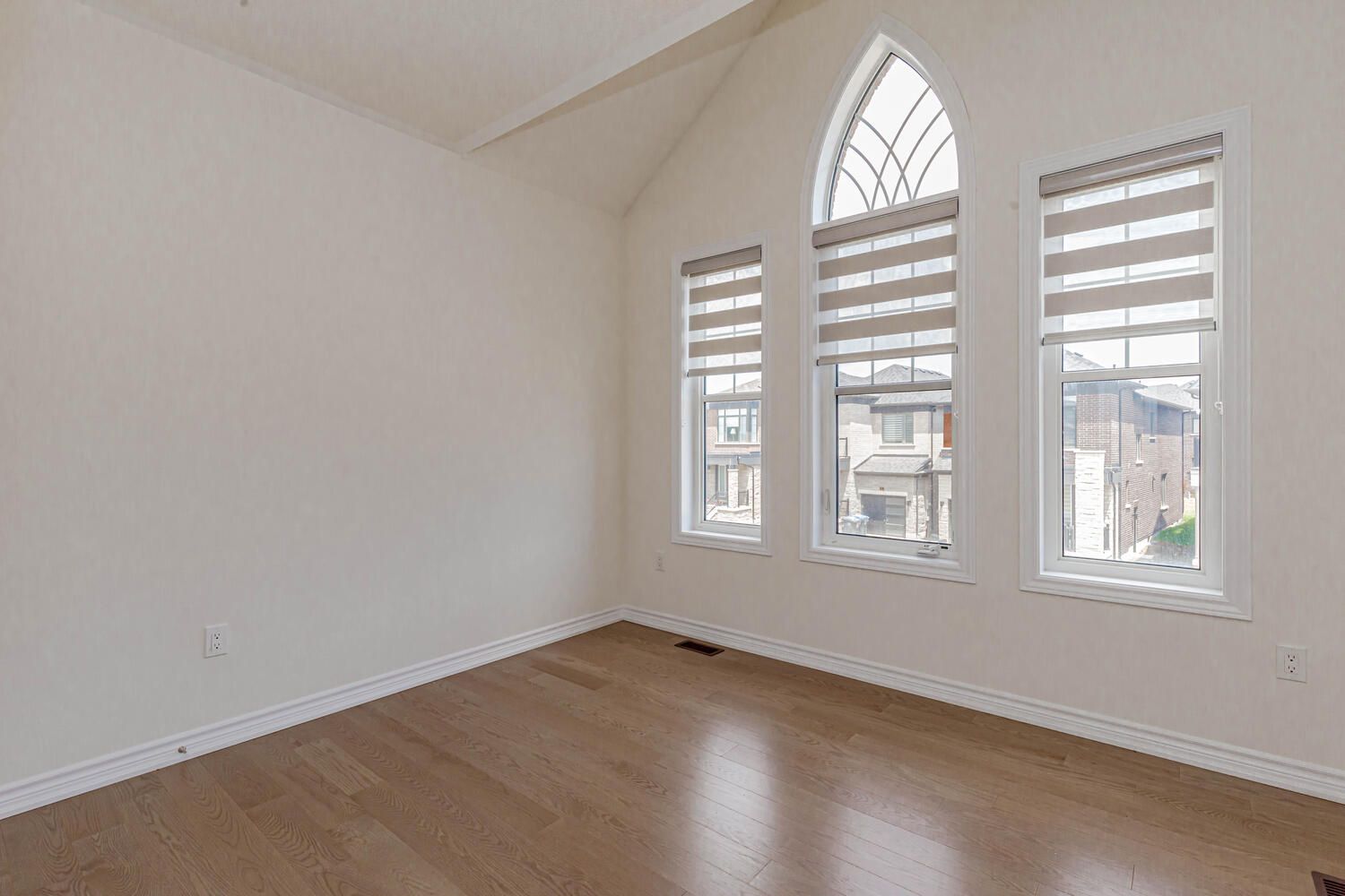 Welcome To Your New Beautiful 2600+ sqft Corner Detached Home With 4 Spacious BR/3.5 WR & 2nd Floor Laundry. Huge Master BR with B/I Closet & 5 Pc Ensuite. This House Features Separate Living Rm, Family Rm & Bonus Den. Other Features Include Electric Fireplace, Upgraded Hardwood Throughout & Oak Staircase. Tastefully Decorated Modern Kitchen With Extended Quartz Island, Backsplash & Built-In Appliances. Extra High Large Windows For Natural Sunlight And 3 Pc Rough-Ins In Bsmnt, 9 ft ceilings of main and 2nd floor.BuiltIn Designer Ovens, Fridge, Dishwasher & Hood Fan. Induction Cooktop, White Washer And Dryer In Laundry, Hot Water Tank Rental.