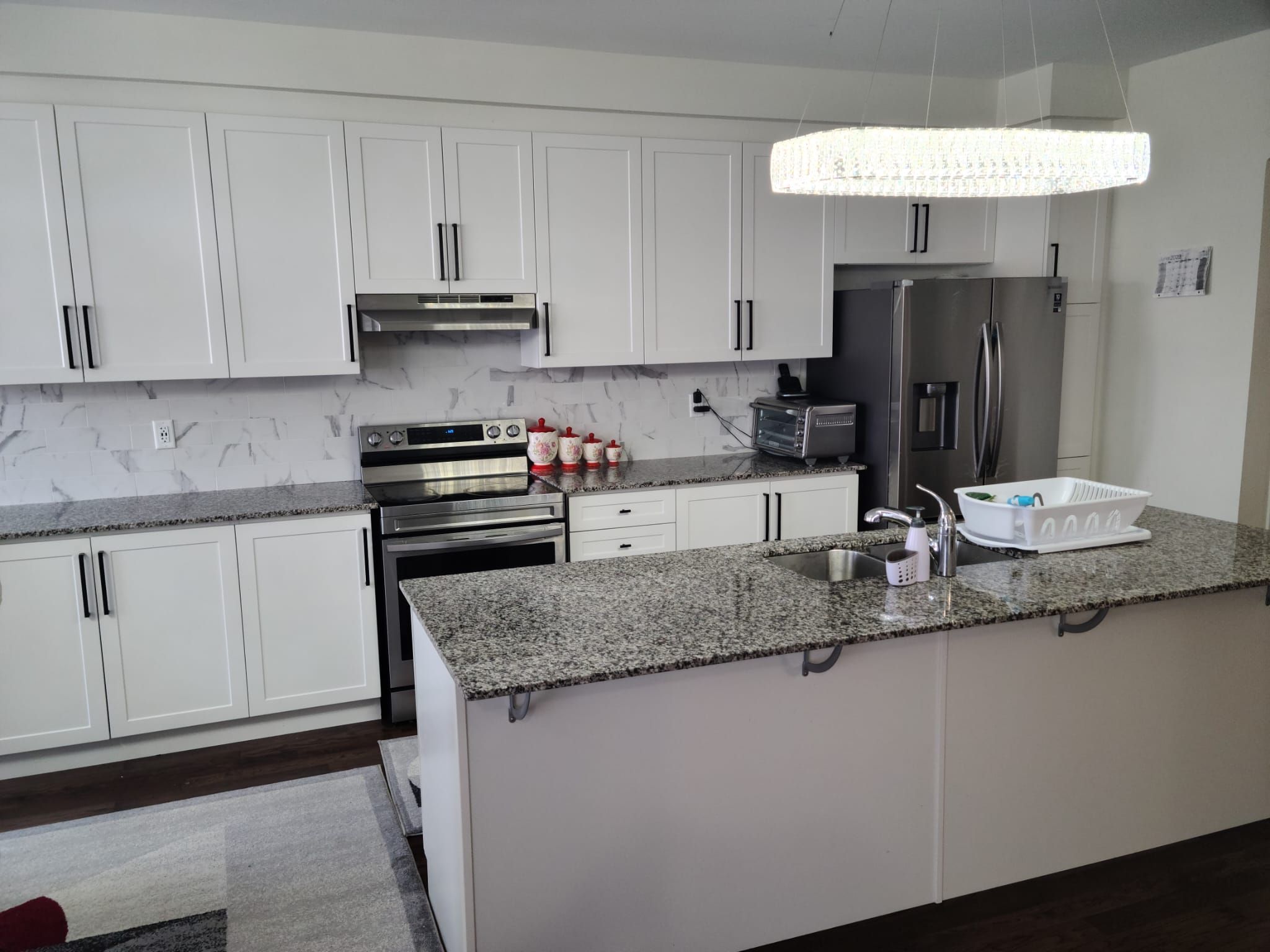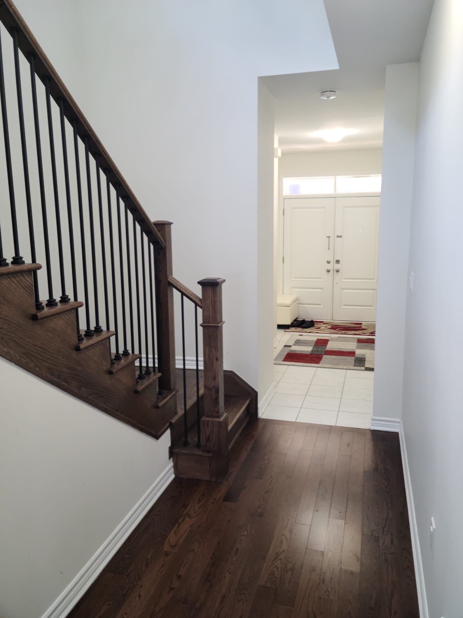 Excellent Location Beautiful 5 Bedrooms/ 4 Washrooms( Main + upper floors for rent, with 9 feet ceiling an main and second floor . Spacious great room at main level. Hardwood at main level with open layout kitchen with stainless steels appliances with quartz counter top, double door entry Comes With 2 Parking In The Garage And 1 Parking Outside. Legal Basement Apartment Rented Out Separately. Separate Laundry at 2 and floor No House Behind. Close to all amenities.Stainless steal appliances, front loaded washer, dryer Tenant has to pay 70% utilizes, 2 parking in garage and one outside.**Aaa Tenants Only**Non-Smoking /No Pets. Tennent has to take tenant Liability Insurance.