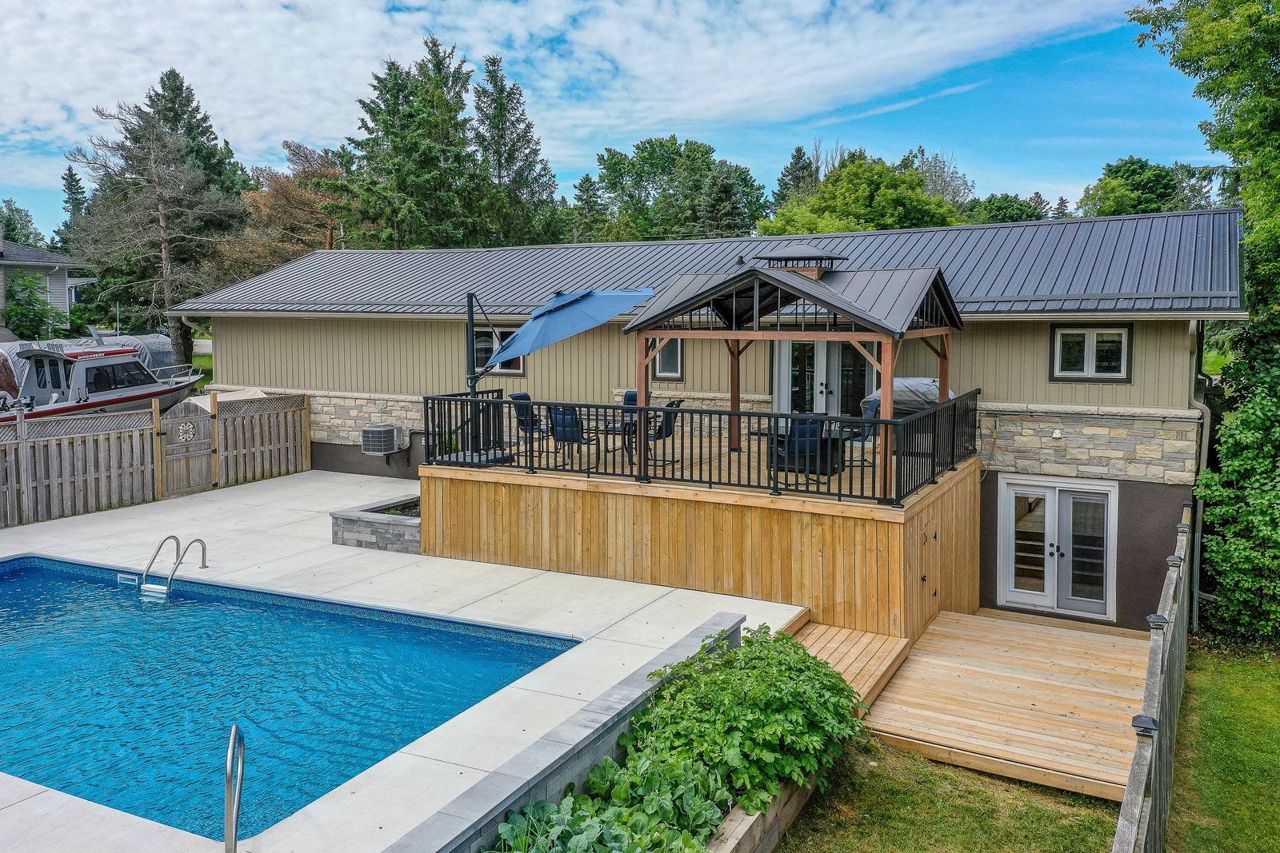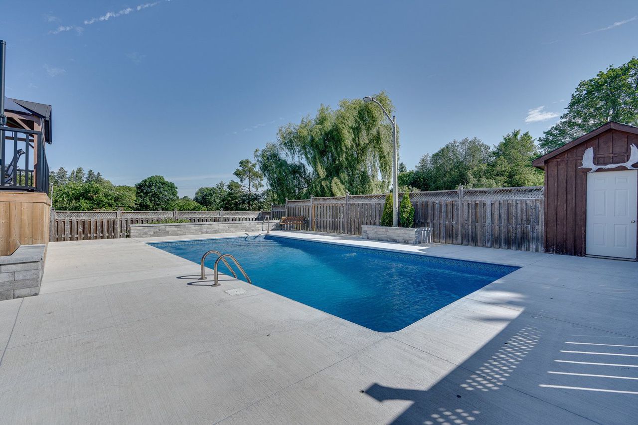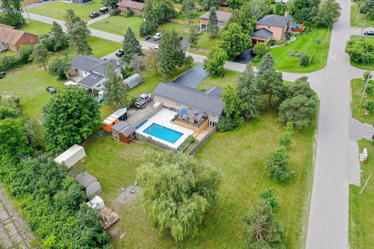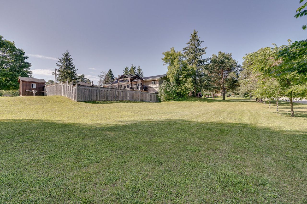 If you are looking for a home that combines the charm of country living with the convenience of in town amenities, look no further than this raised bungalow on a double lot which is 135 x 244 feet with natural gas & municipal water. This property features a large driveway that can accommodate a boat, RV, car trailer or just plenty of parking for the family. The inground pool with cement surround and updated deck with gazebo overlooking the pool are just fabulous for both relaxing and entertaining. The stunning exterior has been updated with modern armour stone and vertical siding. The steel roof, updated windows, updated doors and walkout basement with roughed in plumbing for a kitchen add to the value and potential of this home. Whether you want to enjoy the spacious backyard, have guests in the pool, or create a separate living space in the basement, this home has it all. This is a rare opportunity that combines the best of both worlds.Railroad tracks at the back of the property are decommissioned. Trains DO NOT use these tracks.