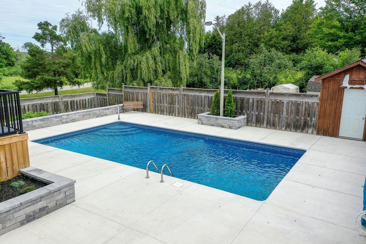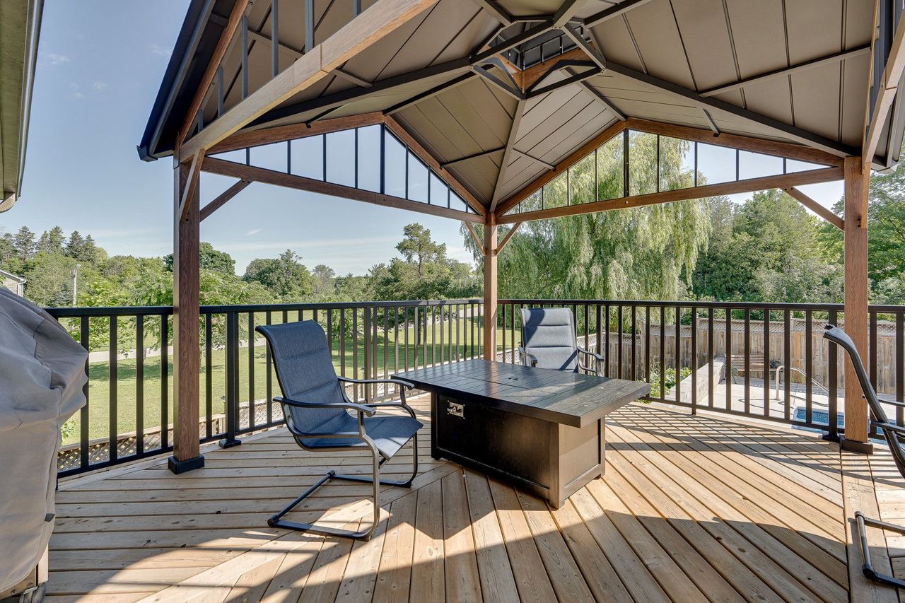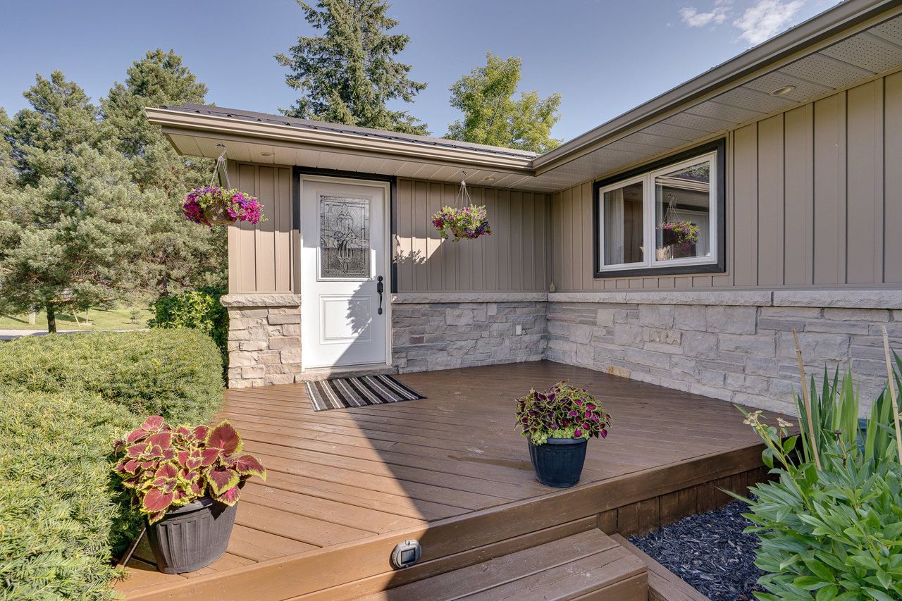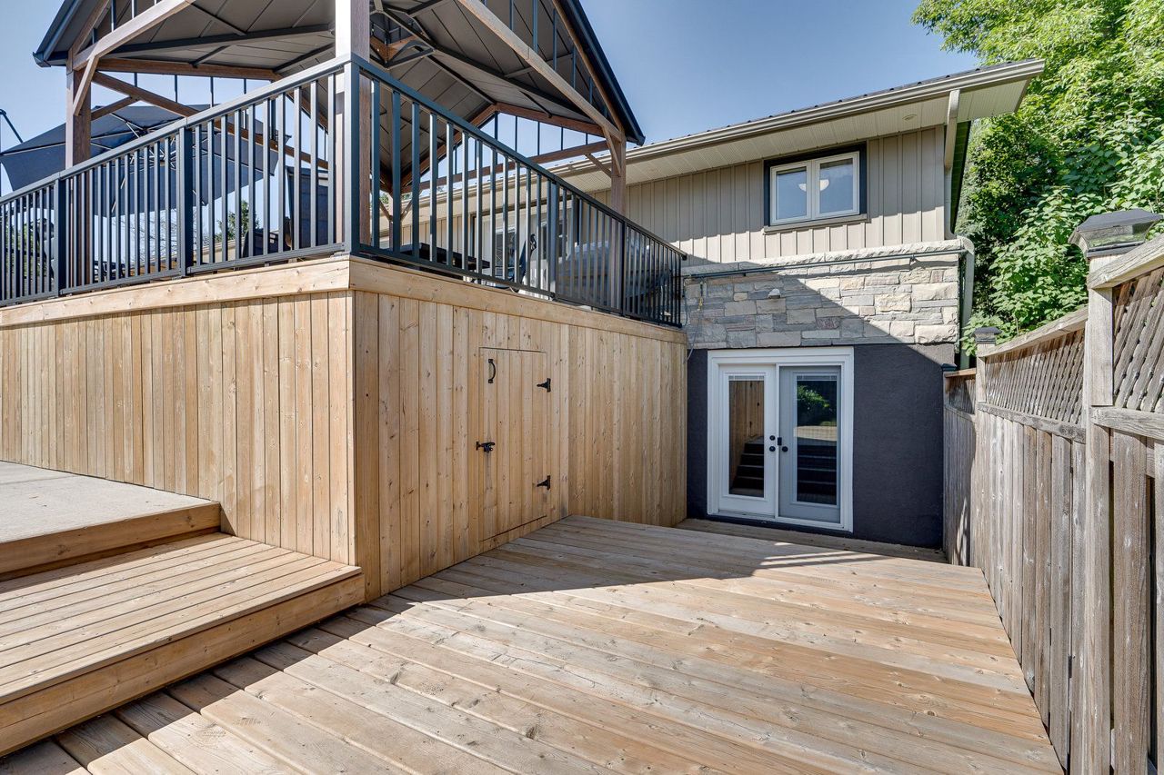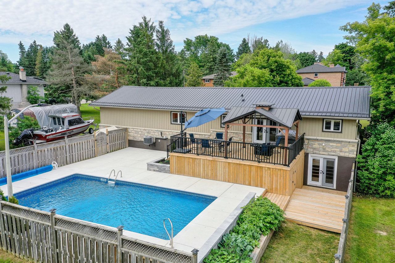 If you are looking for a home that combines the charm of country living with the convenience of in town amenities, look no further than this raised bungalow on a double lot which is 135 x 244 feet with natural gas & municipal water. This property features a large driveway that can accommodate a boat, RV, car trailer or just plenty of parking for the family. The inground pool with cement surround and updated deck with gazebo overlooking the pool are just fabulous for both relaxing and entertaining. The stunning exterior has been updated with modern armour stone and vertical siding. The steel roof, updated windows, updated doors and walkout basement with roughed in plumbing for a kitchen add to the value and potential of this home. Whether you want to enjoy the spacious backyard, have guests in the pool, or create a separate living space in the basement, this home has it all. This is a rare opportunity that combines the best of both worlds.Railroad tracks at the back of the property are decommissioned. Trains DO NOT use these tracks.