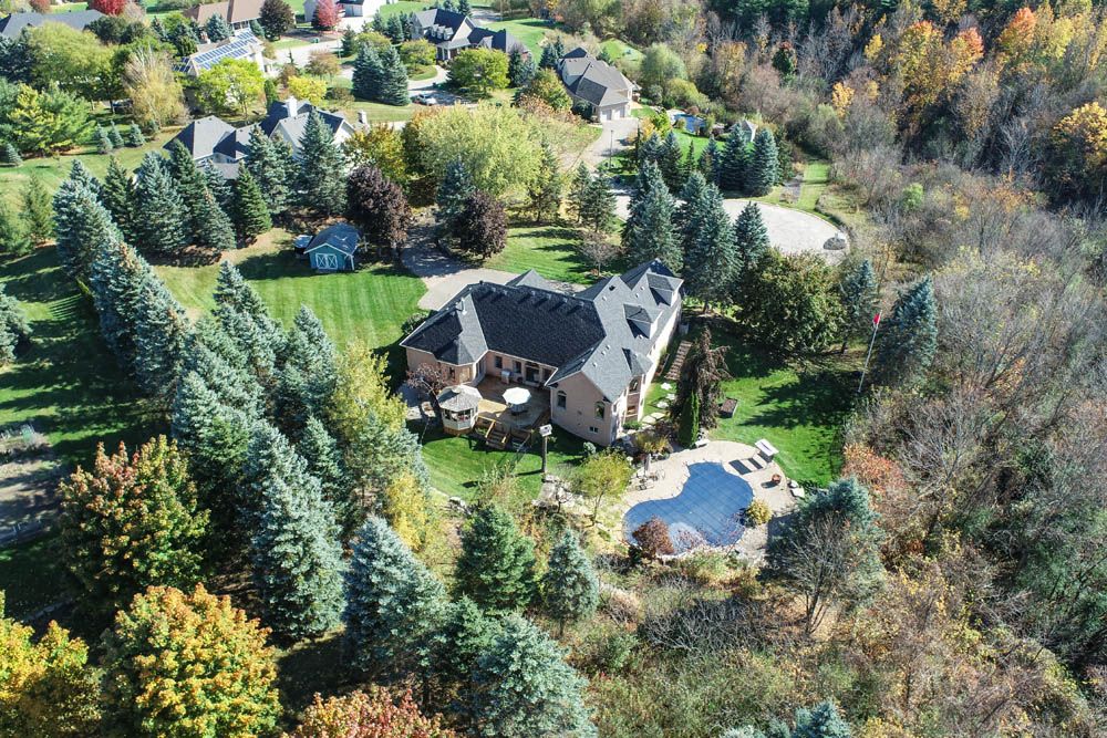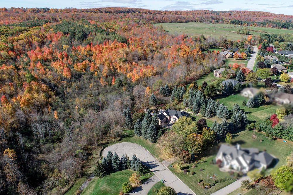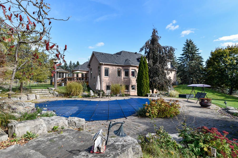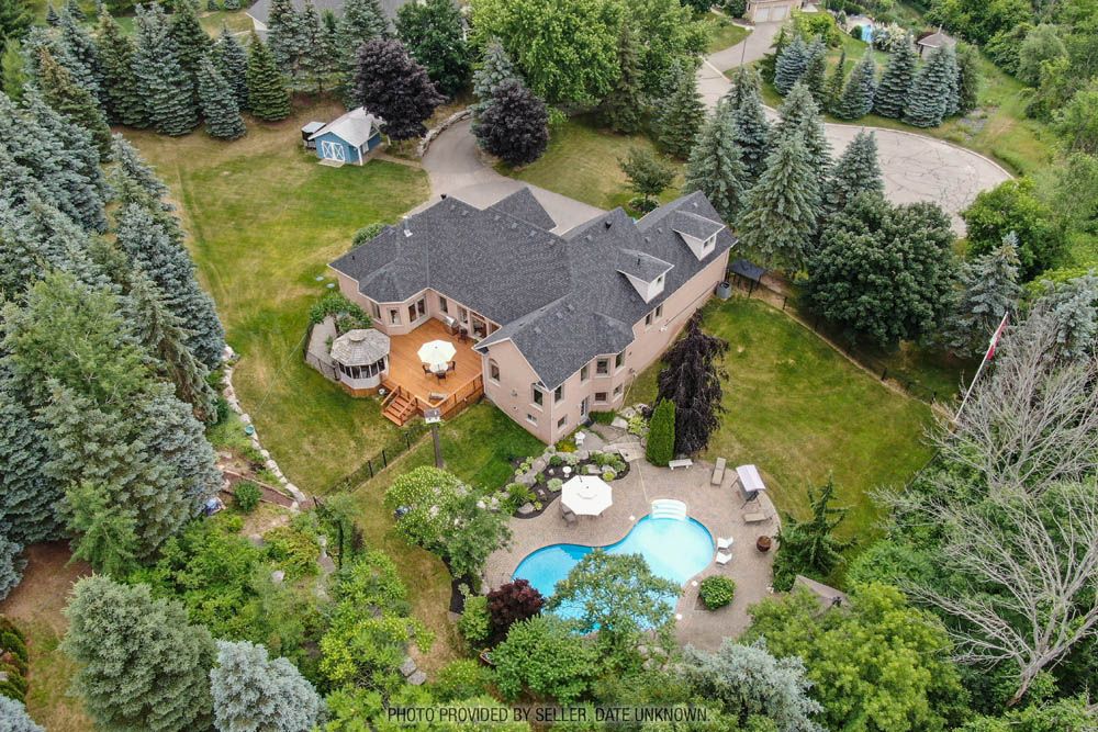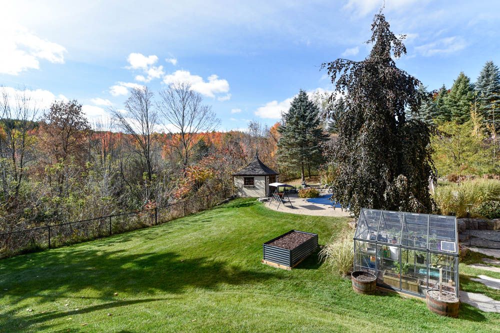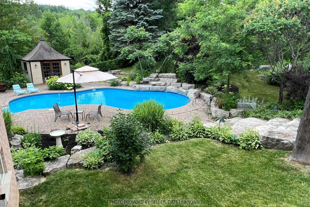 At the end of a quiet court, on a mature park-like 1.27-acre lot w/ towering trees & enchanting views of the forest behind is this meticulously maintained bungaloft offering peace & tranquility, w/ a fin walk/o basement, backyard oasis w/ i/ground salt-water pool, perennial gardens, greenhouse & views from every window. Hickory & Oak Hrdwd flrs on Main Level. Living w/ vaulted ceiling & large pic window. Elegant Kitchen w/ marble b/splash, SS Appliances, C-island w/ b-bar, farmers sink & breakfast area with views over the b/yard. Family has vaulted ceiling & walk/o to large deck w/ screened-in Gazebo. Primary w/ gas fireplace & Sitting area, 4-pce ensuite w/ glass shower, soaker tub & quartz c-tops. Beds 2 & 3 share jack-&-jill 5-piece bath. 4th bedrm in loft w/ 4-pce ensuite & walk-in closet. Bsmt features games area & den. Rec rm has wet bar, gas fireplace and walk/o to yard. Large unfin area in bsmt awaiting potential! An incredibly rare offering, in a family-oriented community.Shed w/ Hydro. High-speed internet. In the Heart of Caledon Near Bruce Trail & Caledon Trailway, Cideries, Breweries, Ski Club, Country Club, Devil’s Pulpit & TPC Toronto at Osprey Valley. 30 Mins to Pearson Airport. 45 mins to Toronto.