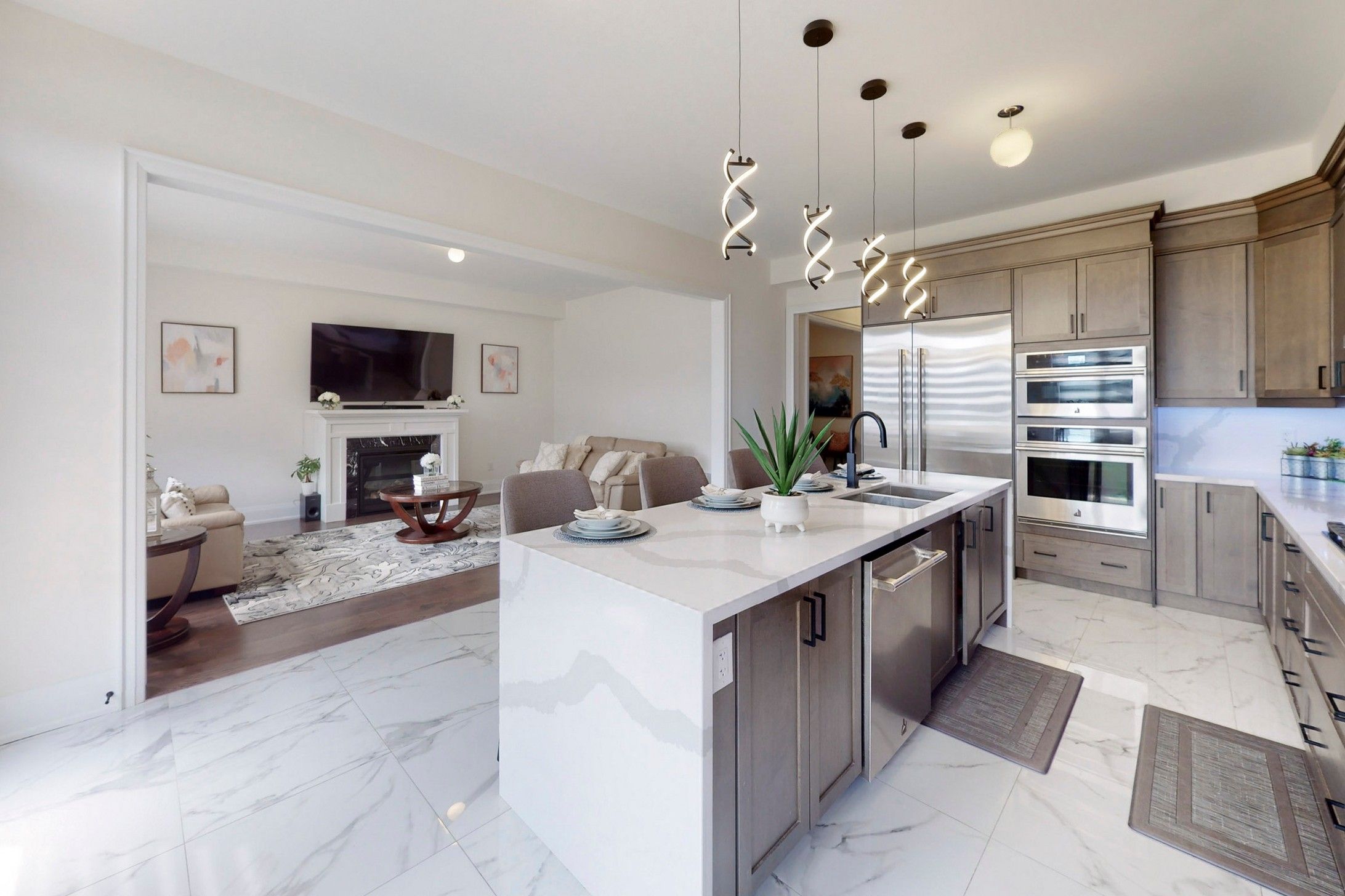 Quartz Counter Porcelain Floor B/I Appliances