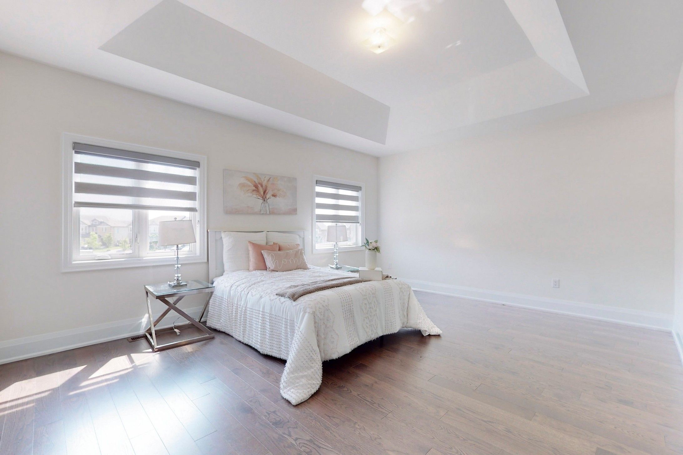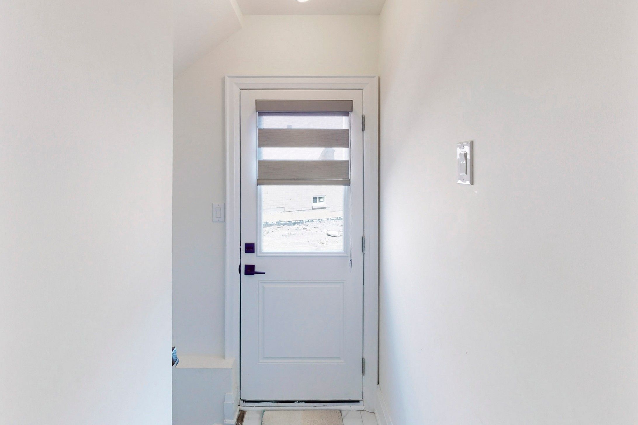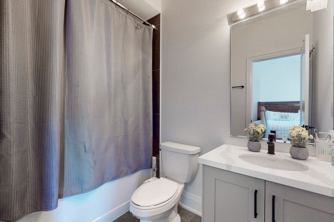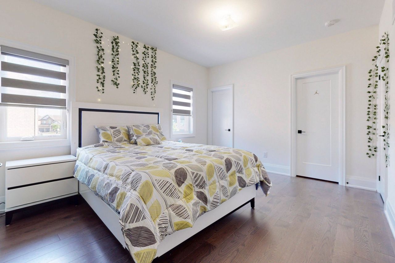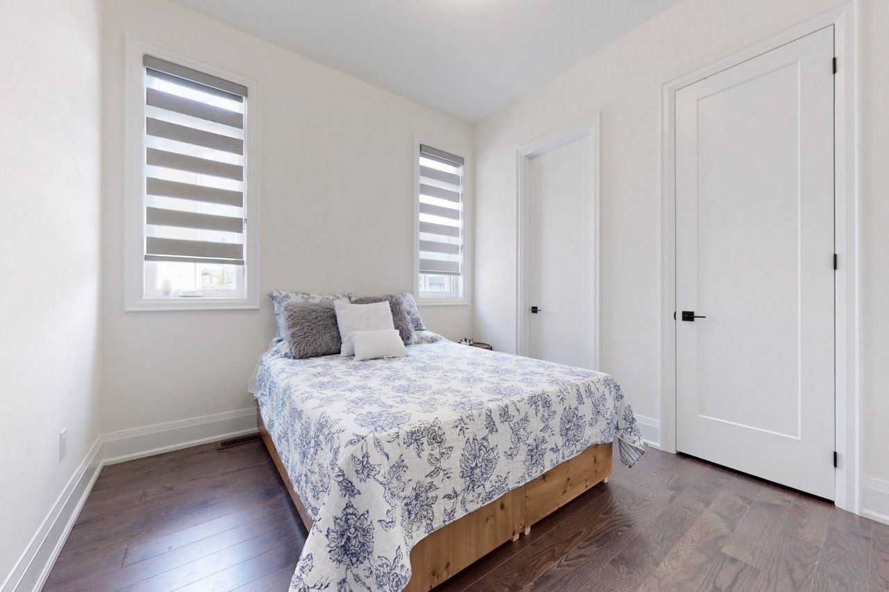 Primary bedroom. Builder provided side entrance to basement. Upgraded quartz countertops in all