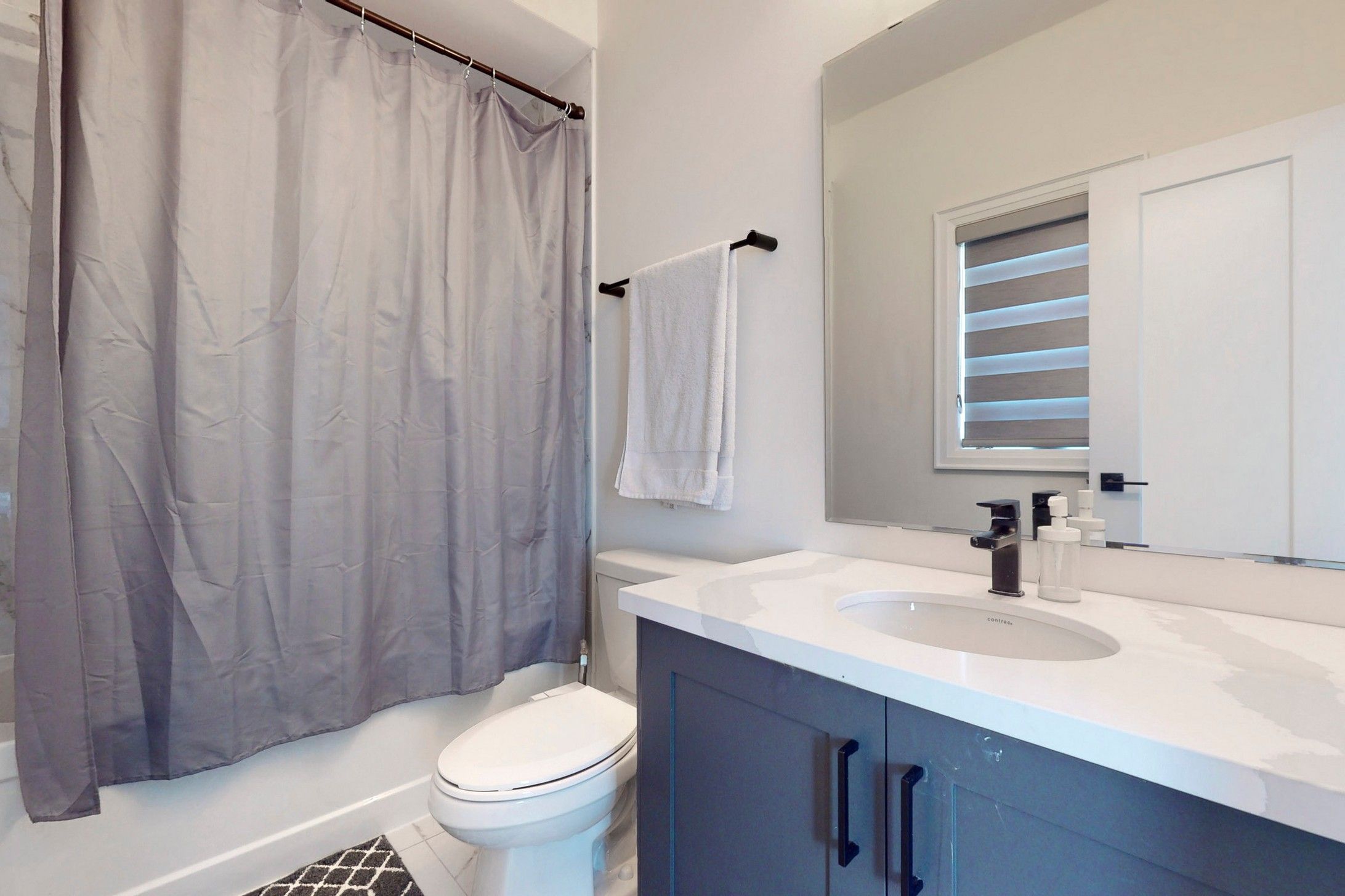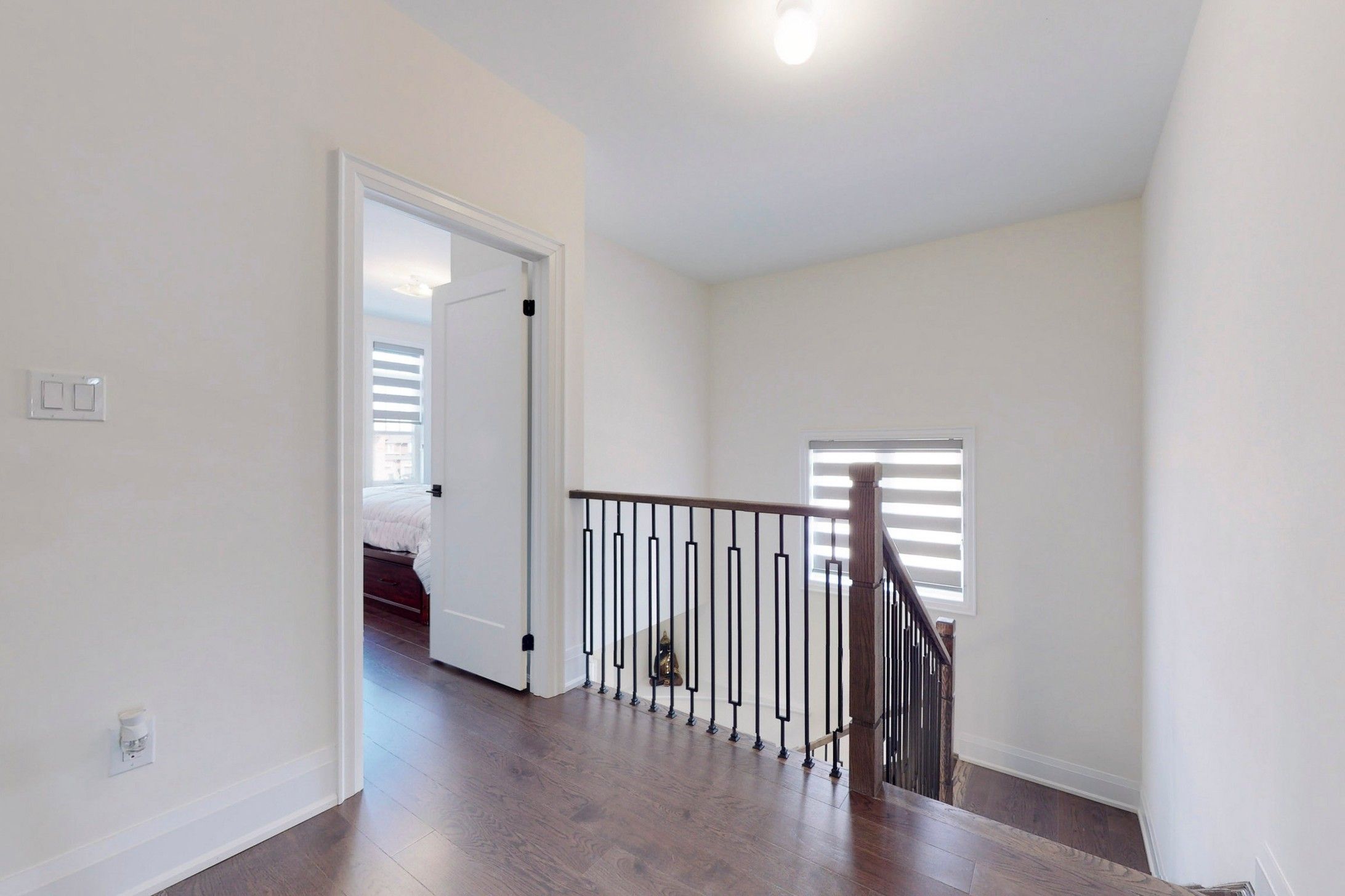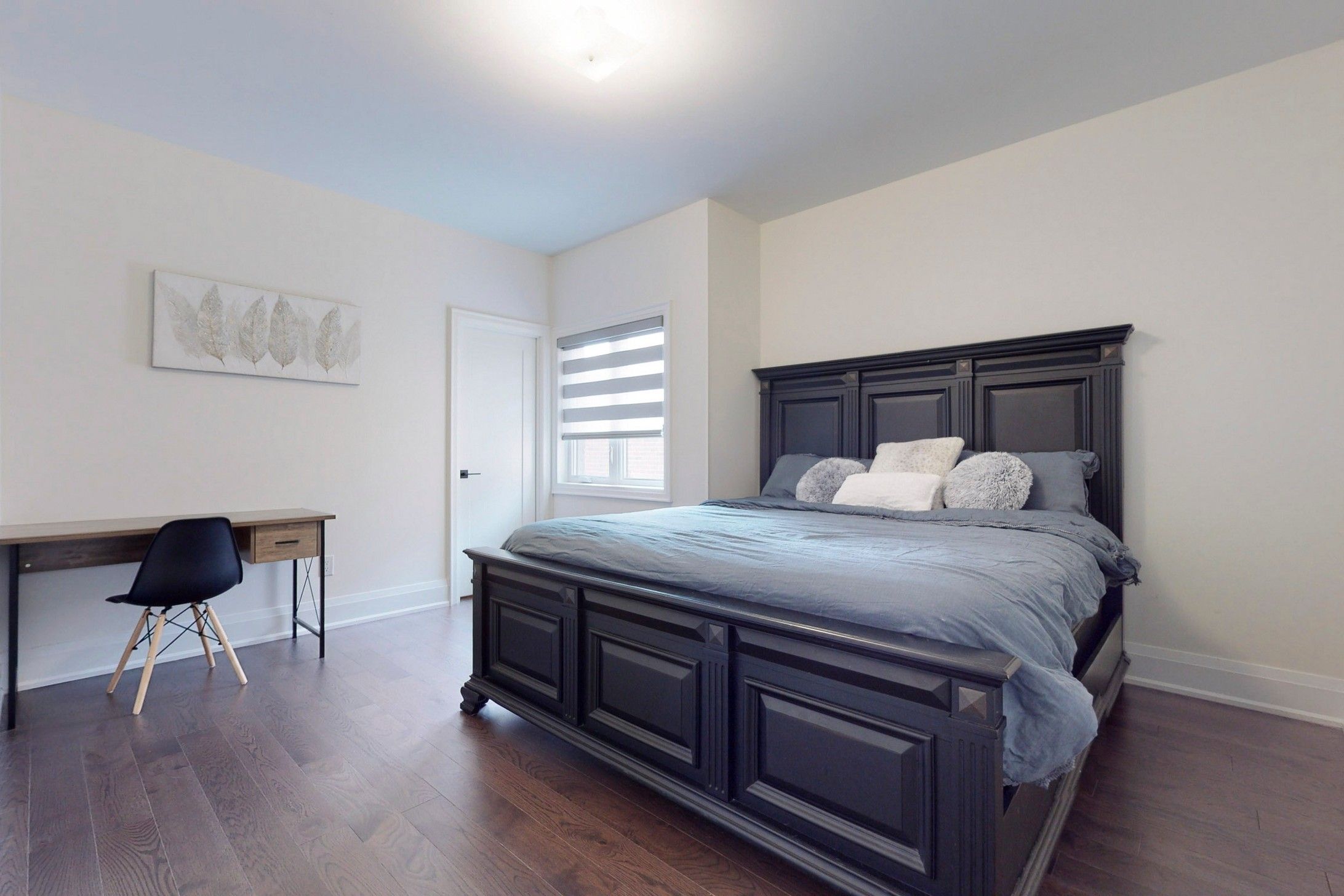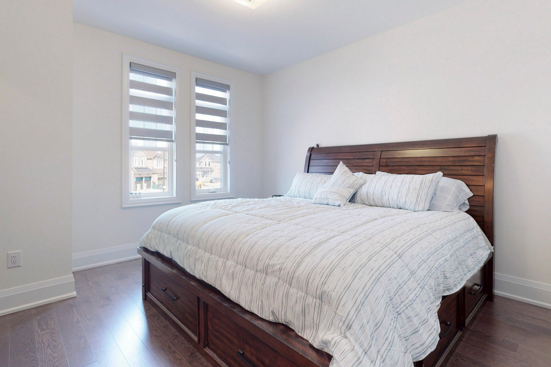 Primary bedroom. Builder provided side entrance to basement. Upgraded quartz countertops in all