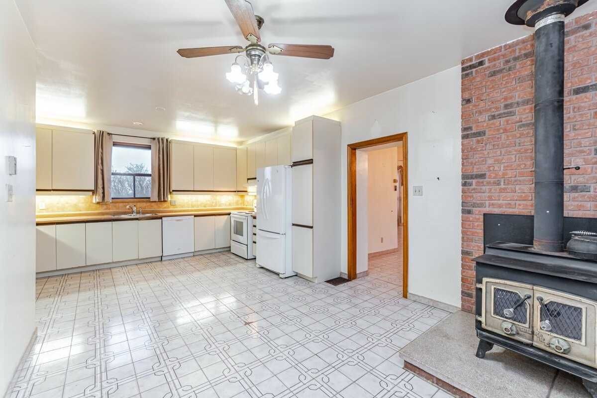 Great Investment Opportunity In A Rapidly Growing Community. This Almost 1 Acre Corner Property Site Is Located On The Southwest Corner Of King St. And Gore Rd At A Busy Intersection And Is Primely Located With Major Re-Development Nearby To Include Homes, Schools, Commercial, Retail As Well As A Proposed Go-Train Station. Property Includes A 3 Bdrm 2 Storey Charming Home. Property Is Fully Fenced. Utility Shed, Large Garage With Oversized Doors. Ample Parking And Storage Space. Future Development nearby.Fridge, Stove, Washer & Dryer.