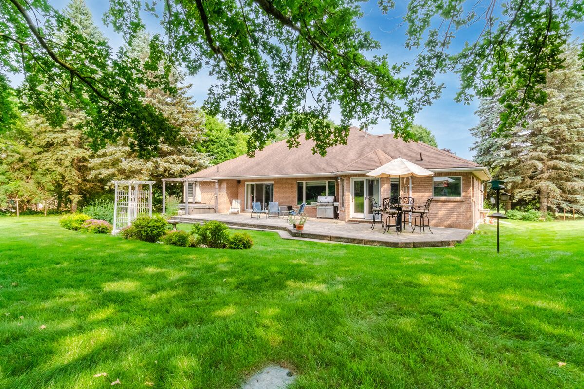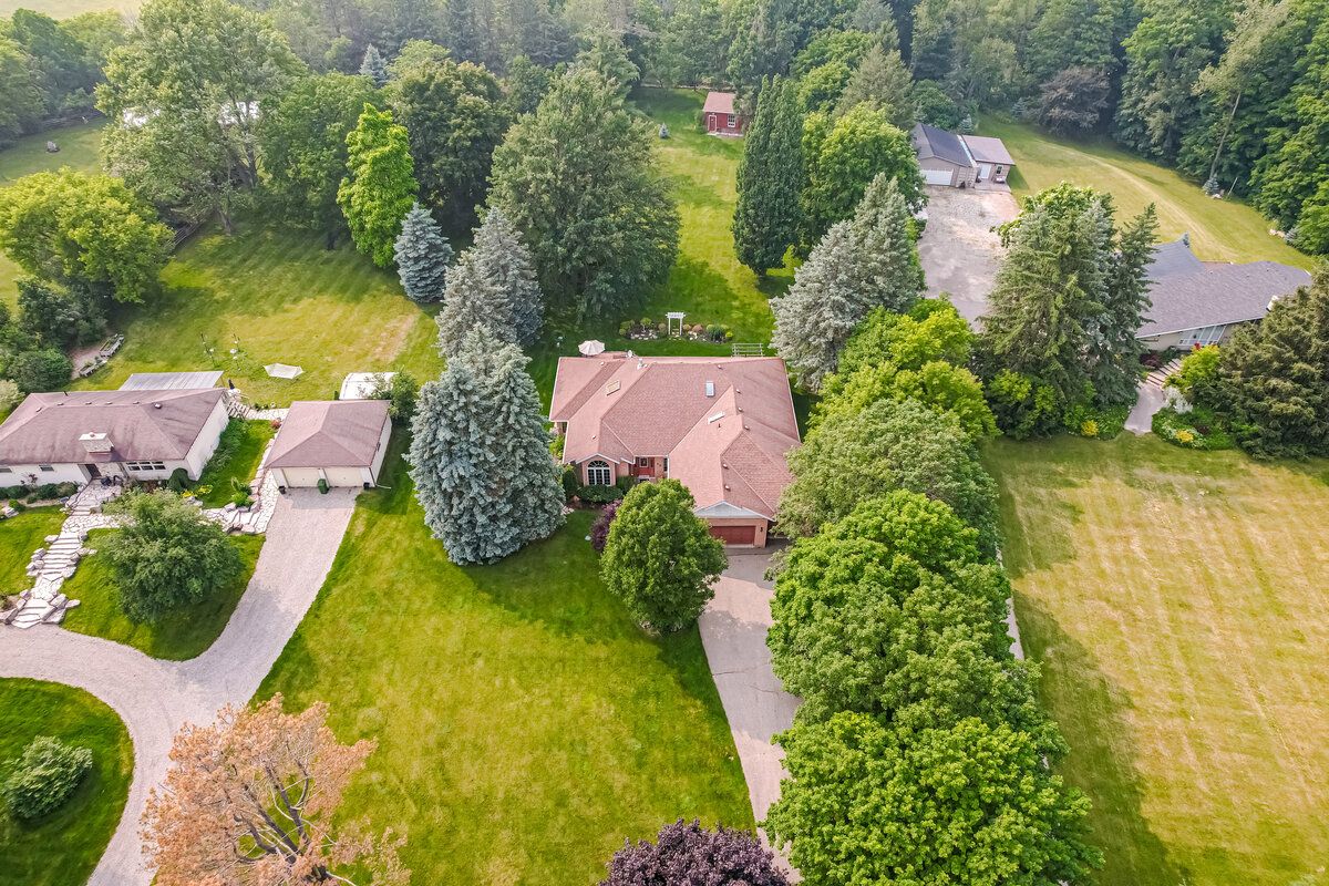 This meticulously maintained 2400+ Sq Ft bungalow is sitting on 1.2 Acres with a 3-car garage exudes exceptional curb appeal. Inside, you'll find a home that reflects the owners' pride of ownership meticulous attention to detail. Professionally upgraded, the interior offers a seamless flow from the inviting entrance throughout the entire space. With 3+1 bed, incl a primary bedroom with an 4 pc ensuite bath & walk-in closet, this home provides both comfort and convenience. The living areas strike a perfect balance between functionality and relaxation, complemented by recent updates such as the master bathroom & kitchen. A cozy ambiance is created by the presence of a gas fireplace, while the meticulously maintained rear yard offers a serene oasis for wildlife, relaxation, and enjoyment. Additionally, this home comes with pristine appliances, window coverings, and light fixtures, adding convenience and value for the lucky new homeowners.S/S fridge, stove, B/I microwave, B/I dishwasher. Washer & Dryer. Elfs & Window Coverings. 1000 Sq Ft Insulated Workshop Made with Concrete Block Wall & Floor, equipped with Hydro & Water. Hot Tub. Full Inground Irrigation System.
