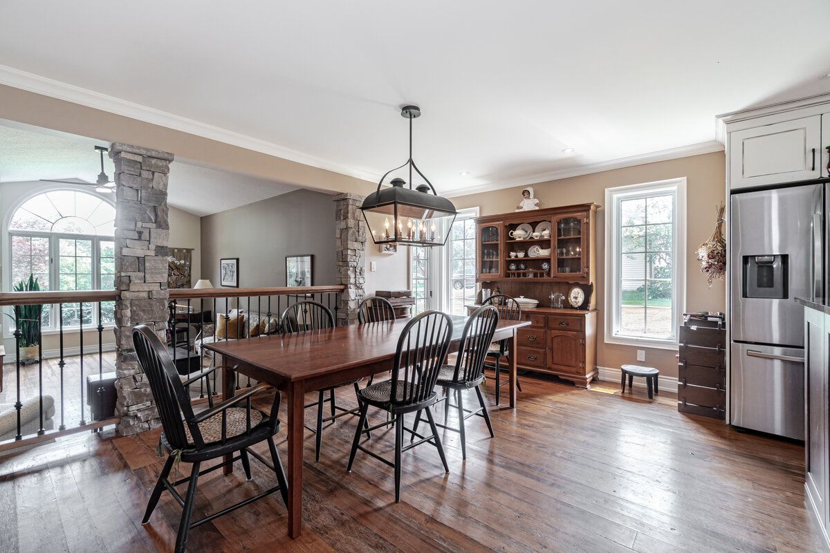 This meticulously maintained 2400+ Sq Ft bungalow is sitting on 1.2 Acres with a 3-car garage exudes exceptional curb appeal. Inside, you'll find a home that reflects the owners' pride of ownership meticulous attention to detail. Professionally upgraded, the interior offers a seamless flow from the inviting entrance throughout the entire space. With 3+1 bed, incl a primary bedroom with an 4 pc ensuite bath & walk-in closet, this home provides both comfort and convenience. The living areas strike a perfect balance between functionality and relaxation, complemented by recent updates such as the master bathroom & kitchen. A cozy ambiance is created by the presence of a gas fireplace, while the meticulously maintained rear yard offers a serene oasis for wildlife, relaxation, and enjoyment. Additionally, this home comes with pristine appliances, window coverings, and light fixtures, adding convenience and value for the lucky new homeowners.S/S fridge, stove, B/I microwave, B/I dishwasher. Washer & Dryer. Elfs & Window Coverings. 1000 Sq Ft Insulated Workshop Made with Concrete Block Wall & Floor, equipped with Hydro & Water. Hot Tub. Full Inground Irrigation System.
