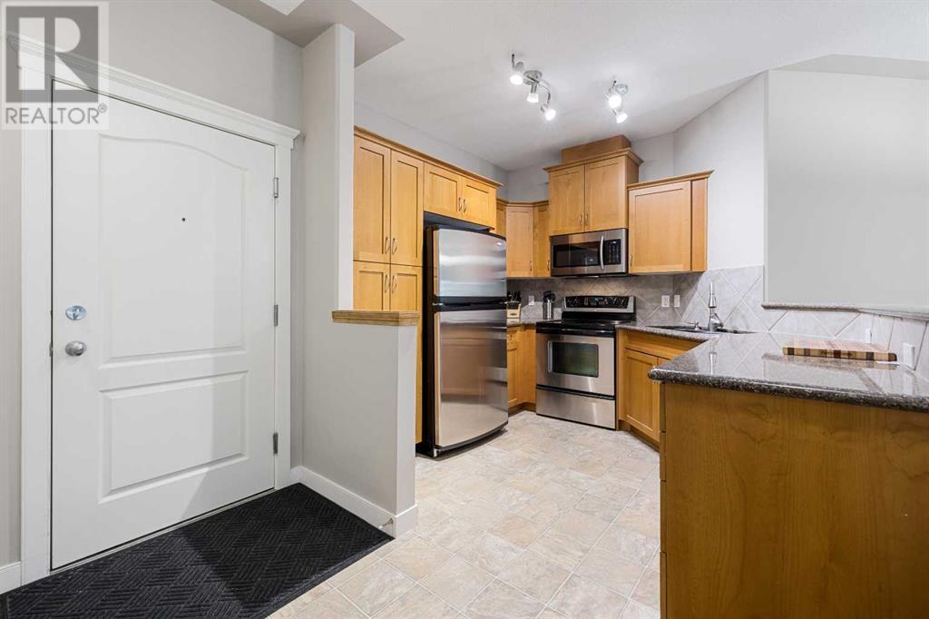 Price Reduced !! This 2 bedroom 2 bath 1032 sq ft apartment backs on to the trees in this highly sought after condo complex. Included is a titled tandem parking stall with parking for two cars. The Wedgewoods is a well run concrete built set of buildings nestled in the trees next to the Elbow River in Discovery Ridge. A hikers paradise, you are 3 minutes from the Elbow River pathway system. Updates include engineered Acacia floors, granite countertops, newer dishwasher, microwave, washer and dryer and kitchen sink. Although on the main floor, this spacious 2 bedroom is higher than ground level with a very private outdoor deck. Discovery Ridge is a quiet, secluded area which is less 15 minutes to downtown with easy access to shopping, schools and city transit. Mount Royal University and the Rockyview Hospital are less than 10 minutes from your new home. The soon to be completed Calgary Ring Road with give you easy access to all quadrants of the city. The Discovery Ridge community area is located right behind the Wedgewoods with a children’s playground, tennis courts, soccer fields, skating/hockey rink, basketball court – all maintained by the Discovery Ridge Community Association. (id:22211)