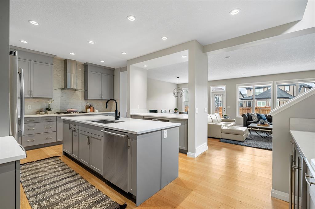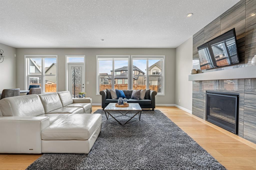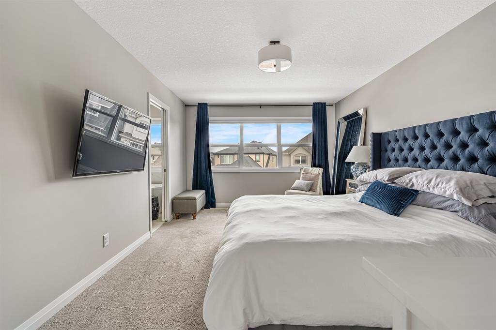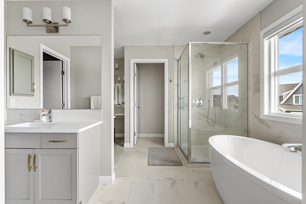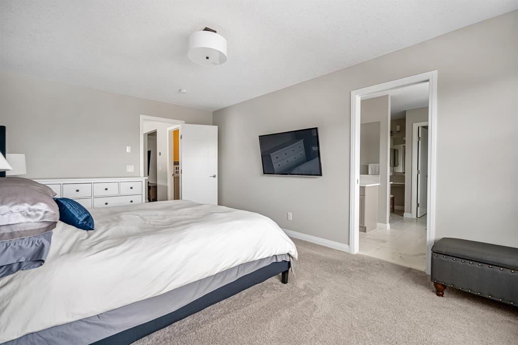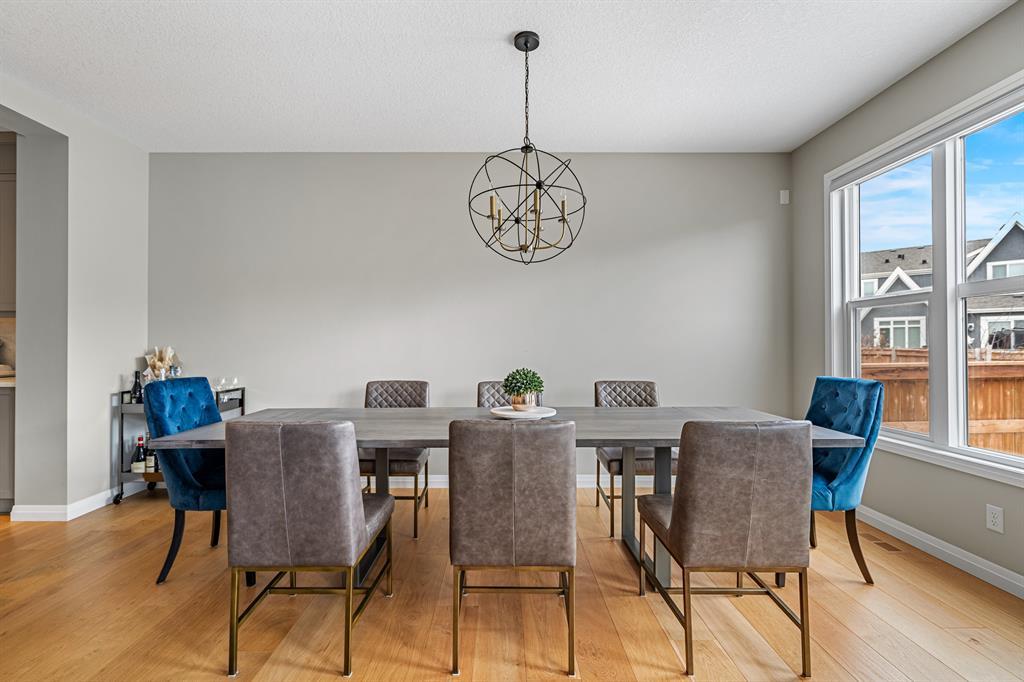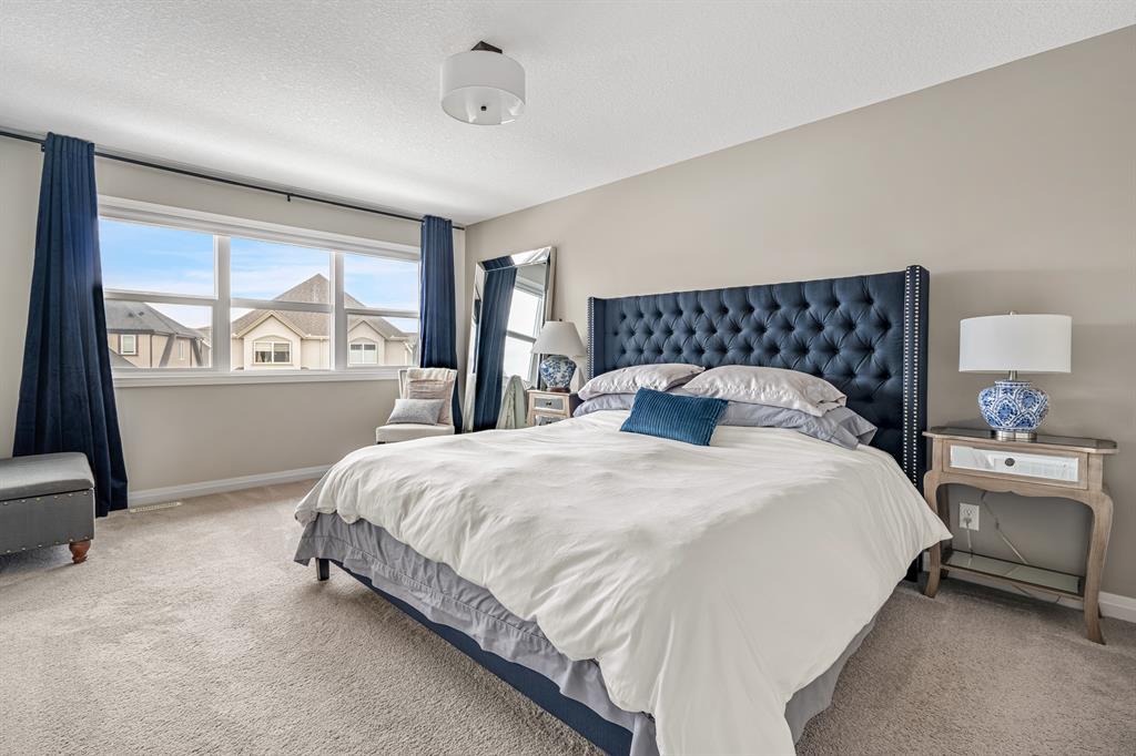 Welcome to 10 Masters Place SE, an immaculate Jayman Built Lauren model home, offering 3 bedrooms and 2.5 bathrooms in the beloved community of Mahogany. Get ready to spend your summer by the lake once you call this one home! Offering 2,637 square feet, you are sure to be impressed by the luxury and elegance found throughout this well designed home. The kitchen is truly the heart of this home, featuring dual islands, built-in appliances, and a dry bar/beverage centre, all perfect for entertaining. High-end finishings include quartz countertops, designer backsplash tile, silgranit sink and ceiling height cabinets. The dining and living room areas are spacious and bright, with the living area featuring a gas fireplace with floor to ceiling tile as the focal point of the room. Engineered hardwood floors and 9 foot ceilings flow throughout the main floor. This level also includes a 2 piece bathroom tucked away from the living space, a large entryway, and walk-through mudroom and pantry. Upstairs, the primary suite is truly a 5 star retreat. The ensuite features separate his and hers vanities and walk-in closets, meaning no more fighting over counter or closet space! There is also a separate designated makeup vanity. The larger walk-in closet connects to the laundry room for the ultimate convenience. Enjoy the spa-like feel of the bathroom while you soak away the stress of the week in your freestanding tub. The two secondary bedrooms are spacious and located at the front of the upper level, sharing a 5 piece bathroom. The central bonus room is the perfect spot to gather for family movie night! Outside, you will appreciate the low maintenance landscaping so you have more time to savor the warm evenings on your back deck and backyard. Be sure to check out the 3-D tour for the full experience! Mahogany Lake offers true recreation all year round, including kayaking and paddle boarding in the summer, and skating and ice hockey in the winter. Come and be a part of Cal gary’s best lake community in this perfect family home! Close to shopping, restaurants, schools. (id:22211)